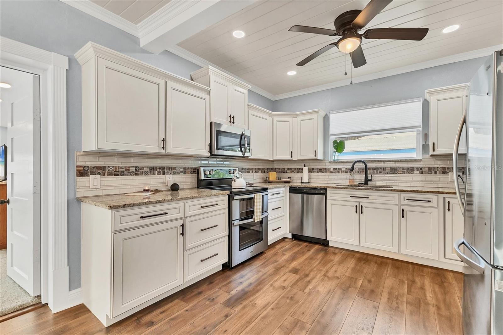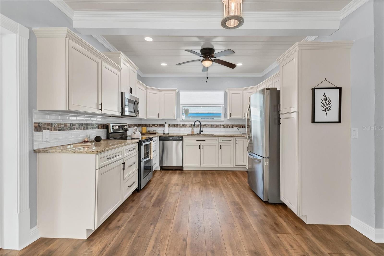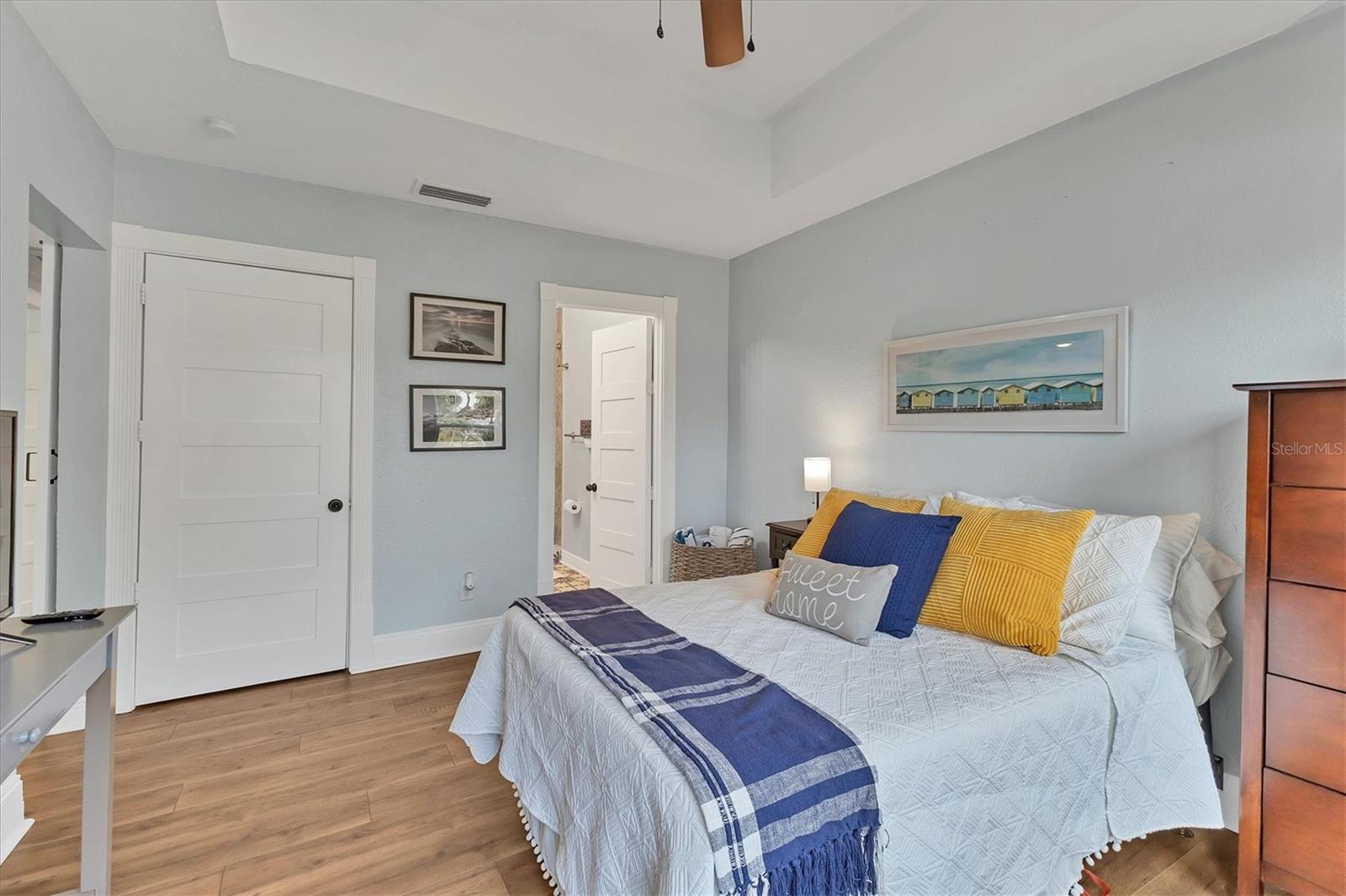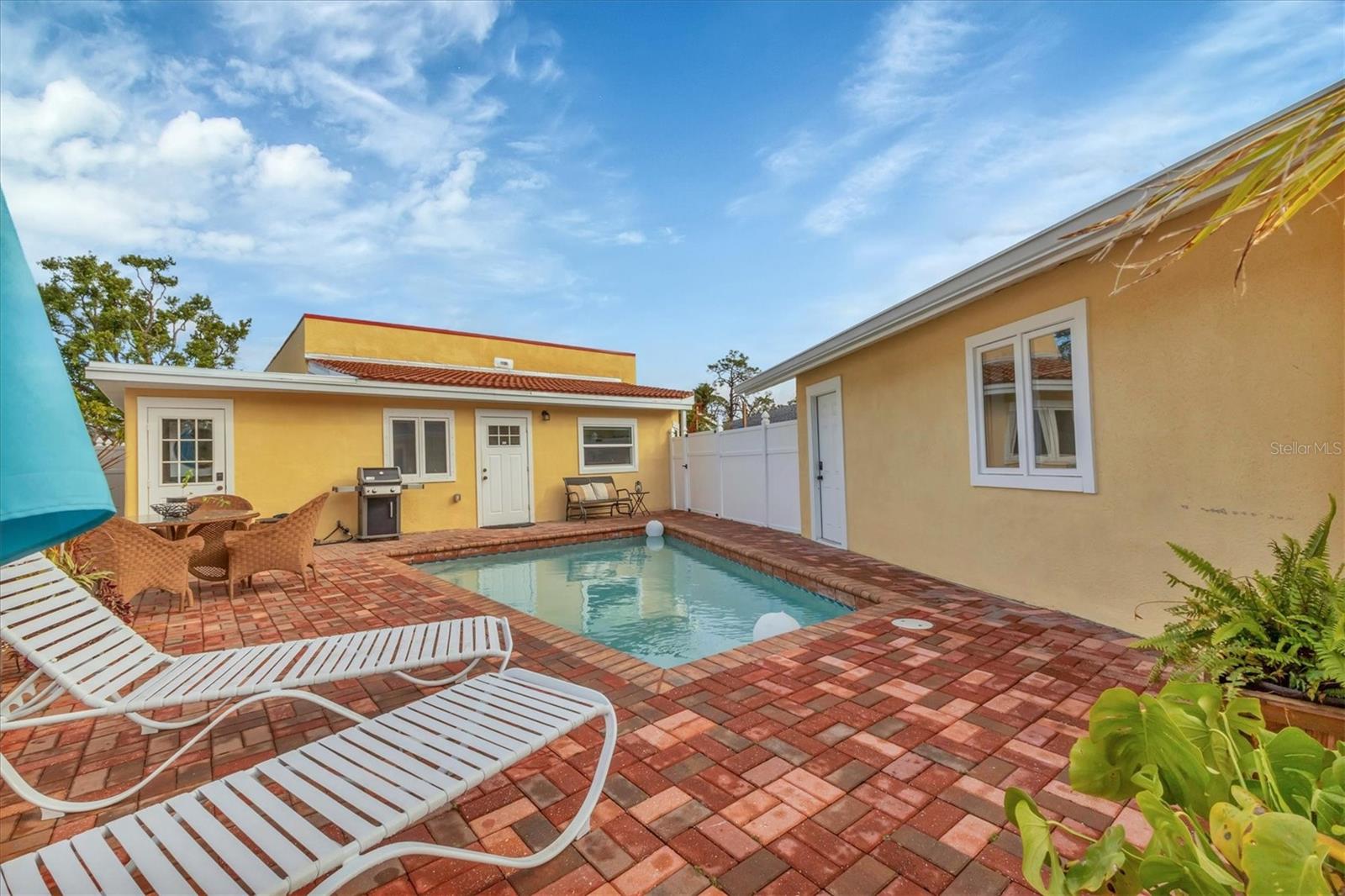 Charming 1926 Spanish Mediterranean in Bay Point, just a mile to Nokomis Beach! Step into a world of timeless charm with all modern upgrades you’ve been looking for. In the heart of Bay Point, this beautiful three-bedroom, 2.5-bath home is a gem that effortlessly blends classic Spanish Mediterranean style with contemporary finishes. Upon approach, envision yourself relaxing on the charming screened front porch as you take in the quiet neighborhood ambiance. Once inside, you are greeted with a bright open and airy living room with a gorgeous wood-burning fireplace, tongue and groove ceilings, and natural light filtering through two large windows. Guest bedroom suite is off the living room, offering ample privacy from the other bedrooms, and has an updated en-suite bath and step-in closet. The kitchen is the heart of this home and has been beautifully finished with wood cabinetry, granite counters and newer stainless steel appliances. Adjacent to the kitchen is a generous dining space for gatherings with a large window to the side yard and offering filtered light for an elegant dining experience. The primary bedroom is positioned at rear of the home with a high ceiling and a luxurious updated bath including a huge shower, stunning tile work and a walk-in closet with built-in storage solutions. Step outside to your tranquil, private pool area that is fully fenced and with pavers, ideal for relaxing and taking the sand off after a long day at the beach. Previously used as a hobbyist’s dream space, the oversized two-car garage offers tons of storage options and plenty of room for your creative projects. Create your dream outdoor oasis or garden in the fully fenced backyard, brimming with potential. This home exudes character with every corner telling a story of the past yet offering all modern amenities you desire. See for yourself why this home is the one you have been waiting for.