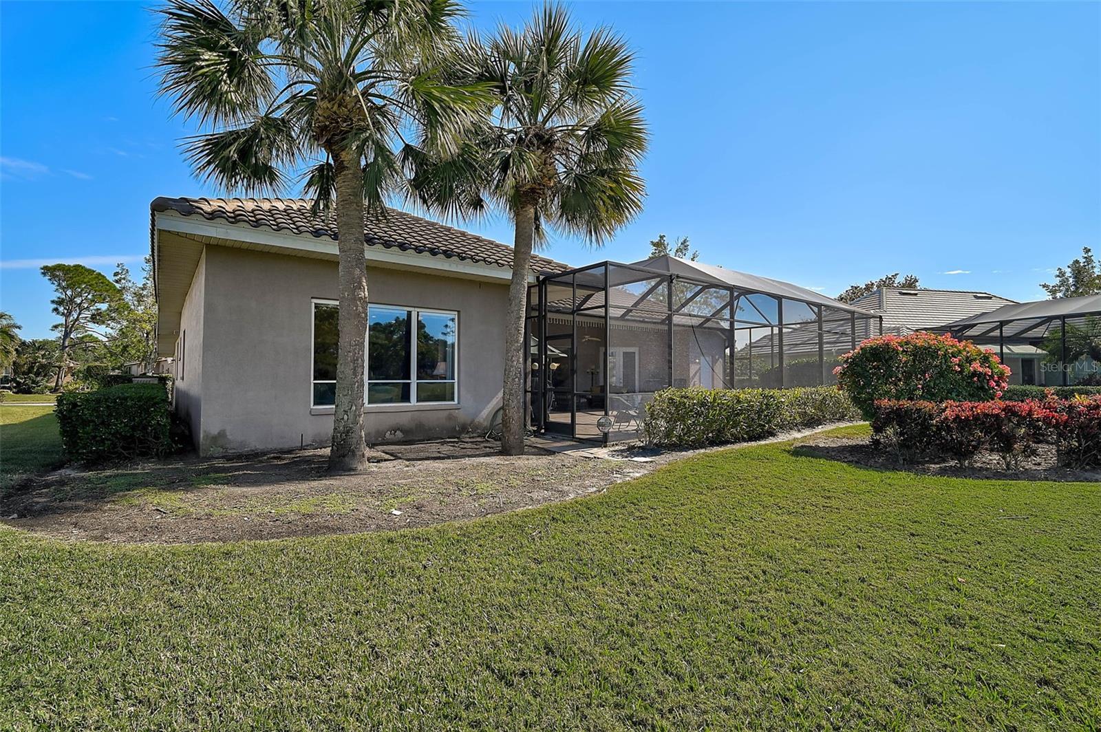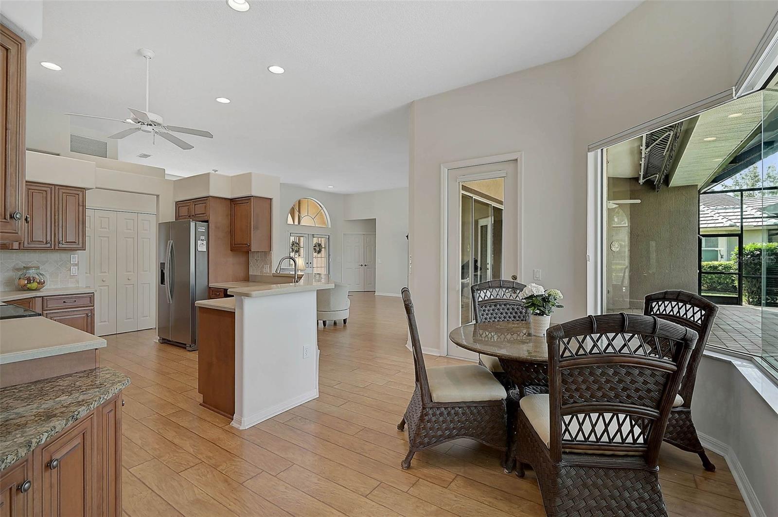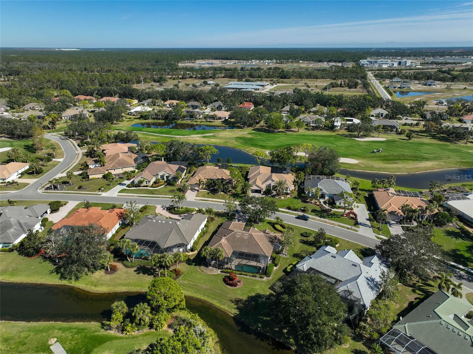 Presenting an exceptional residence with a serene and expansive POND VIEW, offering a private sanctuary that is available turnkey-furnished (with the exception of a few personal items). This meticulously maintained home features three bedrooms plus an office, along with a family room adorned with a large picture window framing the tranquil view. The updated kitchen boasts refaced cabinetry, stainless-steel appliances, which all seamlessly open to the family room, ideal for both everyday living and entertaining. The primary suite is a true retreat, complete with spacious walk-in closet and a beautifully renovated primary bath with granite countertops and walk-in shower. Recent updates include a NEW ROOF (2018), brand-new washer and dryer (2025), new HVAC system (March 2025), and hot water heater (2022). Enjoy the outdoors by opening the lanai doors, which pocket into the wall, creating a grand, open space that effortlessly connects the indoor and outdoor areas. Step onto the brick-paved lanai and unwind under the electric awning, all while enjoying a refreshing beverage and watching golfers pass by in the distance. The heated, resurfaced pool offers a perfect spot to relax, with stunning sunsets visible to the west. For added convenience, an outdoor half bath and shower are available, making it easy to rinse off after a round of golf or tennis. The home has been RE-PLUMBED, further enhancing its move-in readiness. Located just a short 10-minute drive to Nokomis Beach and downtown Venice, where you can explore unique shops, restaurants, and cultural activities, this home provides an ideal balance of privacy and accessibility. Residents of Calusa Lakes enjoy exclusive access to a community gate leading to Honore Road, providing quick access to major highways heading north and south. This Florida home has it all!