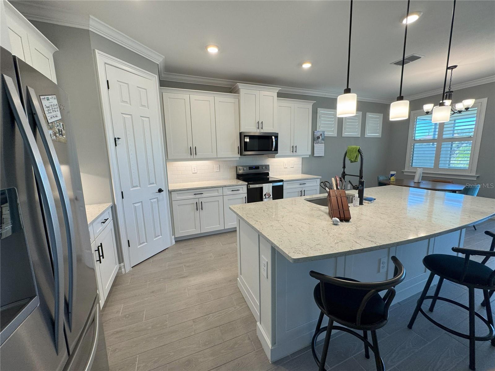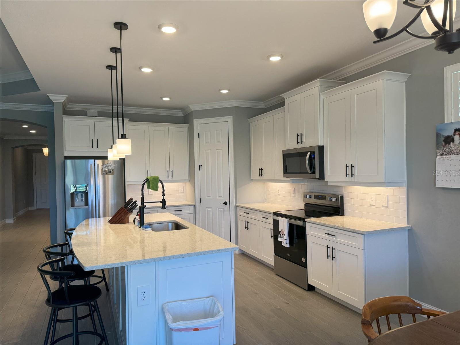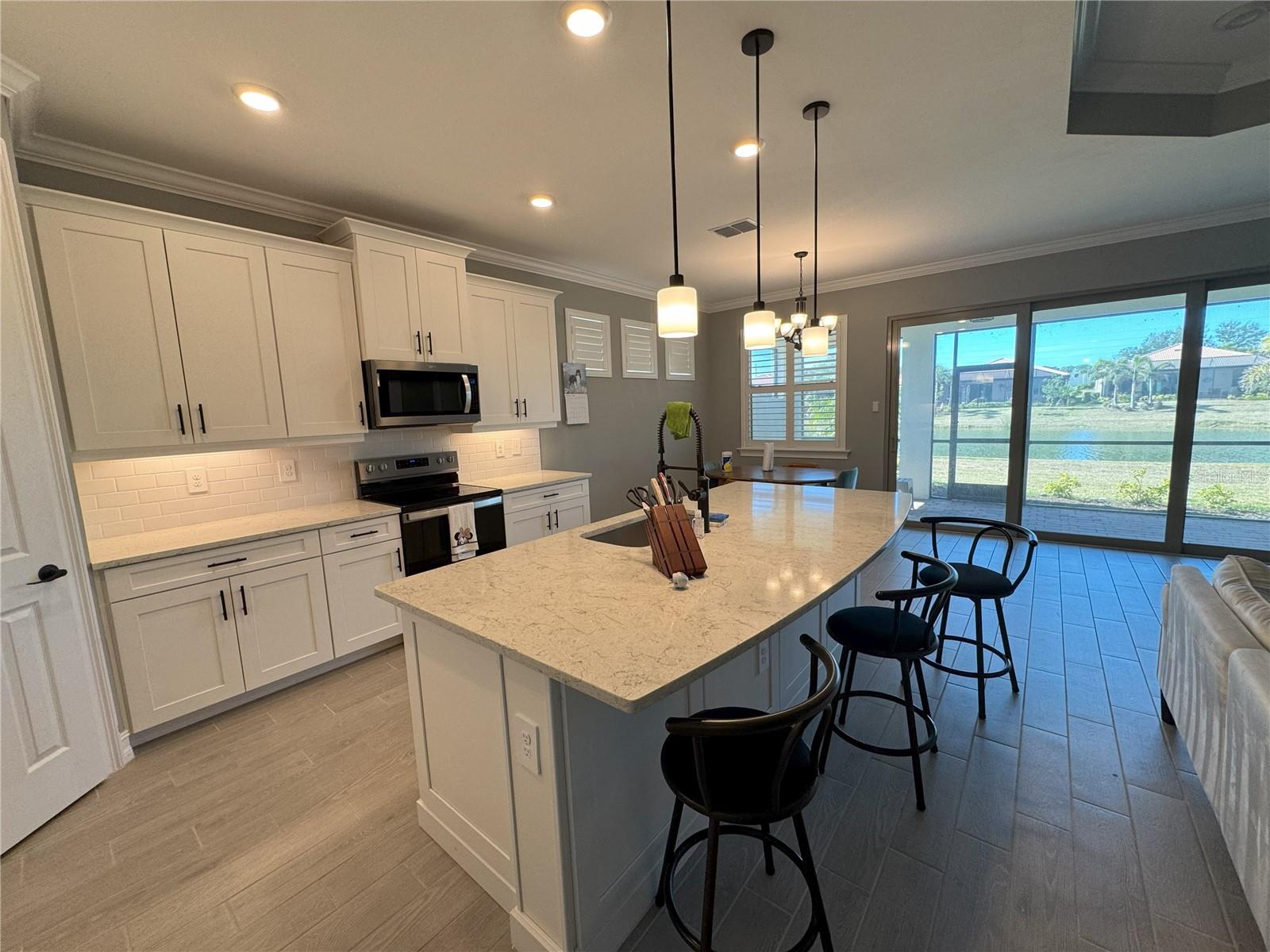 PRICED TO SELL! LOCATION, LOCATION, LOCATION. This stunning single family residence with water view, situated within the resort-style community of Toscana Isles, is an exceptional property that features an open floor plan with a generous layout, comprising three bedrooms, two full bathrooms, two half bathrooms, and a den/study room with French doors, and a supersized, roomy and upgraded 3.5-car garage with epoxy flooring, ensuring ample space for both comfortable living and entertaining. Upon entering through the front door, one is immediately enveloped by the sense of belonging in this remarkable home. This beautiful lakefront property seamlessly combines casual elegance with sophistication and style. The glistening lake draws your gaze, inviting you to unwind and appreciate the expansive lanai while enjoying the captivating water views. The nice sundeck under lanai and the spacious covered area ideal for outdoor dining, along with a dedicated bath, provide abundant space for social gatherings and entertainment. The gourmet kitchen is a chef's delight, featuring a large center island, under-cabinet lighting, ample quartz countertops, and cabinetry with soft-close drawers, as well as a sizable walk-in pantry. The Great Room boasts a tray ceiling adorned with crown molding and a wall of sliding doors that open to the screened lanai, showcasing the stunning lake view. The Master Suite serves as a luxurious retreat, complete with an opulent bath, a spacious walk-in closet, and picturesque lake views. Additionally, the property includes two more bedrooms and a supersized, roomy and upgraded 3.5-car garage with epoxy flooring. Toscana Isles offers a comprehensive resort-style living experience, encompassing over a large lakefront property. Residents can partake in activities such as kayaking, canoeing, pedal boating, stand-up paddleboarding, and fishing. The Tuscan-inspired amenity center features an impressive clubhouse with a remarkable infinity-edge pool, a fitness center, a meeting room, a caterer's kitchen, a billiard room, a full-time activities director, party room and a bar. Furthermore, residents can enjoy tennis, bocce ball, a dog park, and an active pickleball schedule. Embrace the complete lifestyle that this home and the Toscana Isles community provide. For added convenience, the new Sarasota Memorial Hospital Venice campus , beaches of Venice and Nokomis and shopping/dining of historic Venice Island are only a few minutes away. Also close to the one of best schools in Florida, Pine View School (Grade 2 to 12). And location is great, very convenient to get on/off from the I-75 highway. Please don't miss out this unique opportunity! Start enjoying the amazing Florida resort lifestyle in Toscana Isles!