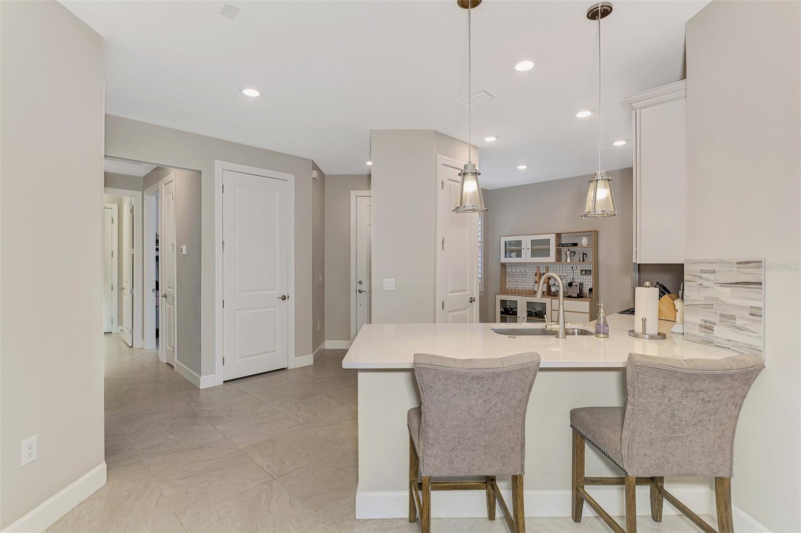Your Florida dream lifestyle awaits you! Welcome to the beautiful sought after Talon Preserve, a low HOA and no CDD fee community! This home is situated in a gated community; the guard at the entry will welcome you to an amazing and well manicured landscaped neighborhood. This rare, end unit with additional green space makes your home light and bright any time of the day. Not only will you be able to enjoy all that this spectacular home has to offer, you will find yourself thriving in one of the best MAINTENANCE FREE communities in Sarasota. Talon Preserve on Palmer Ranch offers a resort style pool, spa, restaurant & bar, fitness center, group fitness classes, tennis courts, pickleball courts, bocce ball, playground, game room, and so much more! As you enter the home, you will be welcomed with an open floor plan with upgrades abounding. The kitchen is nestled in the front left of the home and open to the dining room and the great room, with a water view and an extended covered paved lanai. You will find yourself enjoying the screened in lanai while you relax and sip your morning coffee or catch a spectacular sunrise over the water. This home features plantation shutters, water filtration system for the whole house, custom built in closets and garage cabinets, gas appliances, porcelain floor tile, quartz countertops, forty-two inch cabinets, fans in all bedrooms, epoxy floor in the garage, walk-in shower and so much more! This light, bright, open concept home is perfect for entertaining guests or just having the space to relax and enjoy the wonderful Florida lifestyle. Perfect as either a vacation retreat or living in paradise year-round. Imagine living in a location that on any given night you can grab dinner on the beach while enjoying a sunset. Schedule your private showing today!