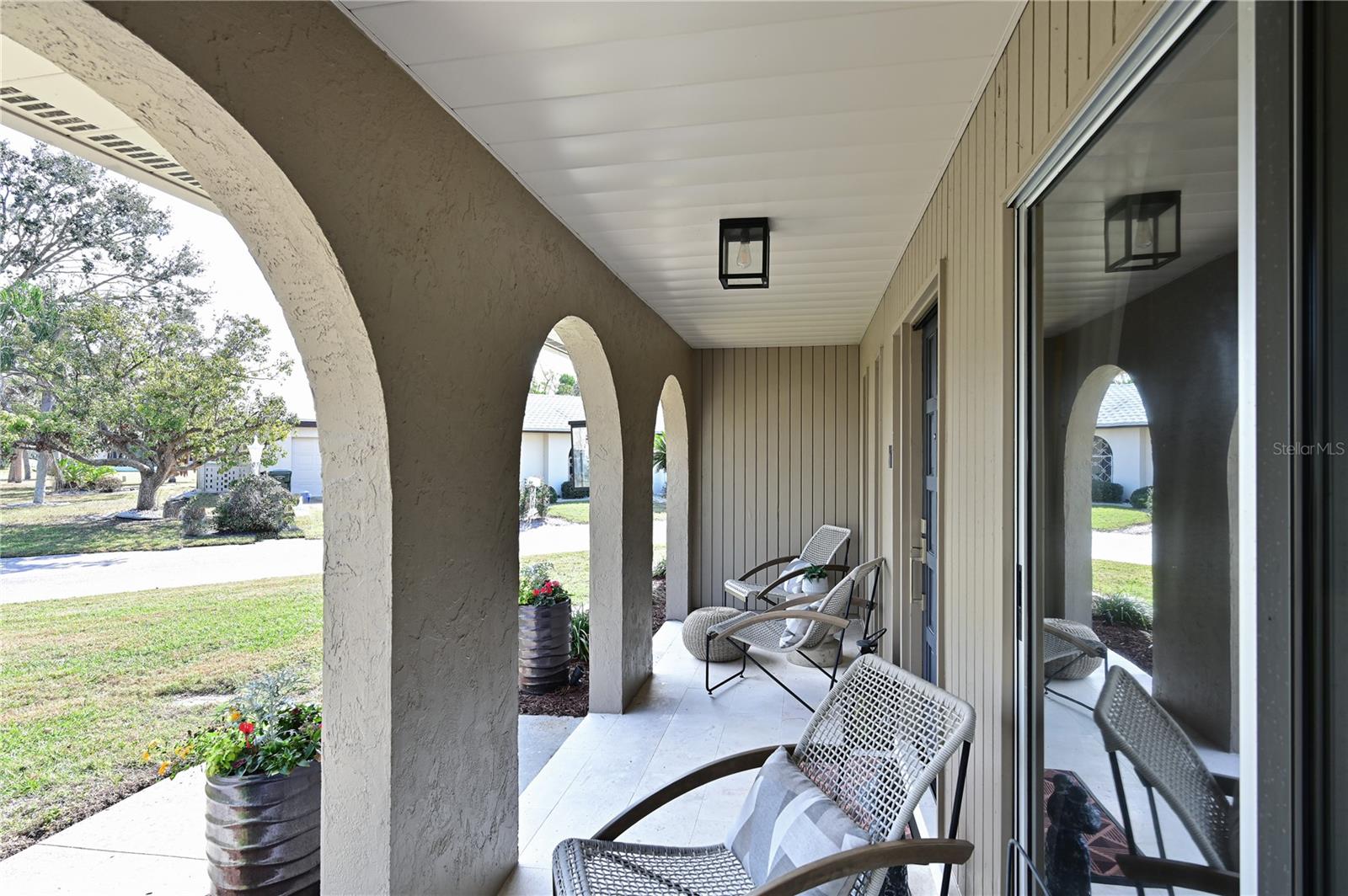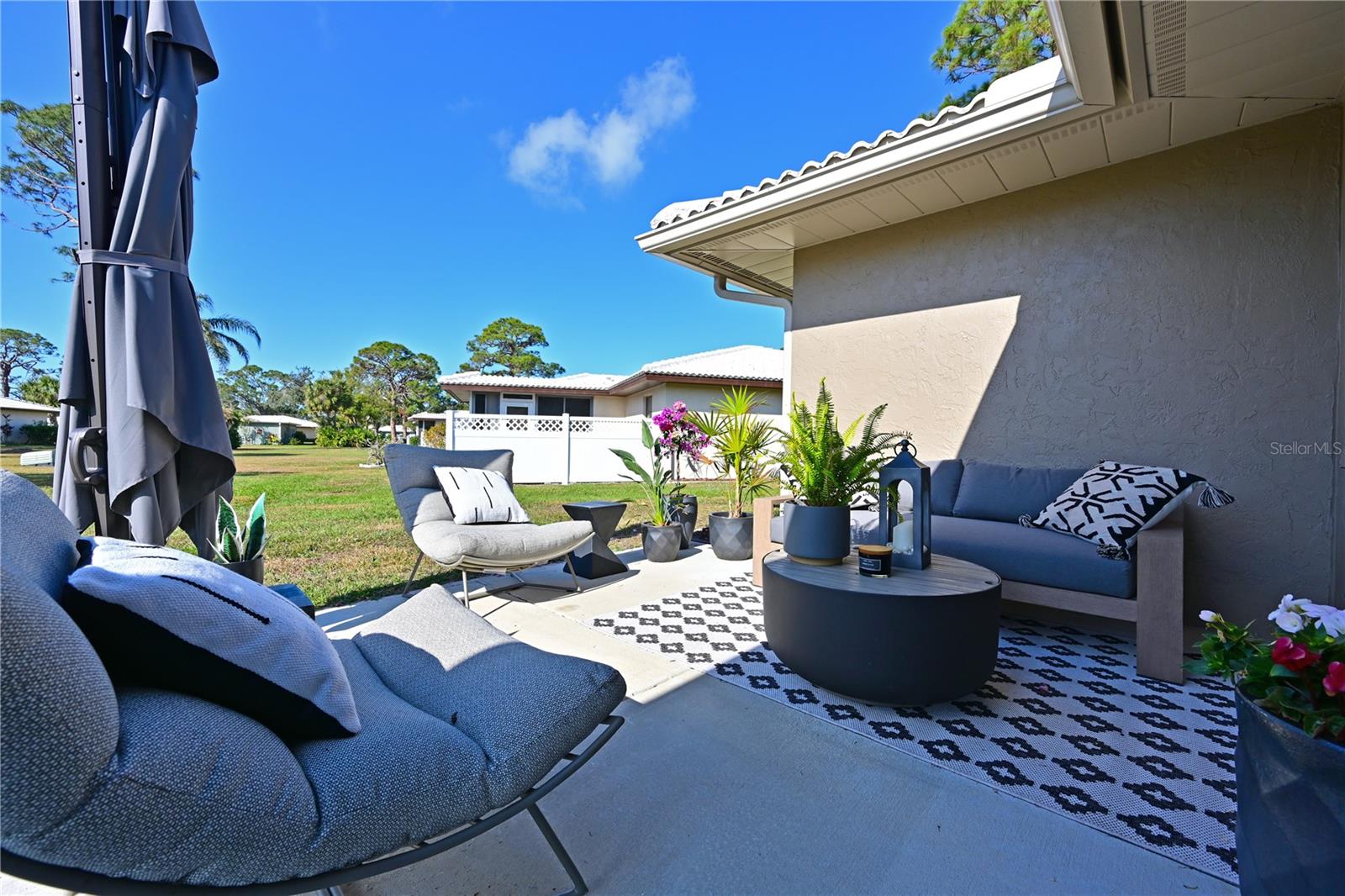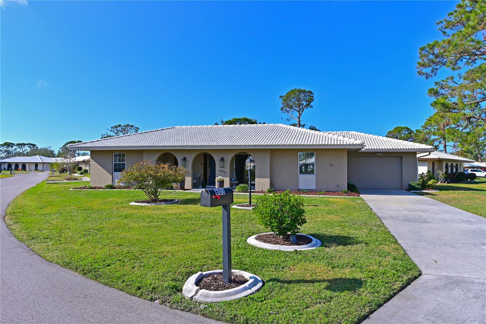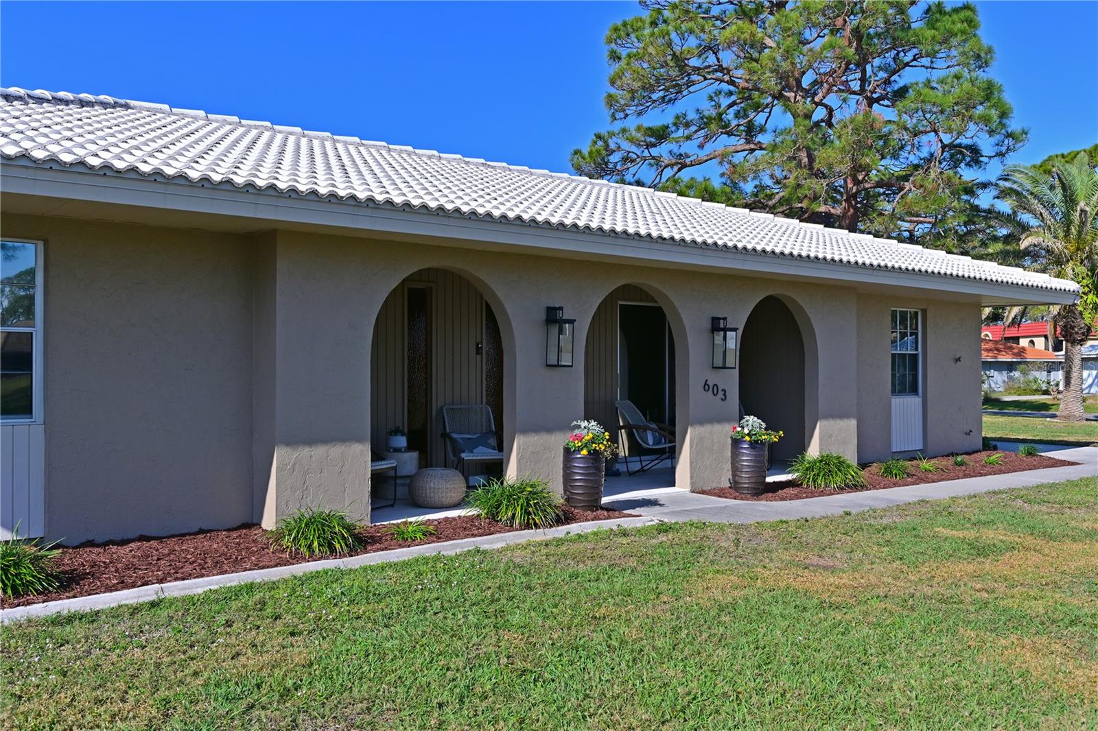 MASSIVE PRICE REDUCTION - With over 80k in improvements this ABSOLUTELY SPECTACULAR Villa - nestled between Venice and Sarasota, this Sorrento East stand alone, maintenance free Villa feels like home! Gorgeous updates throughout - from top to bottom and everything in between. Two bedrooms, primary is ensuite with large walk-in closet and secondary bedroom with its own large walk-in closet, has a knock out bath attached that is modern and luxurious. Several sitting rooms provide space for privacy or company - enclosed Florida room has windows all around to open for a fresh breeze and beautiful travertine flooring. Third room is used as an overflow guest bedroom. Perfect, cozy office is located at the front of the home. Separate, formal dining area, as well as more casual eating space off the incredible kitchen! The kitchen has been fully updated with waterfall counter, deep farm sink, plentiful updated cabinetry, newer appliances including induction stove and wide breakfast bar. New concrete pad has been poured outside of the Florida room to expand your entertaining options and let you catch some warming Florida sun on your face. One car garage is attached and immaculate with extra cabinetry for storage, washer/dryer and mud sink. Enjoy spending time on the front porch too - waving as your neighbors go by! Super close to Venice and not much further to Sarasota and our beautiful beaches you'll find this villa, located in a quiet, welcoming neighborhood is convenient to shopping, dining and a few great Tiki bars - after all, this is Florida living! No damage from 2024 storms. Roof 2015, AC 2023. Improvements include remodeled guest bath, new engineered wood flooring throughout living areas, upgraded kitchen, updated master vanity, closet organizer systems, epoxy floor in garage and fresh paint and cabinetry, new interior doors and new landscaping.