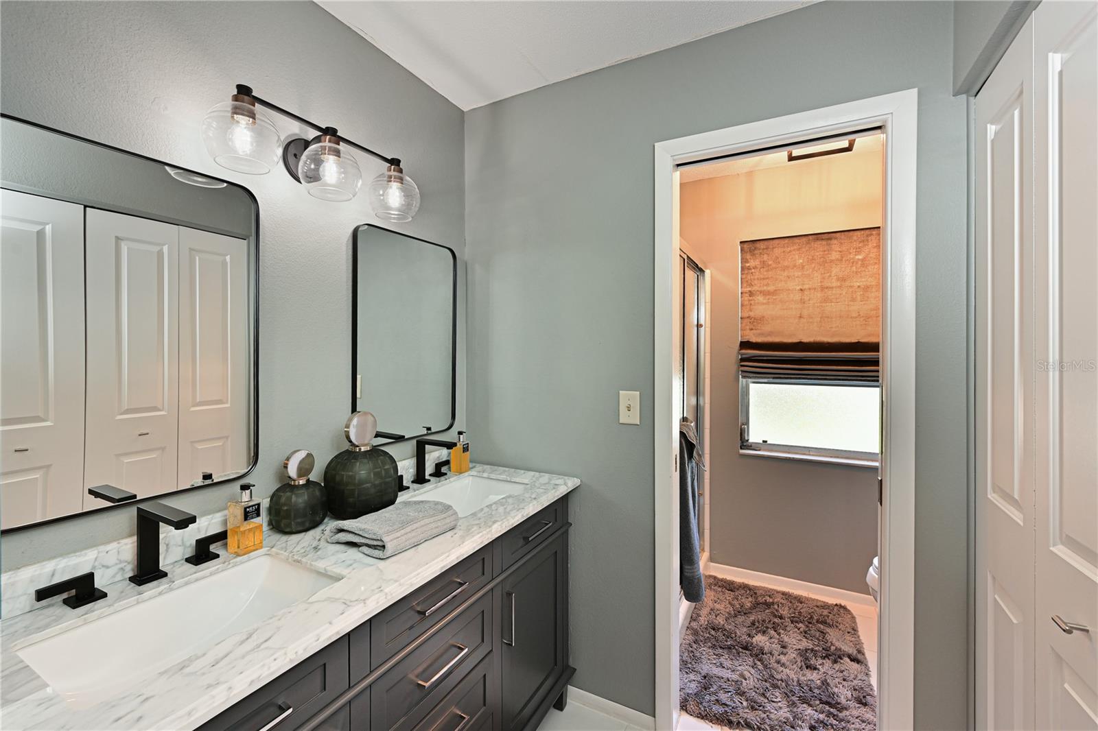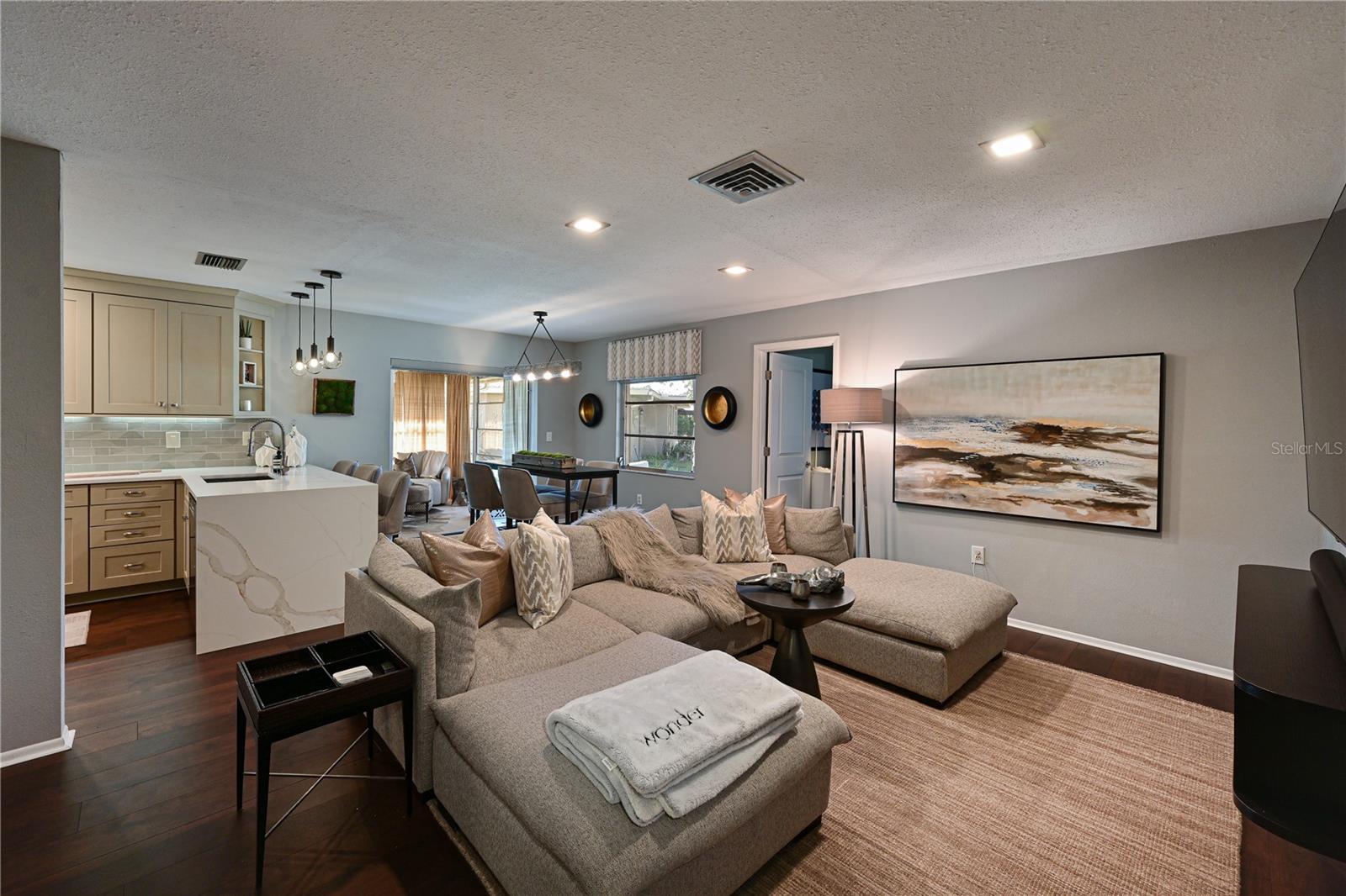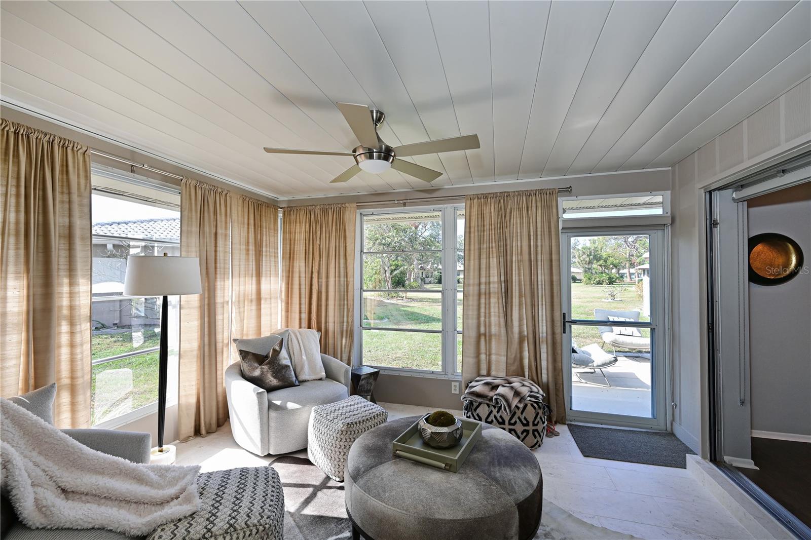 MASSIVE PRICE REDUCTION - With over 80k in improvements this ABSOLUTELY SPECTACULAR Villa - nestled between Venice and Sarasota, this Sorrento East stand alone, maintenance free Villa feels like home! Gorgeous updates throughout - from top to bottom and everything in between. Two bedrooms, primary is ensuite with large walk-in closet and secondary bedroom with its own large walk-in closet, has a knock out bath attached that is modern and luxurious. Several sitting rooms provide space for privacy or company - enclosed Florida room has windows all around to open for a fresh breeze and beautiful travertine flooring. Third room is used as an overflow guest bedroom. Perfect, cozy office is located at the front of the home. Separate, formal dining area, as well as more casual eating space off the incredible kitchen! The kitchen has been fully updated with waterfall counter, deep farm sink, plentiful updated cabinetry, newer appliances including induction stove and wide breakfast bar. New concrete pad has been poured outside of the Florida room to expand your entertaining options and let you catch some warming Florida sun on your face. One car garage is attached and immaculate with extra cabinetry for storage, washer/dryer and mud sink. Enjoy spending time on the front porch too - waving as your neighbors go by! Super close to Venice and not much further to Sarasota and our beautiful beaches you'll find this villa, located in a quiet, welcoming neighborhood is convenient to shopping, dining and a few great Tiki bars - after all, this is Florida living! No damage from 2024 storms. Roof 2015, AC 2023. Improvements include remodeled guest bath, new engineered wood flooring throughout living areas, upgraded kitchen, updated master vanity, closet organizer systems, epoxy floor in garage and fresh paint and cabinetry, new interior doors and new landscaping.