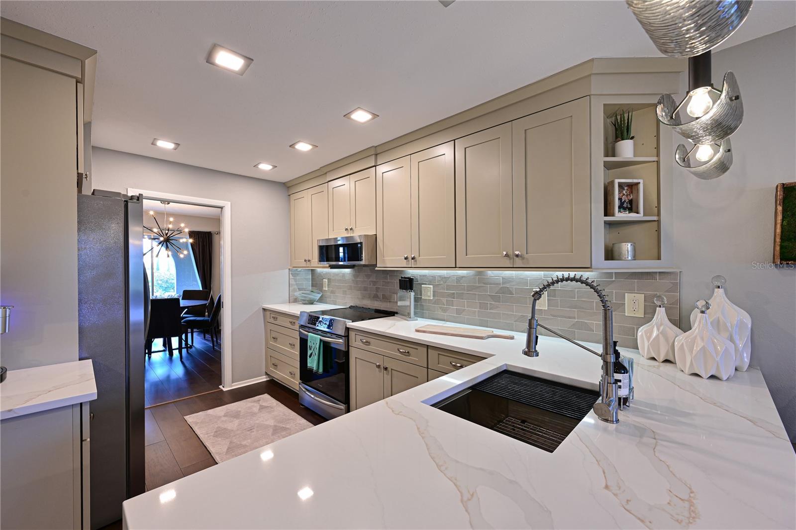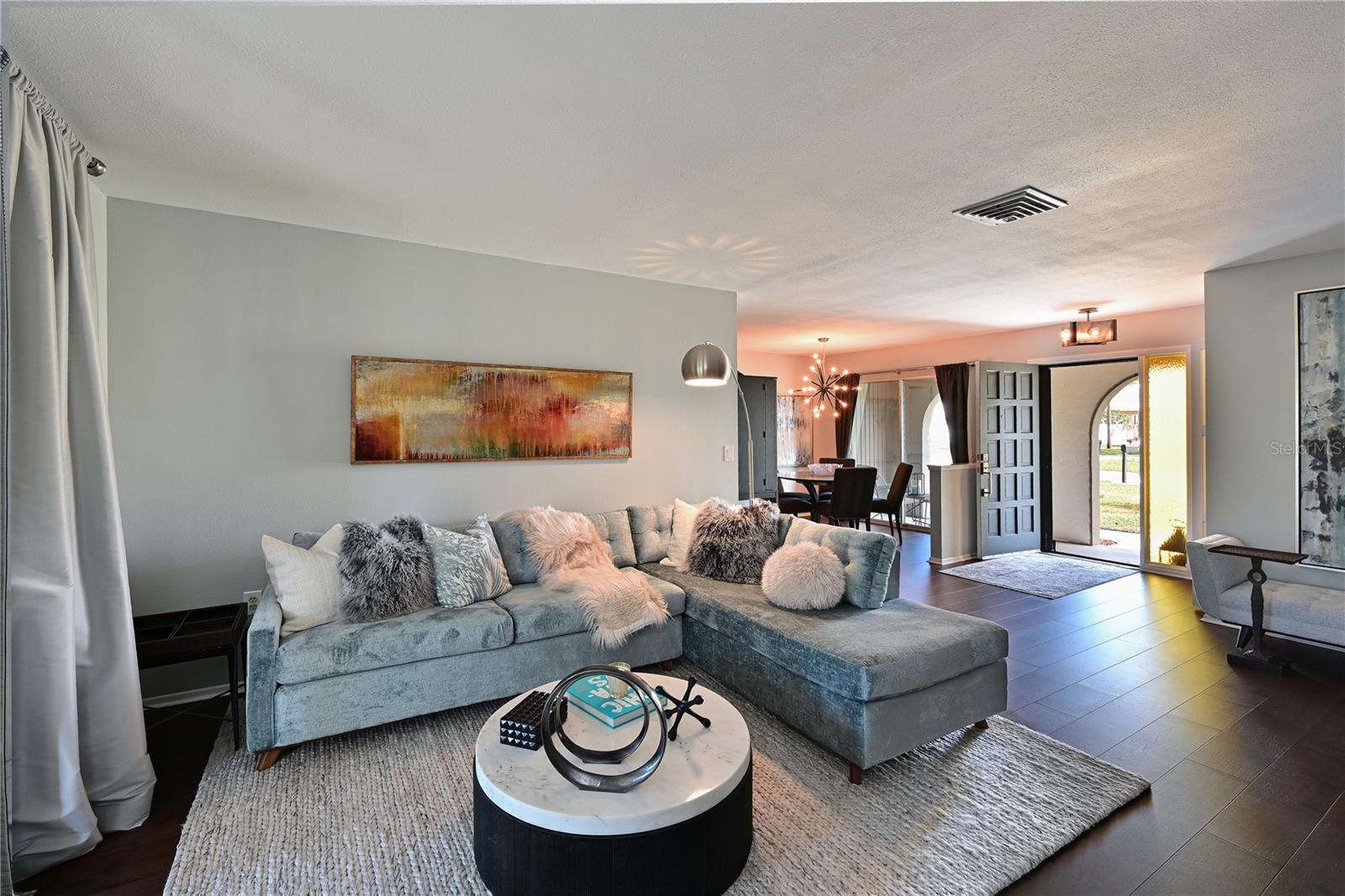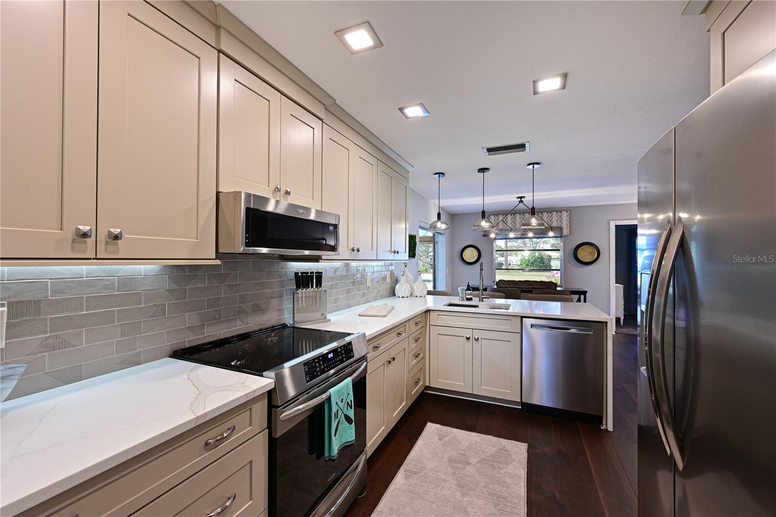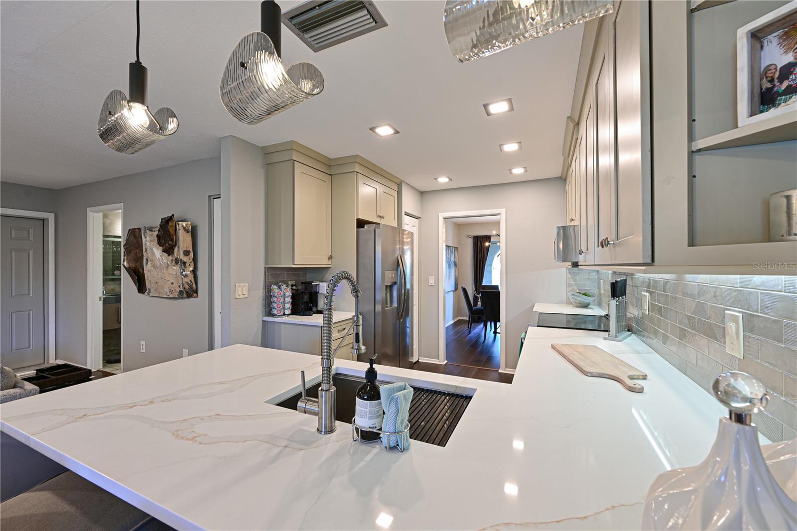 MASSIVE PRICE REDUCTION - With over 80k in improvements this ABSOLUTELY SPECTACULAR Villa - nestled between Venice and Sarasota, this Sorrento East stand alone, maintenance free Villa feels like home! Gorgeous updates throughout - from top to bottom and everything in between. Two bedrooms, primary is ensuite with large walk-in closet and secondary bedroom with its own large walk-in closet, has a knock out bath attached that is modern and luxurious. Several sitting rooms provide space for privacy or company - enclosed Florida room has windows all around to open for a fresh breeze and beautiful travertine flooring. Third room is used as an overflow guest bedroom. Perfect, cozy office is located at the front of the home. Separate, formal dining area, as well as more casual eating space off the incredible kitchen! The kitchen has been fully updated with waterfall counter, deep farm sink, plentiful updated cabinetry, newer appliances including induction stove and wide breakfast bar. New concrete pad has been poured outside of the Florida room to expand your entertaining options and let you catch some warming Florida sun on your face. One car garage is attached and immaculate with extra cabinetry for storage, washer/dryer and mud sink. Enjoy spending time on the front porch too - waving as your neighbors go by! Super close to Venice and not much further to Sarasota and our beautiful beaches you'll find this villa, located in a quiet, welcoming neighborhood is convenient to shopping, dining and a few great Tiki bars - after all, this is Florida living! No damage from 2024 storms. Roof 2015, AC 2023. Improvements include remodeled guest bath, new engineered wood flooring throughout living areas, upgraded kitchen, updated master vanity, closet organizer systems, epoxy floor in garage and fresh paint and cabinetry, new interior doors and new landscaping.