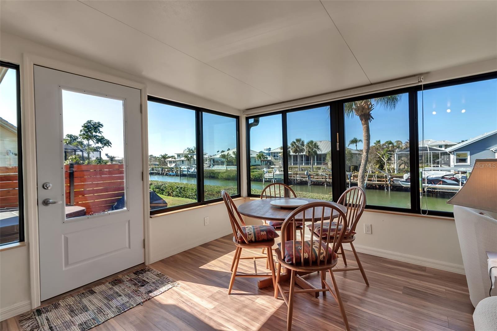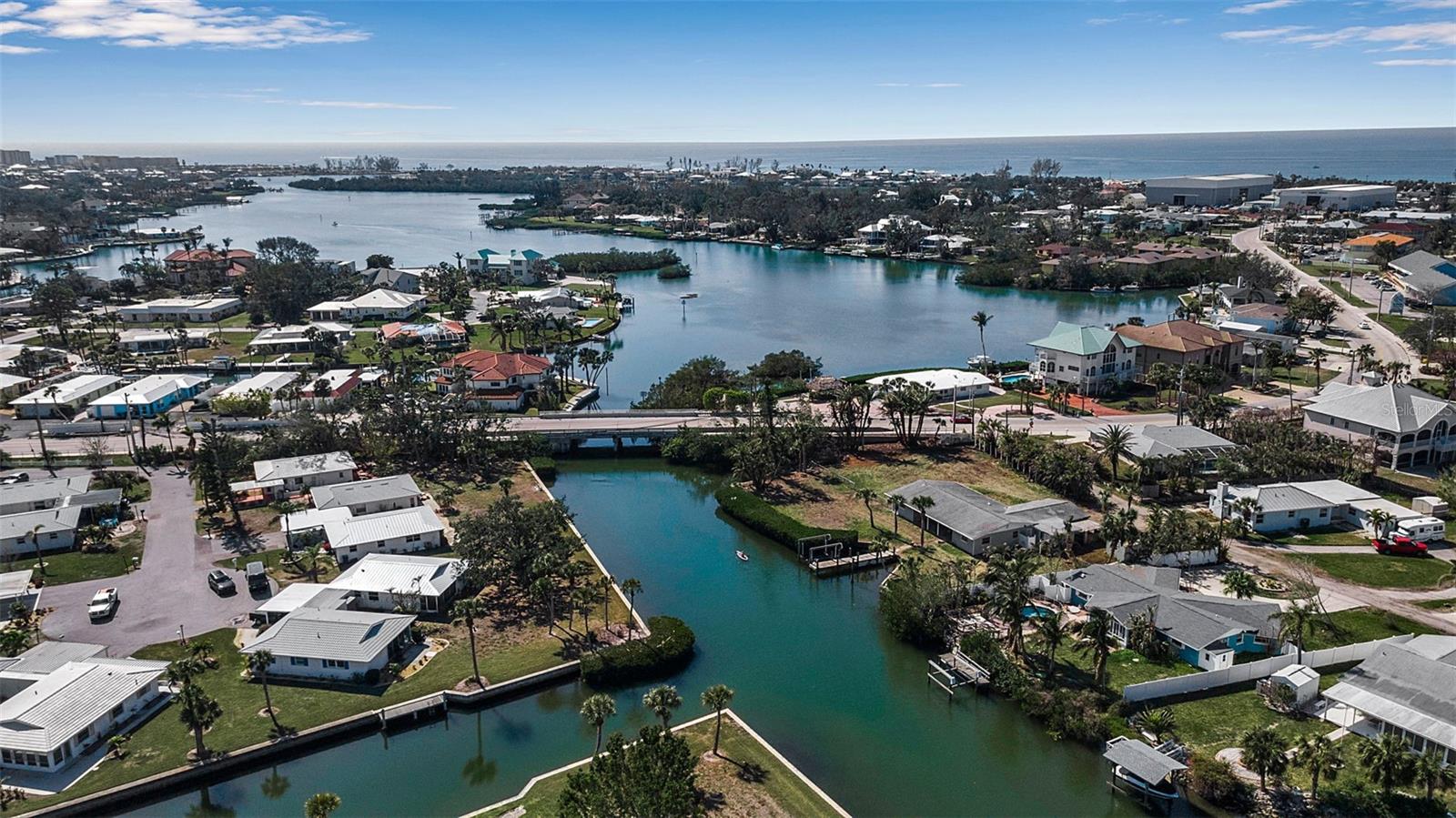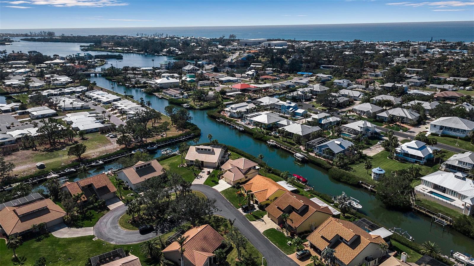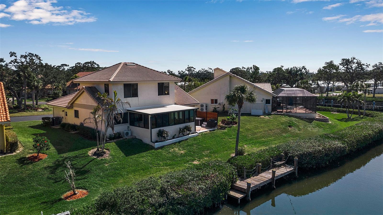 This two-story waterfront home, located on one of the widest and deepest parts of the canal and just minutes from Lyon's Bay and the Gulf, is ready for its new owner. With 3 bedrooms, 3.5 baths, and its own dock and kayak launch, this property is ideal for those who love waterfront living. The sellers have thoughtfully extended and enclosed the lanai, creating a Florida room perfect for year-round enjoyment with the hurricane windows providing peace of mind and abundant natural light. The open kitchen boasts ample counter space, ideal for entertaining, and features a cleverly concealed computer desk space behind French doors. This open great room floor plan lives large with built-in bookcases, a dining room right off the kitchen, a wet bar hidden out of the way but perfectly situated for entertaining. Also on the first floor you will find a primary bedroom which features a large walk-in closet, an attached full bathroom and Murphy bed. Sellers are now using this as a TV room. The second floor has 2 bedrooms which was an addition put on by the sellers and features another primary bedroom with a large walk-in closet and en-suite full bathroom. There is also a guest bedroom which includes an en-suite bathroom. Both of these rooms have beautiful views of the waterway. There are two patios, one is off of the Florida Room with a Hot Tub that allows you to soak while watching the boats going by. The front patio offers a charming spot to relax and enjoy the surroundings. The property is situated on a culdesac with 121 feet of water frontage. The westerly views from the back of the house are perfect for watching our magnificent sunsets. This gated, maintenance-free, resort style community offers a wealth of amenities, including a very active clubhouse, tennis and pickleball, a resort-style pool that is heated in the winter and cooled in the summer. Residents also enjoy a fitness room and library. For those with boats, RVs, and trailers, the HOA provides a secure and convenient fenced lot for storage. The HOA fee covers cable, internet, lawn maintenance, landscape care, and original structural insurance. Conveniently located about two miles from North Jetty Park, North Jetty Beach, and Nokomis Beach, this home offers easy access to shopping, dining, banking, the Legacy Trail, and historic downtown Venice.