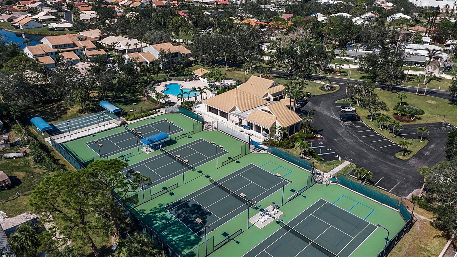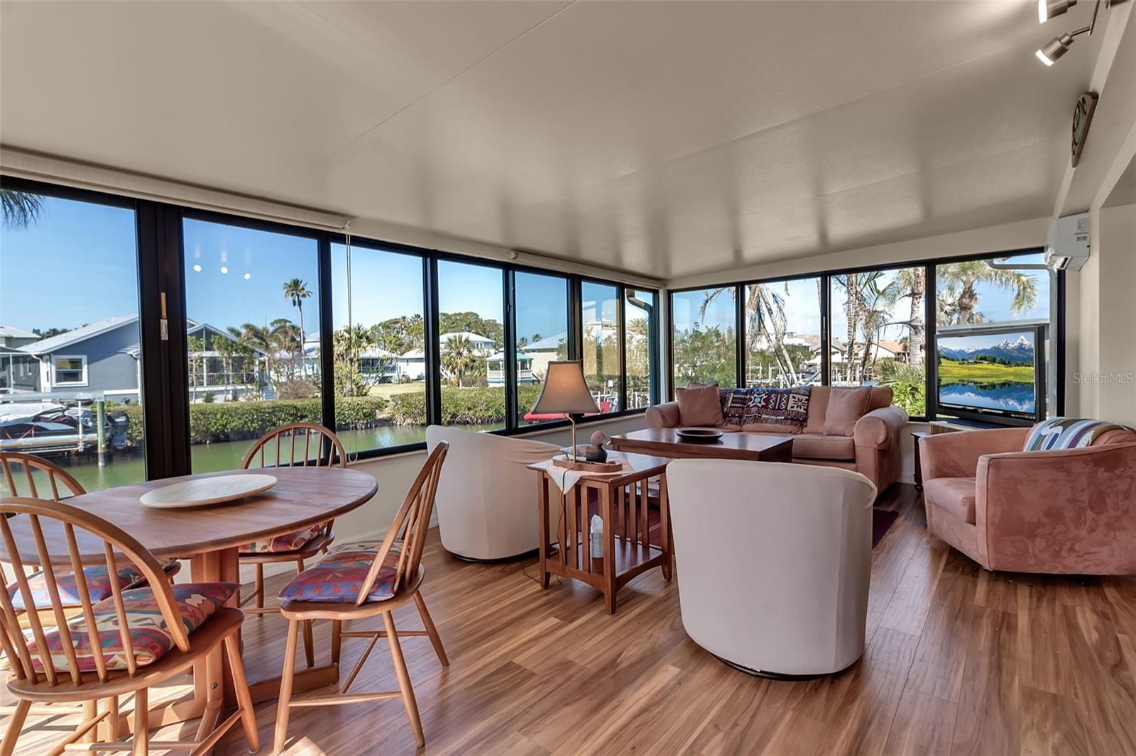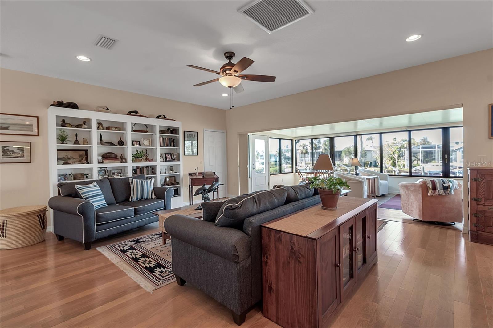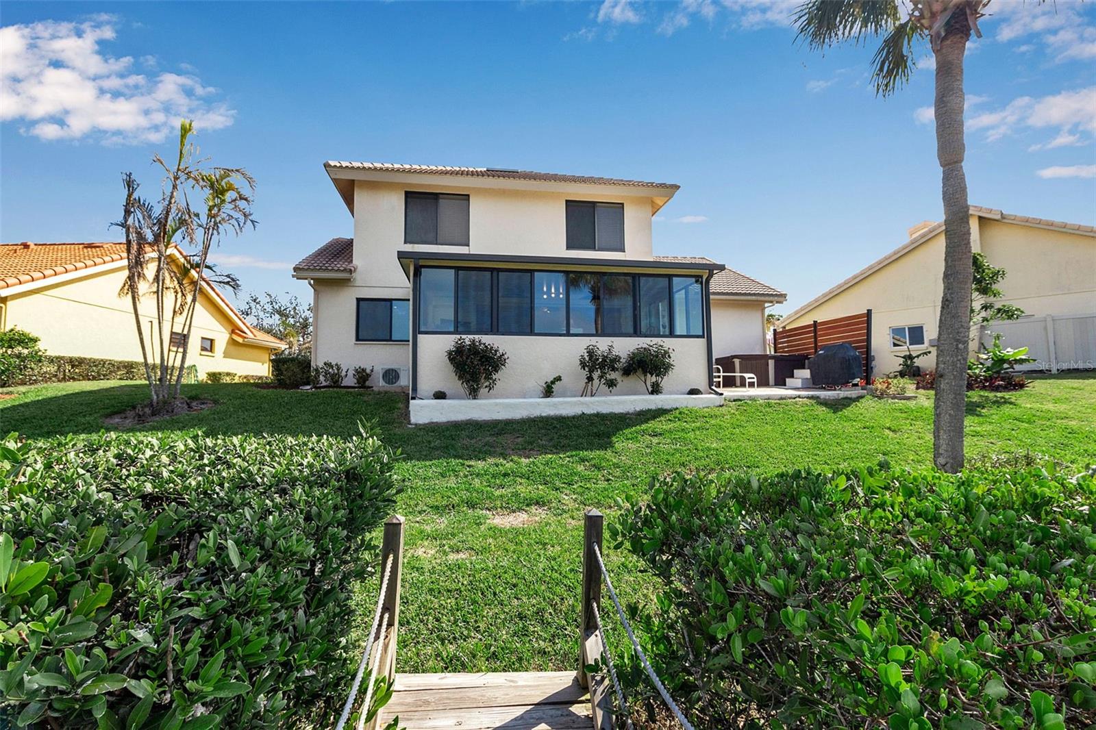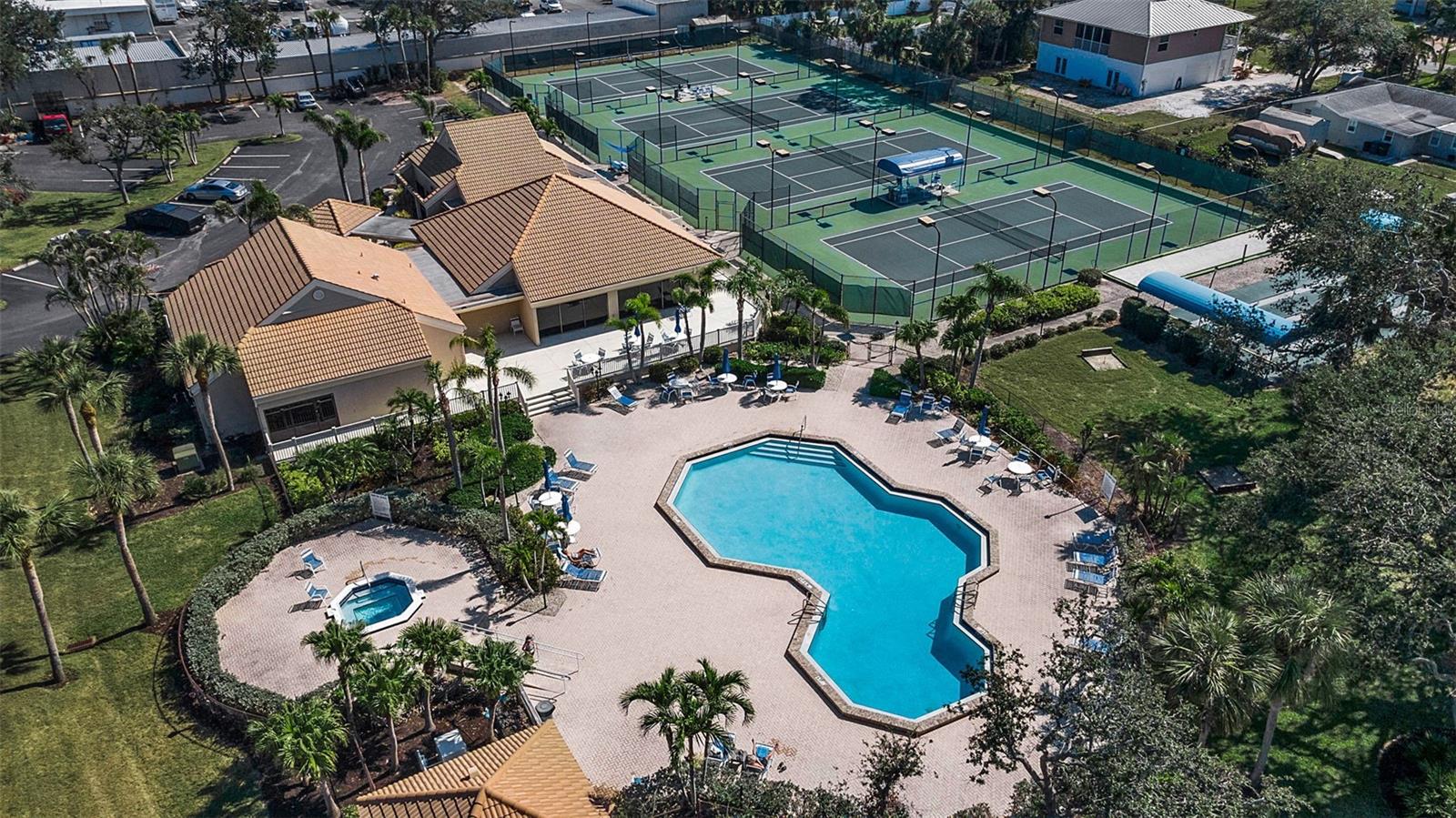 This two-story waterfront home, located on one of the widest and deepest parts of the canal and just minutes from Lyon's Bay and the Gulf, is ready for its new owner. With 3 bedrooms, 3.5 baths, and its own dock and kayak launch, this property is ideal for those who love waterfront living. The sellers have thoughtfully extended and enclosed the lanai, creating a Florida room perfect for year-round enjoyment with the hurricane windows providing peace of mind and abundant natural light. The open kitchen boasts ample counter space, ideal for entertaining, and features a cleverly concealed computer desk space behind French doors. This open great room floor plan lives large with built-in bookcases, a dining room right off the kitchen, a wet bar hidden out of the way but perfectly situated for entertaining. Also on the first floor you will find a primary bedroom which features a large walk-in closet, an attached full bathroom and Murphy bed. Sellers are now using this as a TV room. The second floor has 2 bedrooms which was an addition put on by the sellers and features another primary bedroom with a large walk-in closet and en-suite full bathroom. There is also a guest bedroom which includes an en-suite bathroom. Both of these rooms have beautiful views of the waterway. There are two patios, one is off of the Florida Room with a Hot Tub that allows you to soak while watching the boats going by. The front patio offers a charming spot to relax and enjoy the surroundings. The property is situated on a culdesac with 121 feet of water frontage. The westerly views from the back of the house are perfect for watching our magnificent sunsets. This gated, maintenance-free, resort style community offers a wealth of amenities, including a very active clubhouse, tennis and pickleball, a resort-style pool that is heated in the winter and cooled in the summer. Residents also enjoy a fitness room and library. For those with boats, RVs, and trailers, the HOA provides a secure and convenient fenced lot for storage. The HOA fee covers cable, internet, lawn maintenance, landscape care, and original structural insurance. Conveniently located about two miles from North Jetty Park, North Jetty Beach, and Nokomis Beach, this home offers easy access to shopping, dining, banking, the Legacy Trail, and historic downtown Venice.