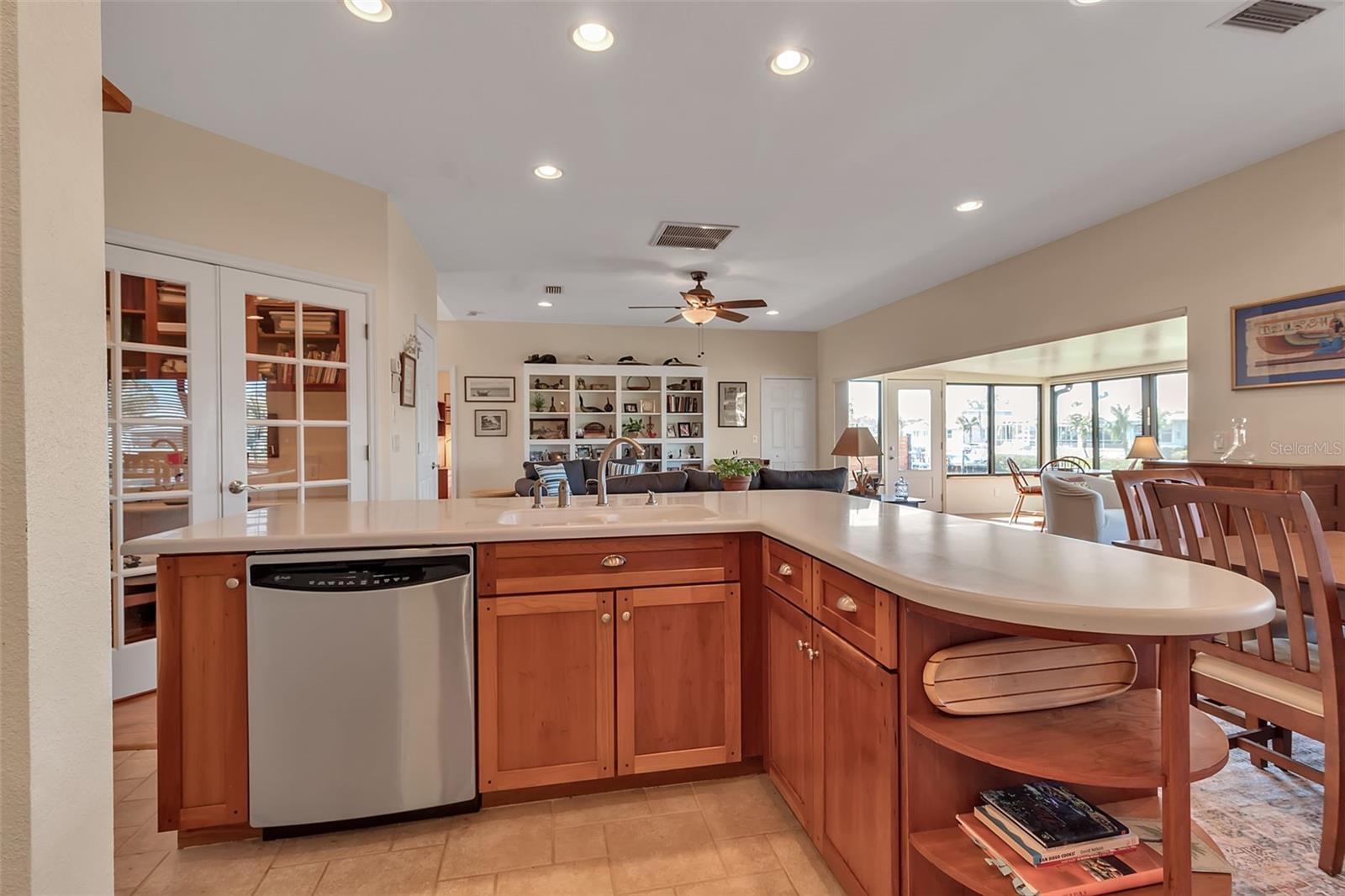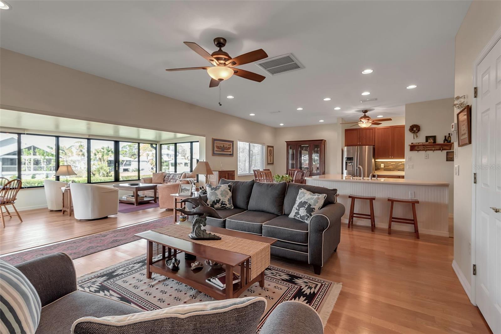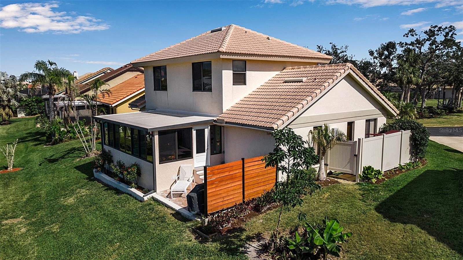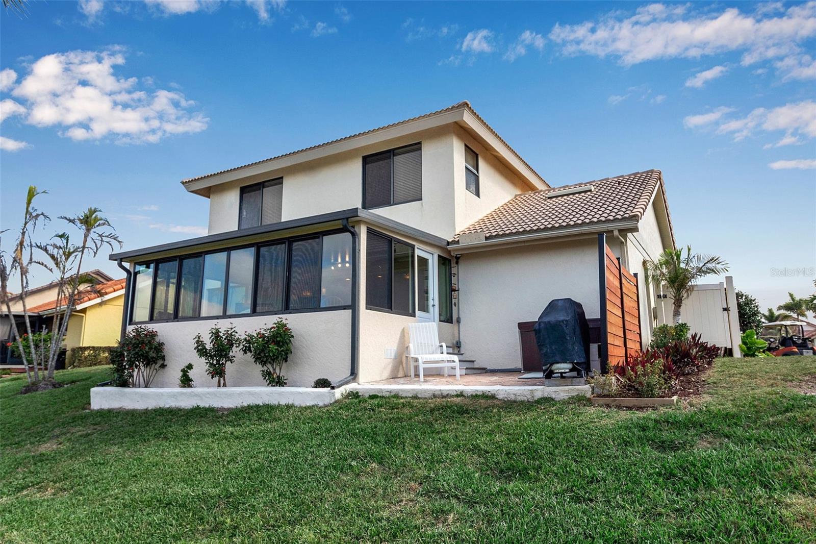 This two-story waterfront home, located on one of the widest and deepest parts of the canal and just minutes from Lyon's Bay and the Gulf, is ready for its new owner. With 3 bedrooms, 3.5 baths, and its own dock and kayak launch, this property is ideal for those who love waterfront living. The sellers have thoughtfully extended and enclosed the lanai, creating a Florida room perfect for year-round enjoyment with the hurricane windows providing peace of mind and abundant natural light. The open kitchen boasts ample counter space, ideal for entertaining, and features a cleverly concealed computer desk space behind French doors. This open great room floor plan lives large with built-in bookcases, a dining room right off the kitchen, a wet bar hidden out of the way but perfectly situated for entertaining. Also on the first floor you will find a primary bedroom which features a large walk-in closet, an attached full bathroom and Murphy bed. Sellers are now using this as a TV room. The second floor has 2 bedrooms which was an addition put on by the sellers and features another primary bedroom with a large walk-in closet and en-suite full bathroom. There is also a guest bedroom which includes an en-suite bathroom. Both of these rooms have beautiful views of the waterway. There are two patios, one is off of the Florida Room with a Hot Tub that allows you to soak while watching the boats going by. The front patio offers a charming spot to relax and enjoy the surroundings. The property is situated on a culdesac with 121 feet of water frontage. The westerly views from the back of the house are perfect for watching our magnificent sunsets. This gated, maintenance-free, resort style community offers a wealth of amenities, including a very active clubhouse, tennis and pickleball, a resort-style pool that is heated in the winter and cooled in the summer. Residents also enjoy a fitness room and library. For those with boats, RVs, and trailers, the HOA provides a secure and convenient fenced lot for storage. The HOA fee covers cable, internet, lawn maintenance, landscape care, and original structural insurance. Conveniently located about two miles from North Jetty Park, North Jetty Beach, and Nokomis Beach, this home offers easy access to shopping, dining, banking, the Legacy Trail, and historic downtown Venice.
