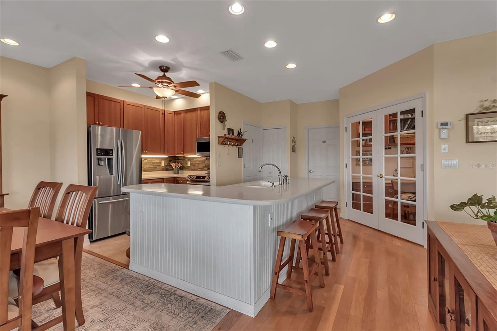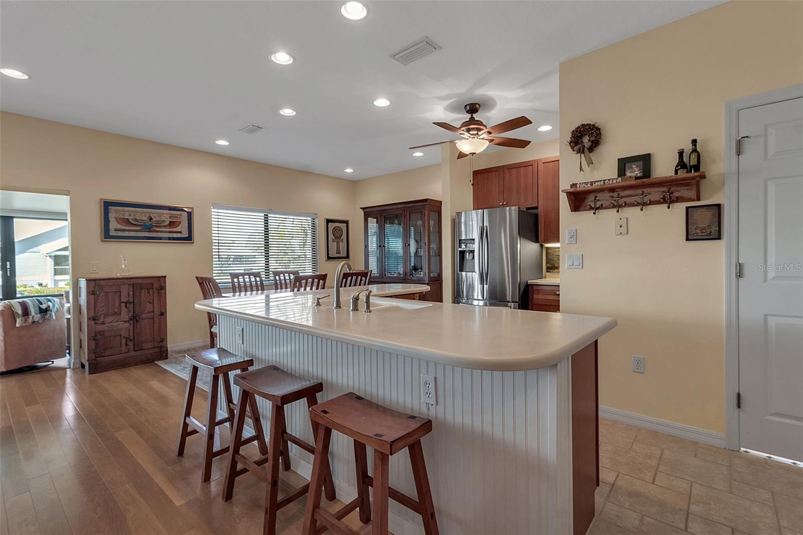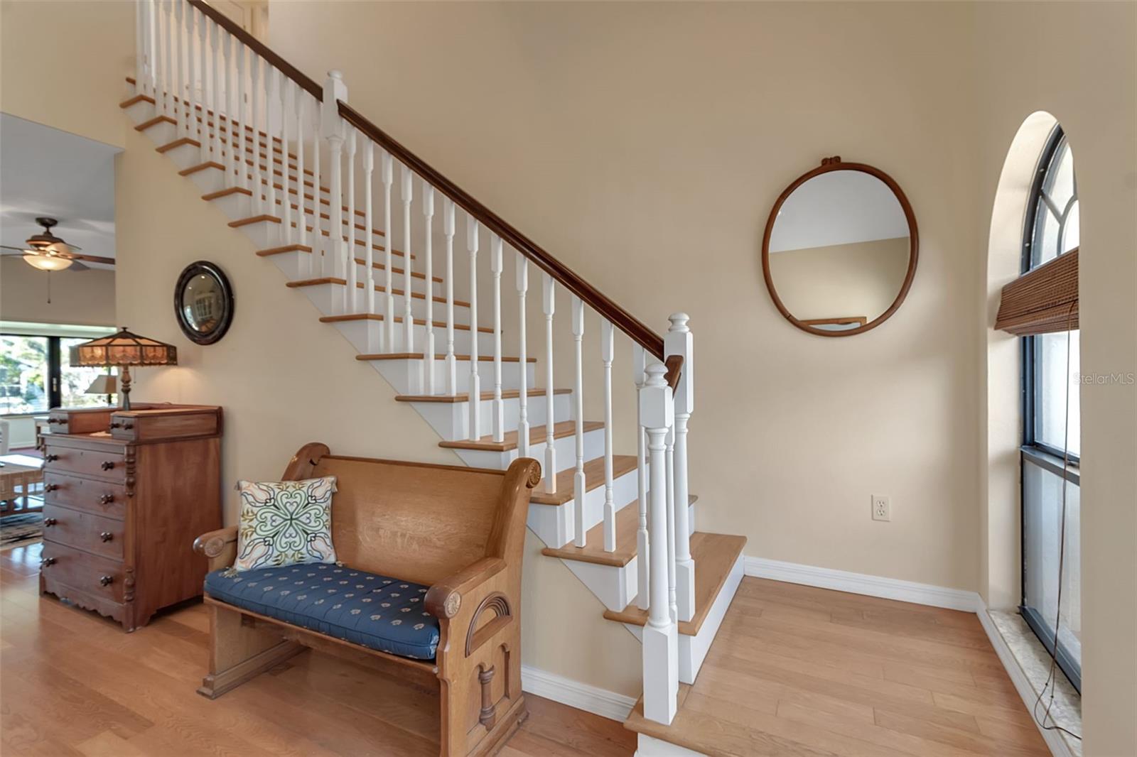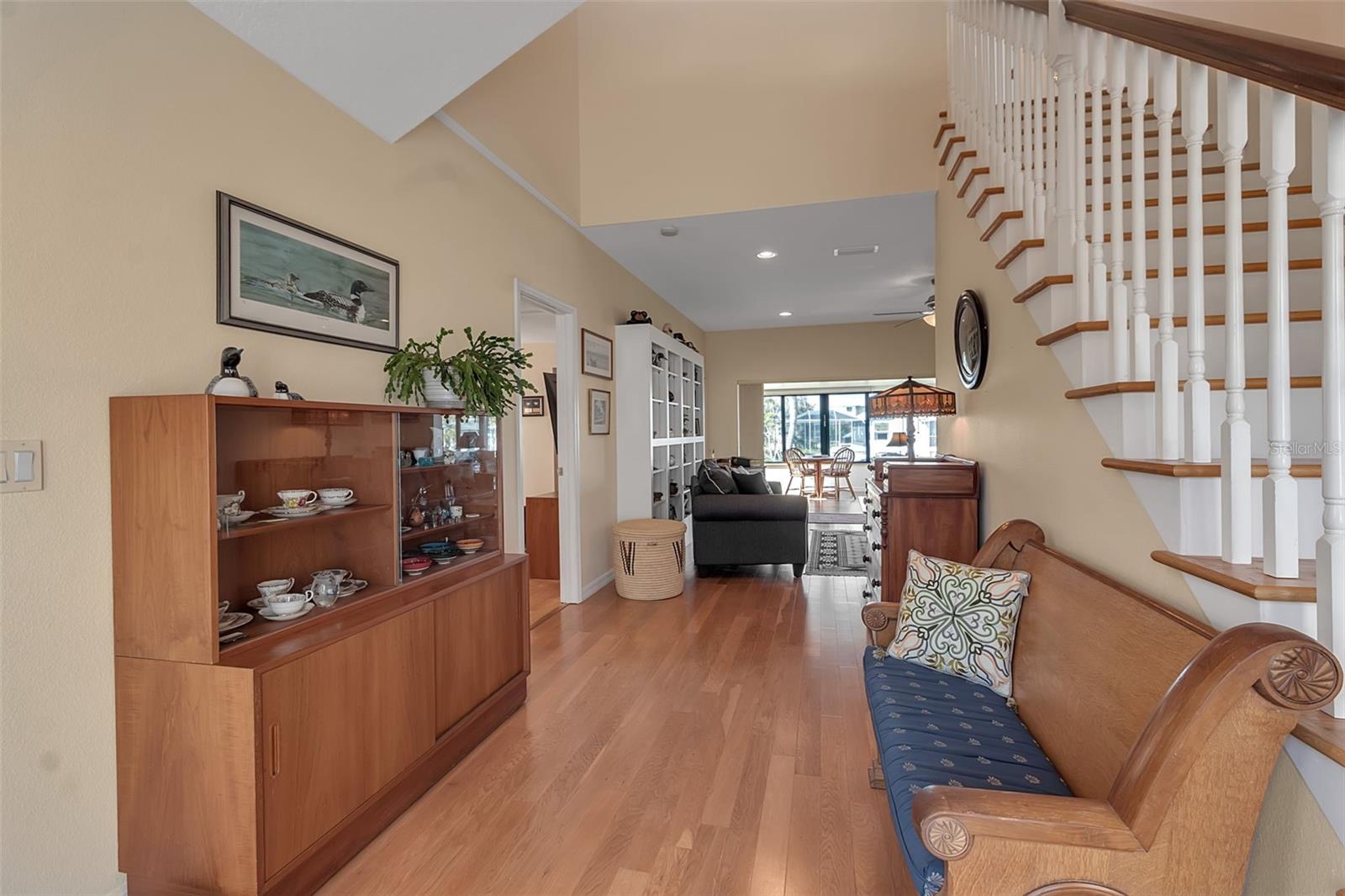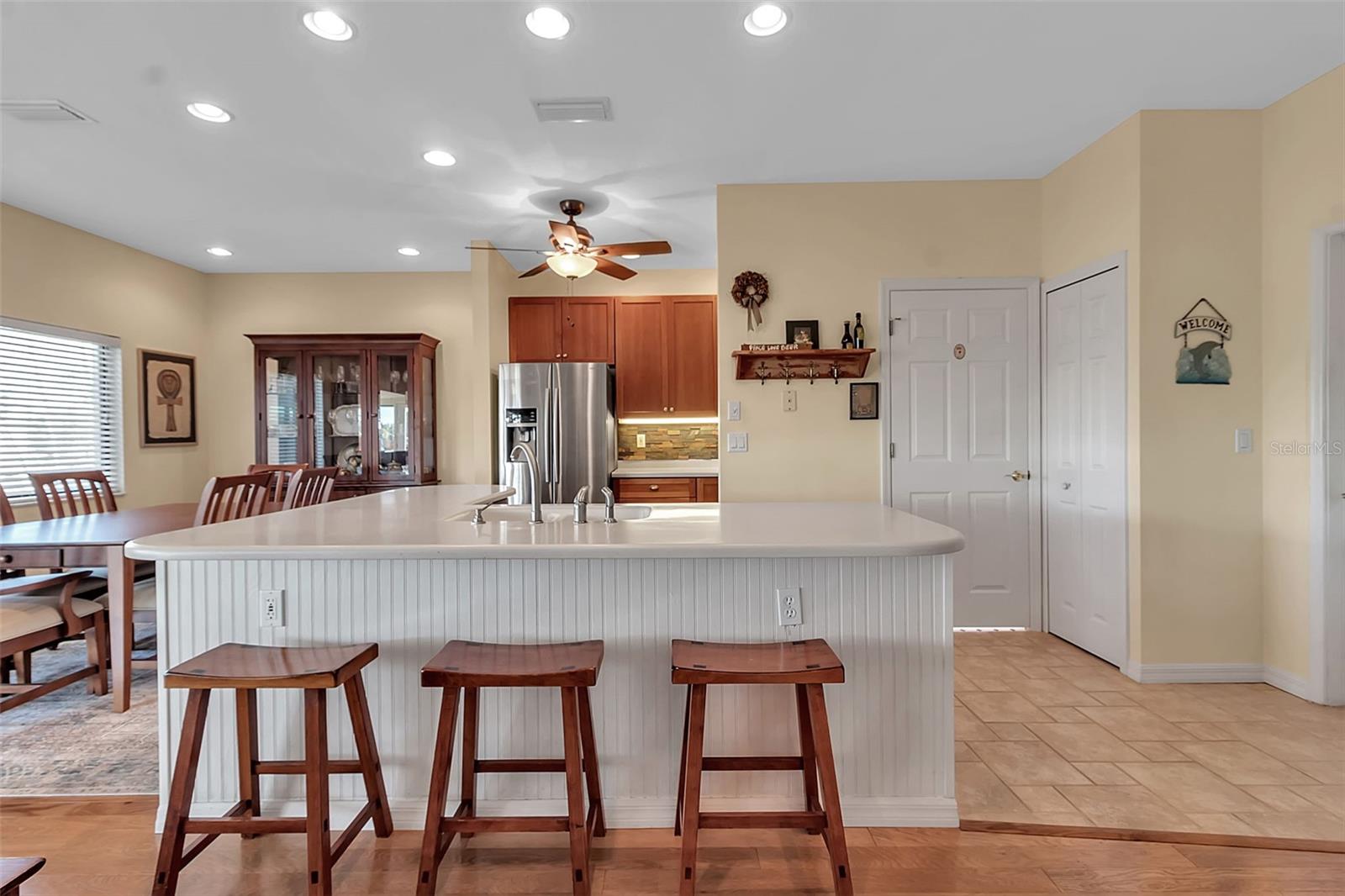 This two-story waterfront home, located on one of the widest and deepest parts of the canal and just minutes from Lyon's Bay and the Gulf, is ready for its new owner. With 3 bedrooms, 3.5 baths, and its own dock and kayak launch, this property is ideal for those who love waterfront living. The sellers have thoughtfully extended and enclosed the lanai, creating a Florida room perfect for year-round enjoyment with the hurricane windows providing peace of mind and abundant natural light. The open kitchen boasts ample counter space, ideal for entertaining, and features a cleverly concealed computer desk space behind French doors. This open great room floor plan lives large with built-in bookcases, a dining room right off the kitchen, a wet bar hidden out of the way but perfectly situated for entertaining. Also on the first floor you will find a primary bedroom which features a large walk-in closet, an attached full bathroom and Murphy bed. Sellers are now using this as a TV room. The second floor has 2 bedrooms which was an addition put on by the sellers and features another primary bedroom with a large walk-in closet and en-suite full bathroom. There is also a guest bedroom which includes an en-suite bathroom. Both of these rooms have beautiful views of the waterway. There are two patios, one is off of the Florida Room with a Hot Tub that allows you to soak while watching the boats going by. The front patio offers a charming spot to relax and enjoy the surroundings. The property is situated on a culdesac with 121 feet of water frontage. The westerly views from the back of the house are perfect for watching our magnificent sunsets. This gated, maintenance-free, resort style community offers a wealth of amenities, including a very active clubhouse, tennis and pickleball, a resort-style pool that is heated in the winter and cooled in the summer. Residents also enjoy a fitness room and library. For those with boats, RVs, and trailers, the HOA provides a secure and convenient fenced lot for storage. The HOA fee covers cable, internet, lawn maintenance, landscape care, and original structural insurance. Conveniently located about two miles from North Jetty Park, North Jetty Beach, and Nokomis Beach, this home offers easy access to shopping, dining, banking, the Legacy Trail, and historic downtown Venice.