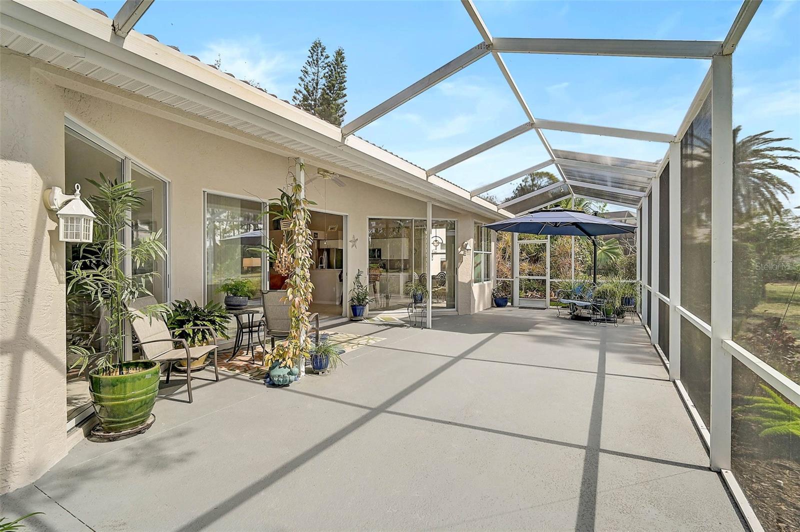 Indulge in unparalleled expansive VIEW of the TRANQUIL LAKE coupled being just steps away from the heated, COMMUNITY POOL. This verdant golf course within the maintenance-free Woodland Trails enclave of Calusa Lakes is just tucked down a quiet, tree-lined street. This nearly 1,900 sq. ft. residence radiates a sense of openness and luminosity, featuring an impeccably designed open-concept layout, three generously proportioned bedrooms and soaring vaulted ceilings. A newly installed ROOF (2022) and electrical panel (2025) provides peace of mind coupled with exquisite QUARTZ countertops in the kitchen complemented by new stainless steel appliance package (2025). The two bathrooms have been thoughtfully upgraded with new quartz surfaces, and the soaking tub provides an ideal space for relaxation. Expansive sliding glass doors and an abundance of windows grace the rear of the property, framing uninterrupted vistas of the serene lake, the 5th hole tee box, and the lush woodlands beyond—a view that will enchant you daily. Majestic oaks and pines provide a natural canopy, offering shade and privacy from all sides, creating an idyllic retreat. The generous lanai, surrounded by meticulous landscaping, ensures complete seclusion from neighbors, while the thoughtfully designed turn-around space in the driveway eliminates the need to reverse onto the street. Elegant, modern furnishings are available for purchase, ensuring an effortless, move-in ready transition. Calusa Lakes is one of the most sought-after communities in Nokomis, ideally situated with convenient access to the Gulf of Mexico, exquisite dining, boutique shopping, cultural venues, and the newly opened Sarasota Memorial Hospital. This exceptional neighborhood is defined by its towering shade trees, picturesque lakes, well-maintained homes, a semi-private golf course and clay tennis courts. Whether you are seeking a full-time residence or a seasonal sanctuary, this distinguished property in Calusa Lakes provides the ideal setting for your Florida haven.