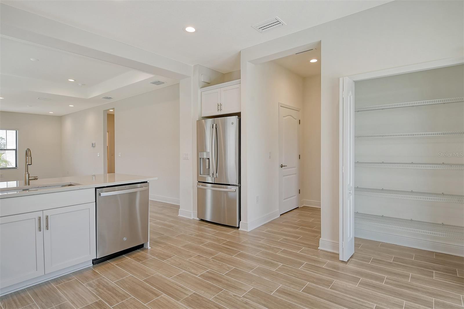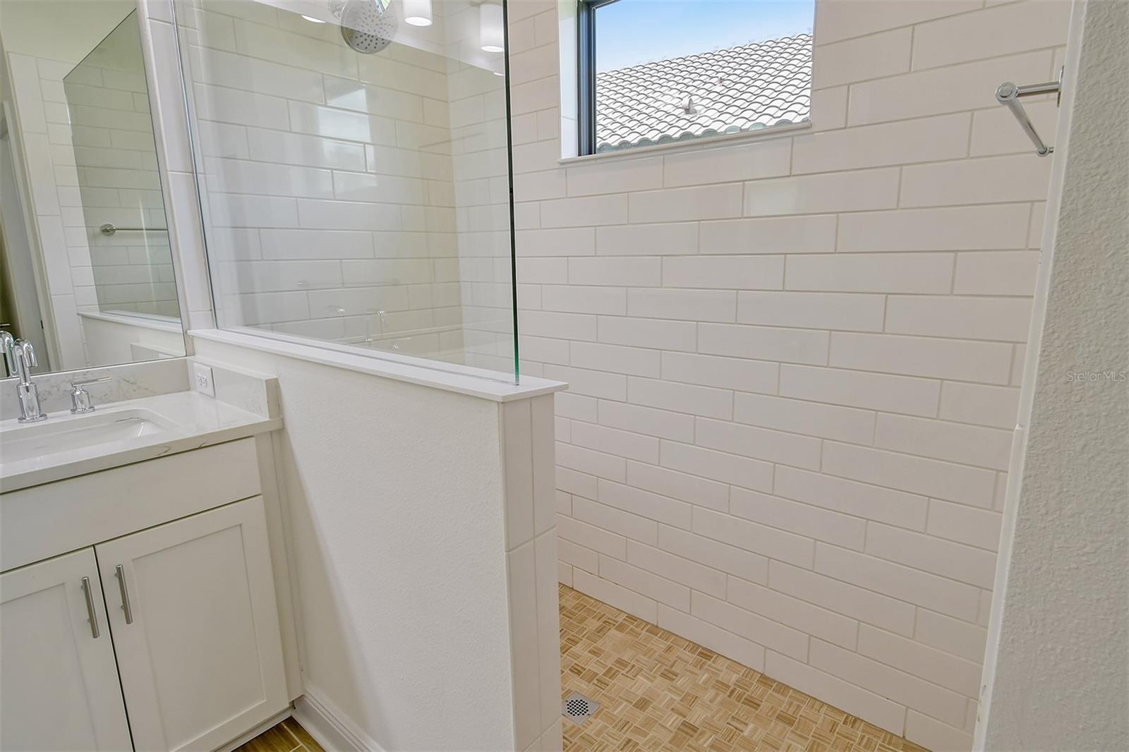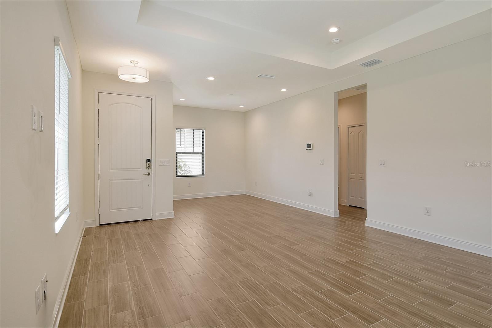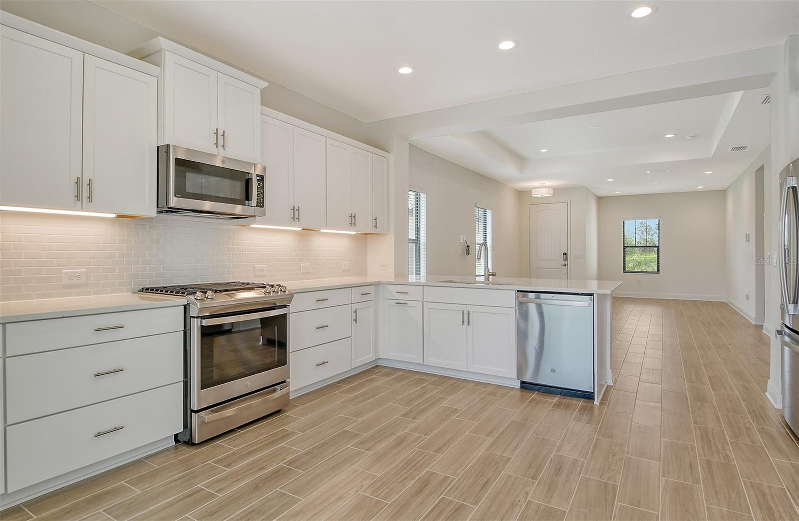 This beautifully designed 3-bedroom, 2-bath home offers modern elegance and everyday comfort. Enjoy wood-look tile flooring throughout and quartz countertops in both the kitchen and bathrooms, all set against a neutral, professionally selected color palette. The open great room features recessed ceilings, adding architectural interest and a spacious feel. Step outside to the extended lanai, already equipped with rough-ins for an outdoor kitchen, making it easy to create your perfect entertaining space. With impact glass for added peace of mind and a serene natural preserve view from the lanai, this home offers both privacy and style in one beautiful package.