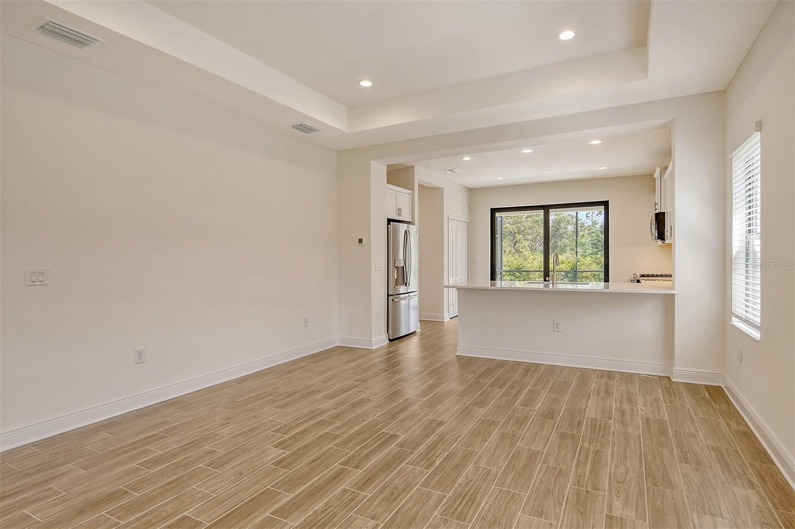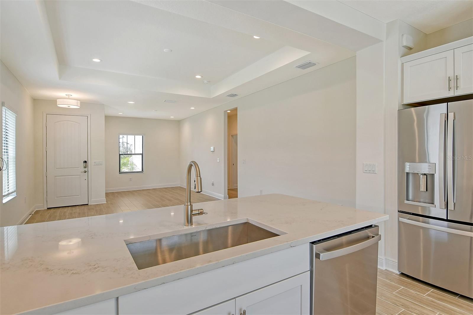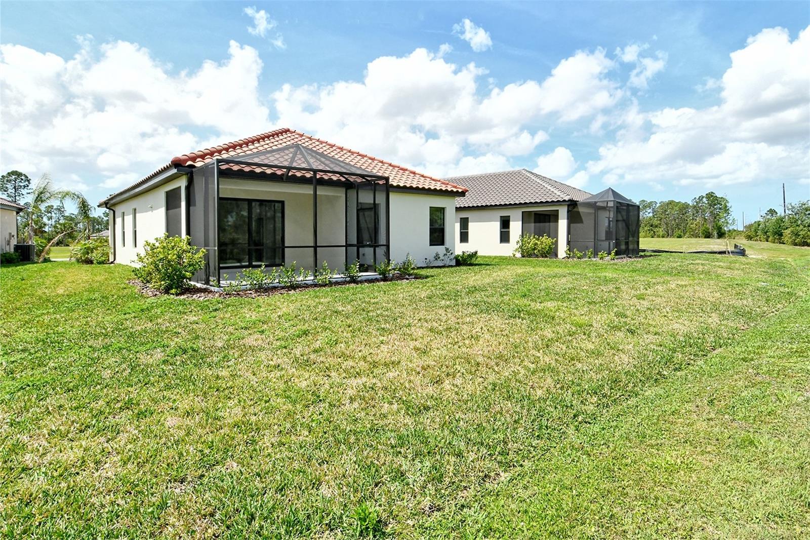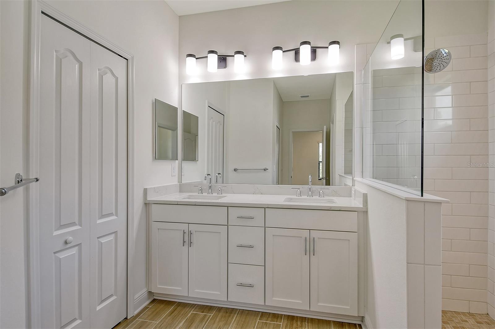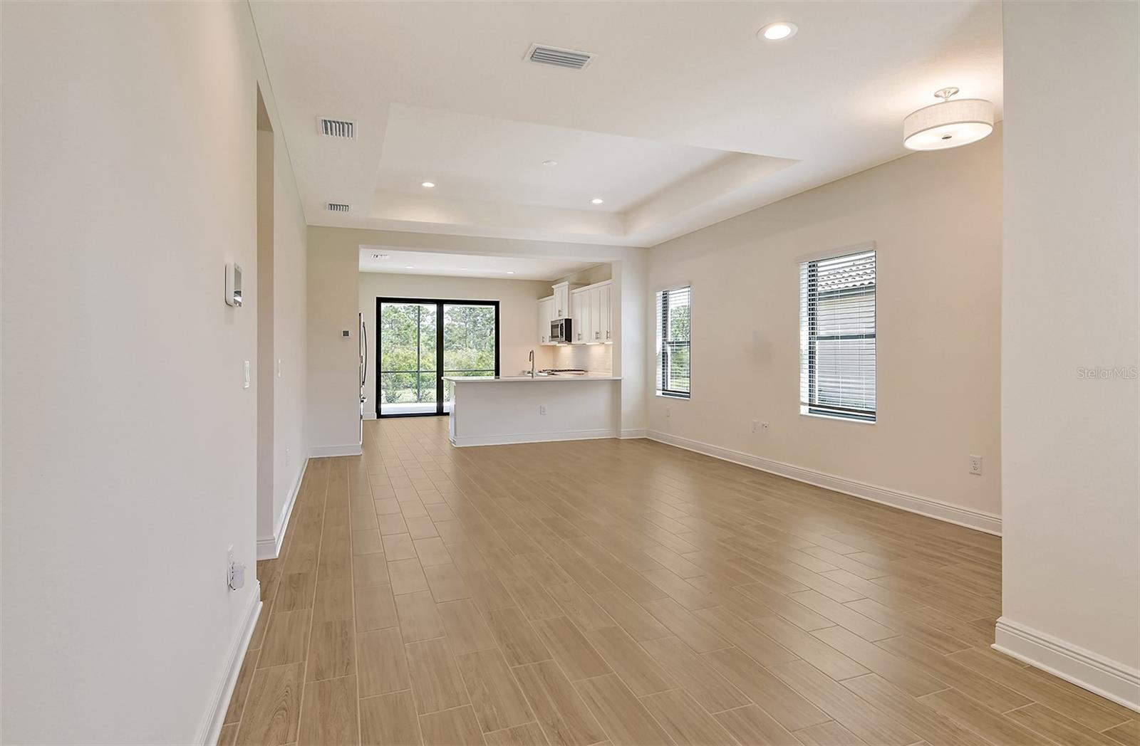 This beautifully designed 3-bedroom, 2-bath home offers modern elegance and everyday comfort. Enjoy wood-look tile flooring throughout and quartz countertops in both the kitchen and bathrooms, all set against a neutral, professionally selected color palette. The open great room features recessed ceilings, adding architectural interest and a spacious feel. Step outside to the extended lanai, already equipped with rough-ins for an outdoor kitchen, making it easy to create your perfect entertaining space. With impact glass for added peace of mind and a serene natural preserve view from the lanai, this home offers both privacy and style in one beautiful package.