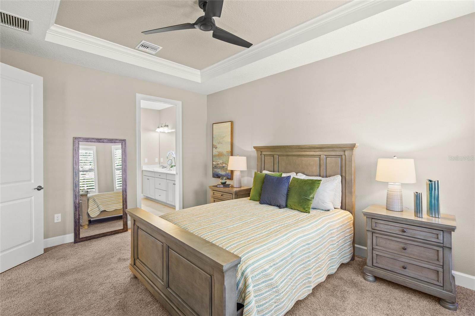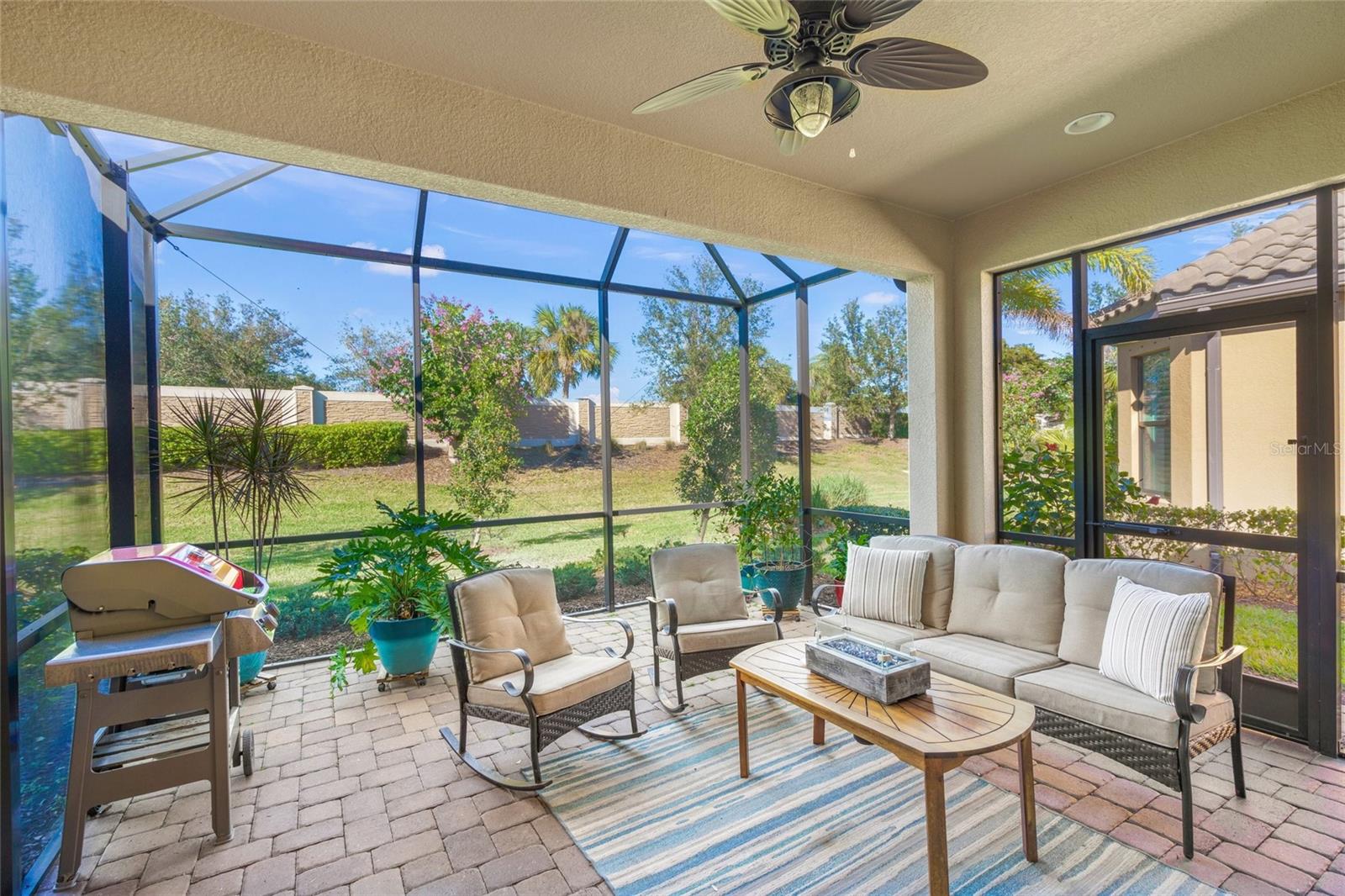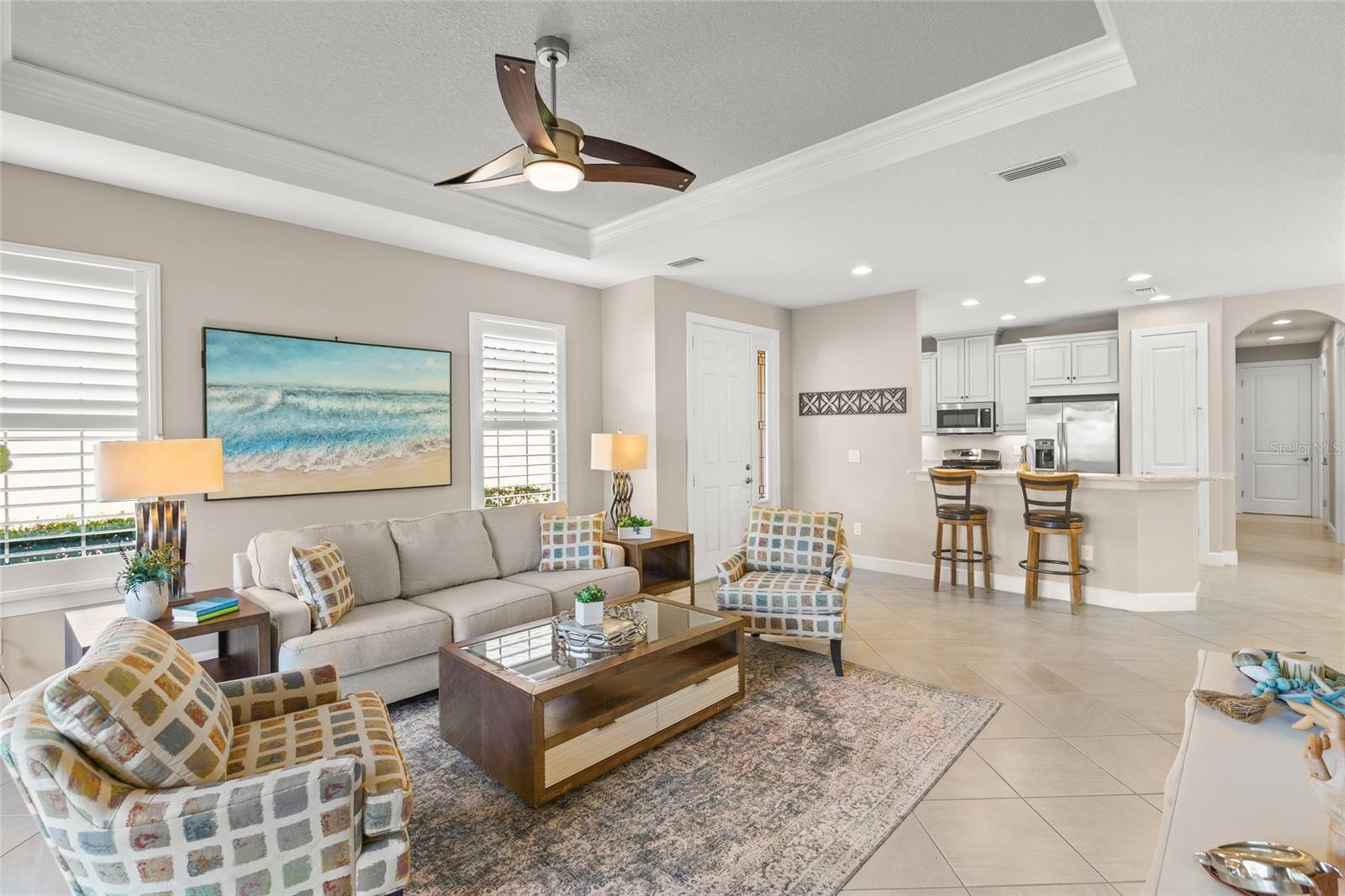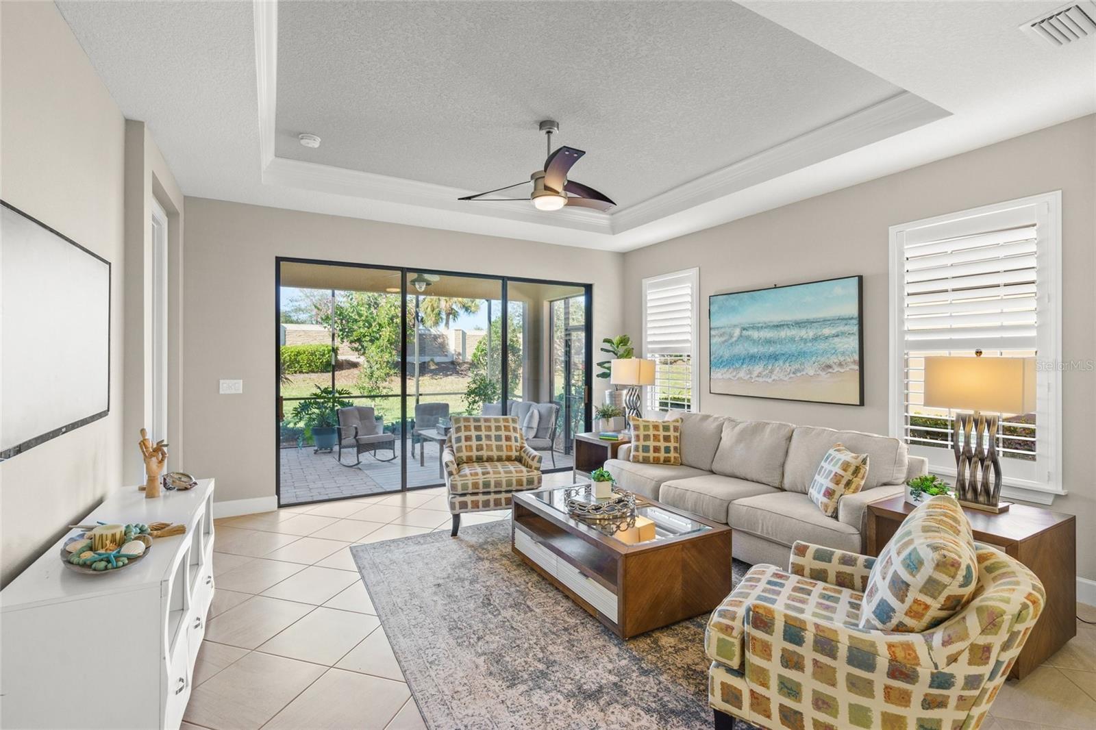 This stunning residence in the gated community of Bellacina by Casey Key offers unparalleled convenience and luxurious living. Just minutes from Nokomis Beach and downtown Venice, it is ideally near Legacy Trail, vibrant tiki bars, waterfront restaurants, and a dog park, providing a blend of relaxation and recreation. The fabulous Taylor Morrison Roma model features numerous upgrades, including 8-foot doorways, tray ceilings and plantation shutters that enhance its elegance. Located on a quiet cul-de-sac just a short distance to the community center. The spacious kitchen boasts quartz countertops and white cabinetry, seamlessly overlooking the inviting great room, creating an open and airy floor plan ideal for entertaining. The owner’s suite, which offers serene views of the expansive greenbelt, includes a large walk-in closet and a luxurious bath with dual sinks, a separate toilet and a spacious shower. The guest bedroom, along with its adjacent bath, is thoughtfully separated from the owner’s suite, ensuring privacy for residents and guests. An office/den with a double-door entry features stylish laminate flooring, ideal for work or other activities. Step outside to the screened and enlarged lanai, the ideal spot to enjoy morning coffee or an evening drink while taking in the tranquil views of the lush greenbelt. This home is built with quality solid concrete block construction and includes hurricane window protections for added peace of mind. Living in Bellacina means enjoying a wealth of amenities, including a community pool and spa, clubhouse, fitness center, pickleball and tennis courts, all designed to enhance your tropical lifestyle. Effortless maintenance-free landscaping included in low HOA fee. Enjoy the benefits of being in a preferred X flood zone with no CDD fees, making this residence a blend of beauty, comfort and convenience. For those seeking an easy and vibrant way of life, this residence is unmatched.