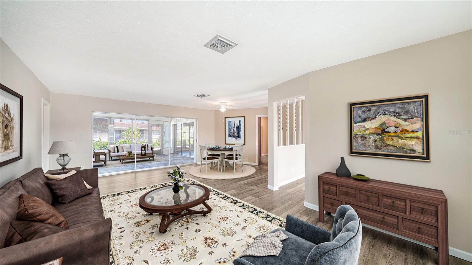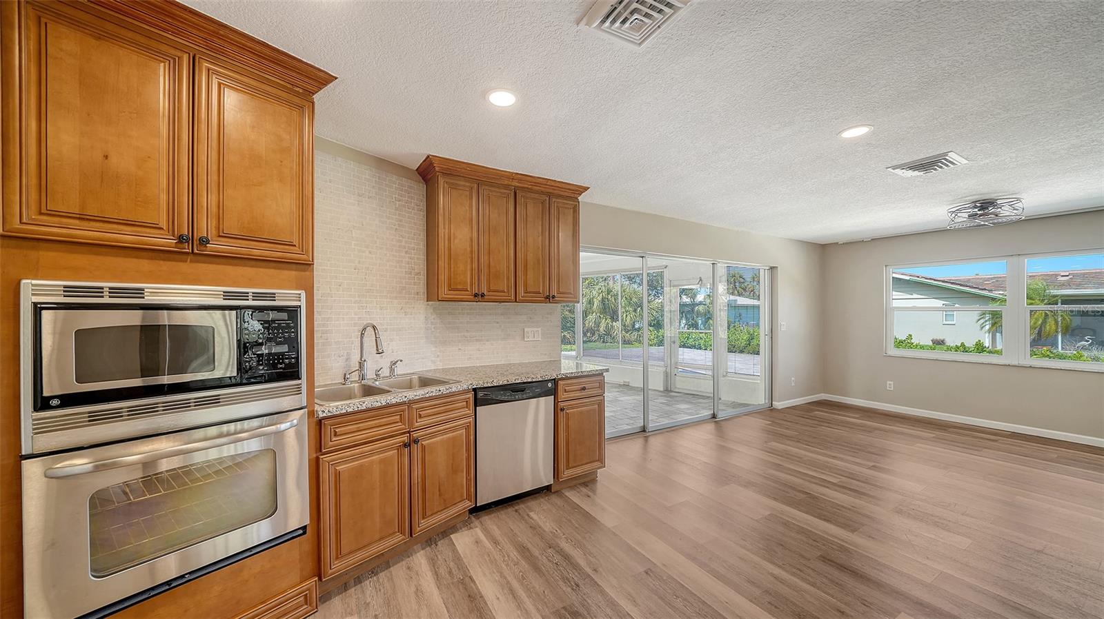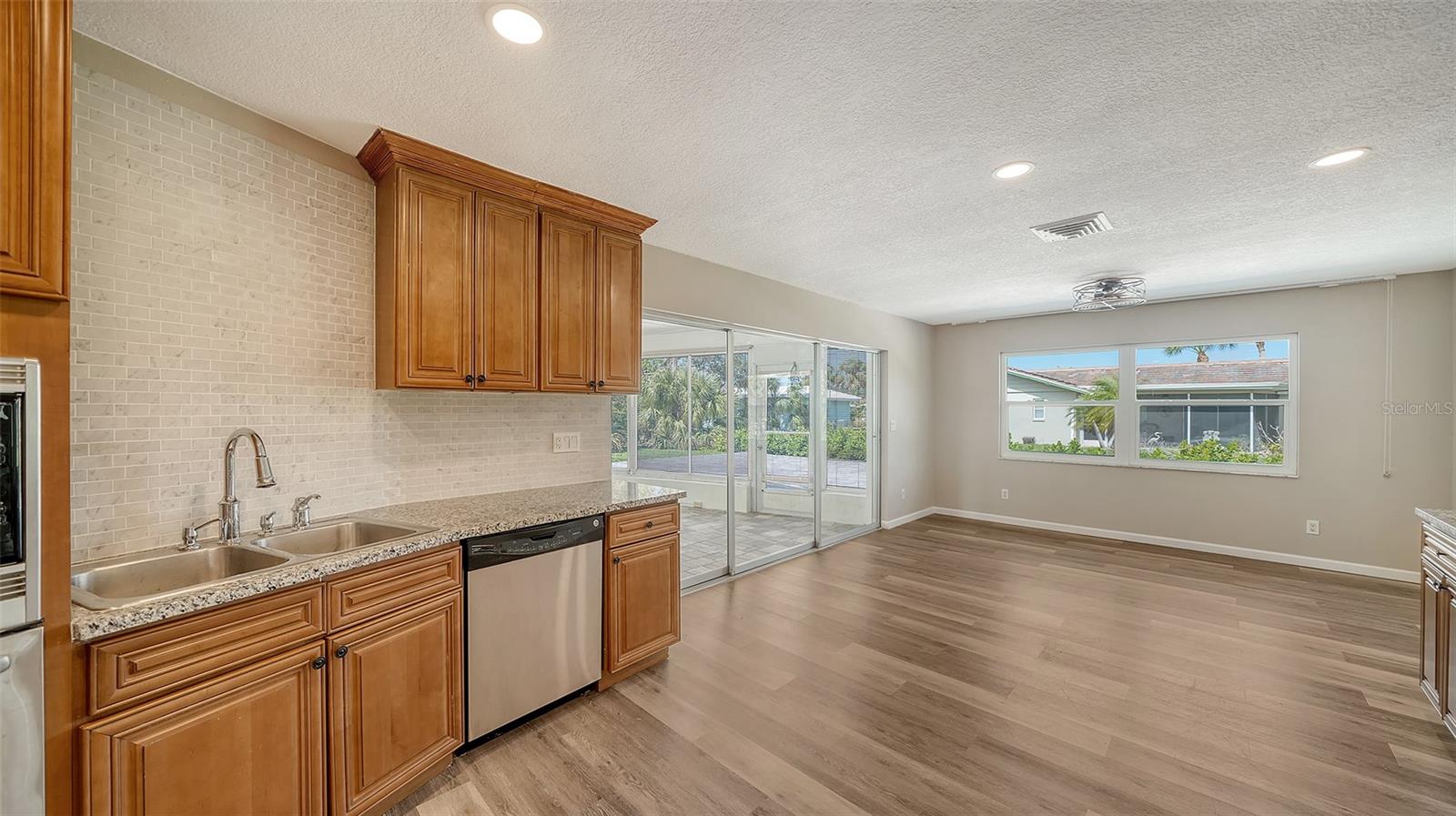 One or more photo(s) has been virtually staged. Welcome to this beautifully renovated 3-bedroom, 2-bathroom split floor plan home, nestled in the highly desirable Sorrento East neighborhood of Nokomis, Florida. This property has been thoughtfully updated, offering the perfect blend of modern style and comfort. Recent updates include fresh exterior and interior paint, luxury vinyl plank flooring throughout, stunning granite countertops, and brand-new bathroom vanities. The spacious 2-car garage features epoxy flooring and additional storage cabinets, providing ample space for organization. **Inside you will find extensive living space including a large living room with dining area, an updated kitchen with a breakfast nook large enough to be used as a family room. A large Florida room offers additional indoor/outdoor space , perfect for a family and entertaining. Step outside to an expansive paver patio, ideal for outdoor relaxation or entertaining, This home offers a pristine and move-in-ready atmosphere with every detail taken care of. Situated in a prime location between Sarasota and Venice, this home is just 3.8 miles from Nokomis Beach and within close proximity to A-rated schools, waterfront dining, fishing marinas, and shopping. Outdoor enthusiasts will appreciate the nearby Oscar Scherer State Park, offering miles of adventure. Whether you're looking for a coastal getaway or a peaceful retreat, this home offers the ultimate Florida lifestyle. Don’t miss out on this incredible opportunity to live in one of Nokomis’s most sought-after communities.