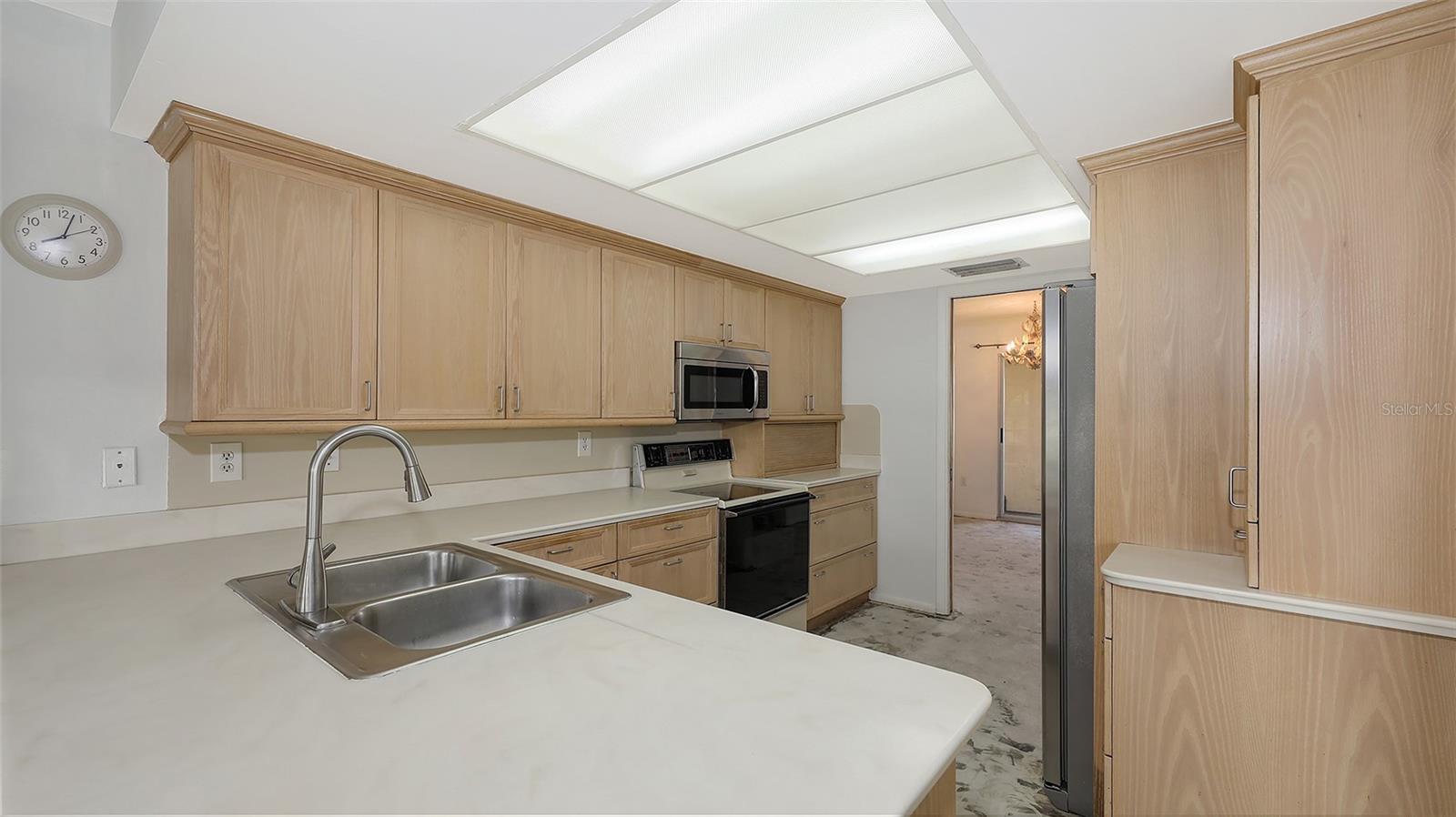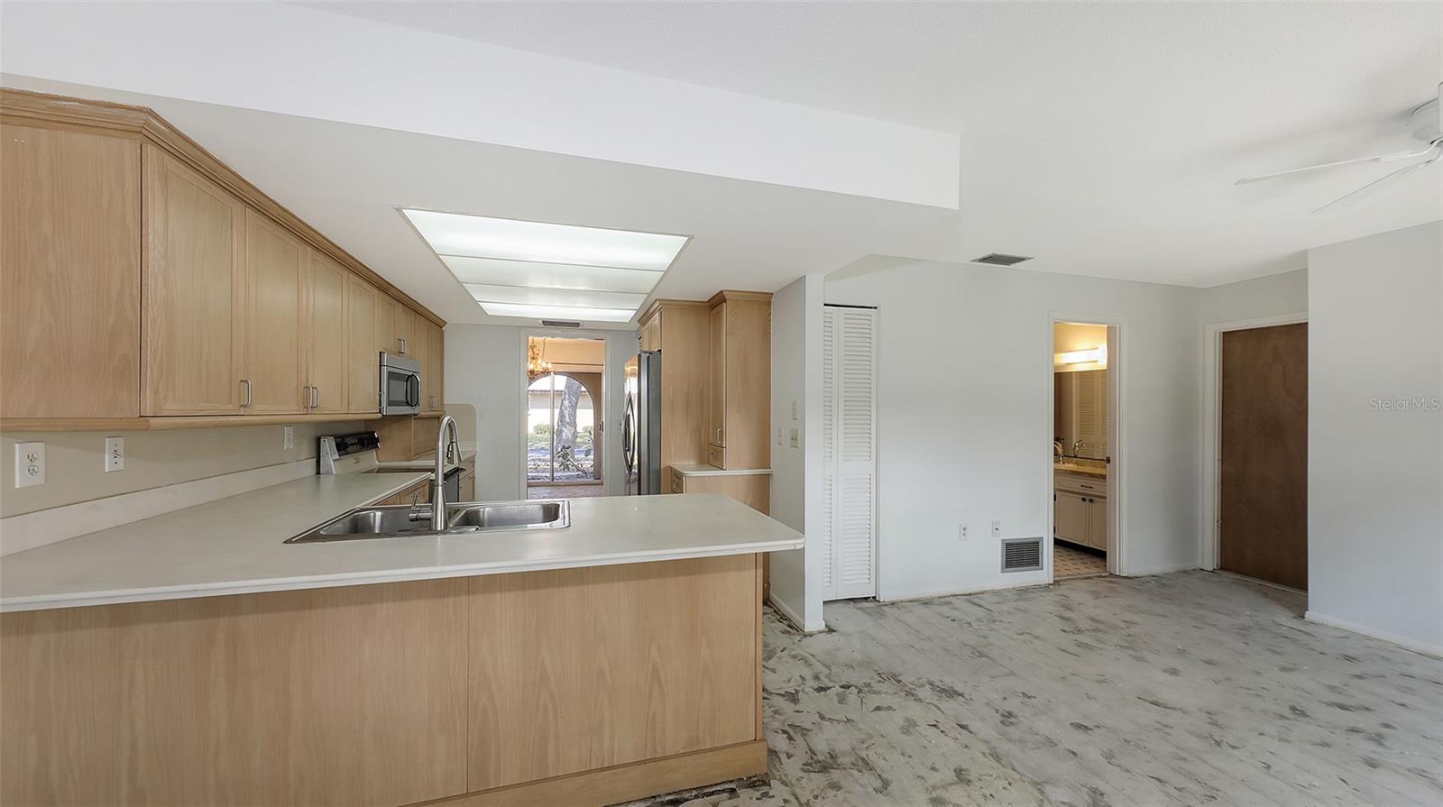 NEW ROOF IS ON! Seller credit of $2000 towards new flooring with an acceptable offer! Bring your vision to this wonderful villa in the heart of Nokomis. Situated in one of the most desired locations within Sorrento Villas, is a hidden gem just waiting for a new owner to make it their own. This special unit has just had a new coat of paint throughout, and all the flooring removed and prepped for an install of your choosing. Just under 1500 square feet, the two-bedroom two bath unit feels spacious and inviting. The back lanai has a serene view of the lake within the community, complete with abundant Florida wildlife. AC replaced in 2020, refrigerator and kitchen faucet in 2022, bathrooms refreshed with faucets, sinks and toilets in 2021, garage door opener in 2023, whole house replumb in 2011 and so much more. Close to all the area has to offer, beaches, shopping, parks and the renowned Legacy Trail. The HOA will be replacing the roof and soffits in the next few months and this villa is due for exterior painting next year (all HOA responsibility). This is your chance to live the dream in warm and sunny Florida. Opportunity awaits!