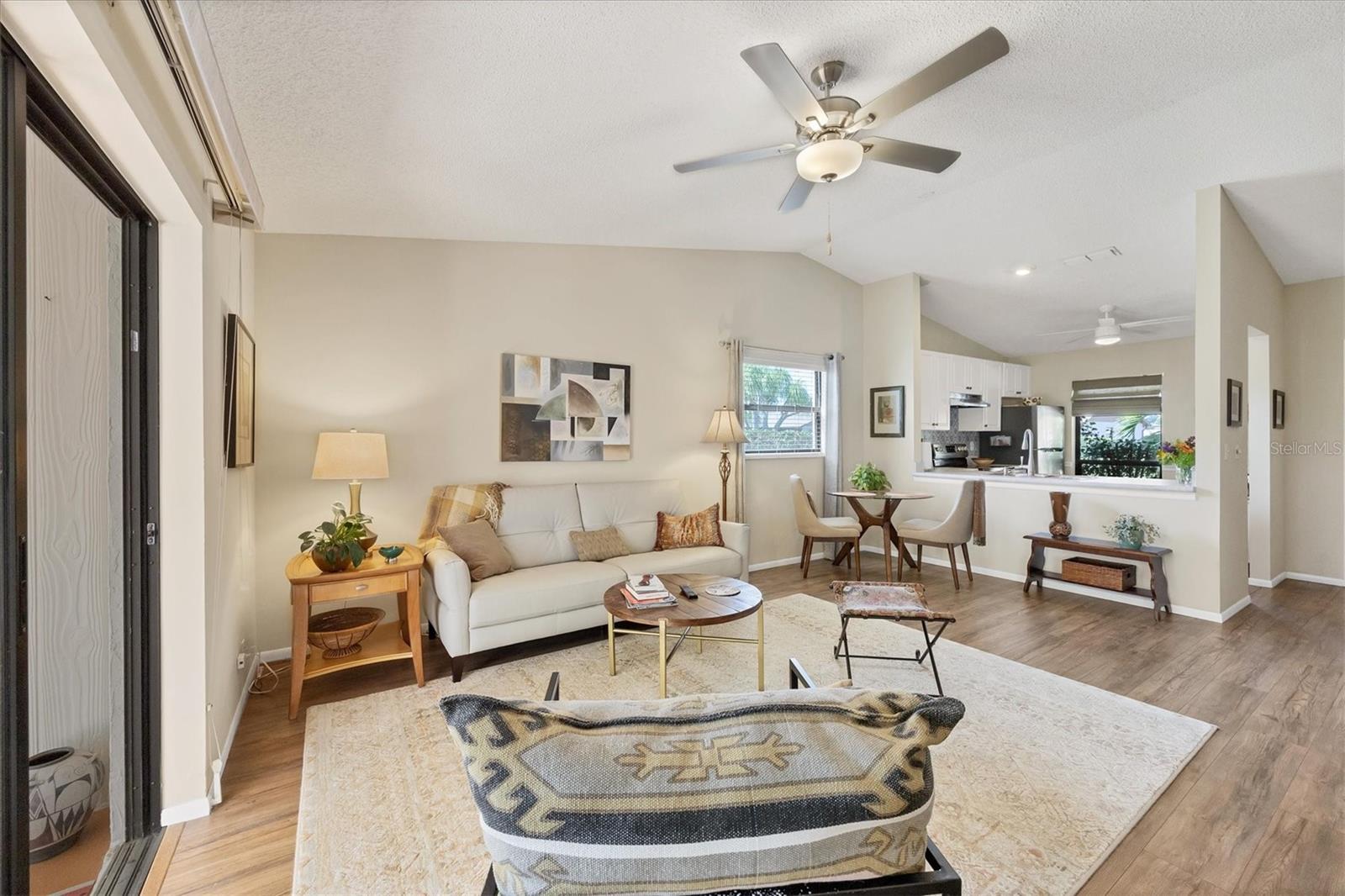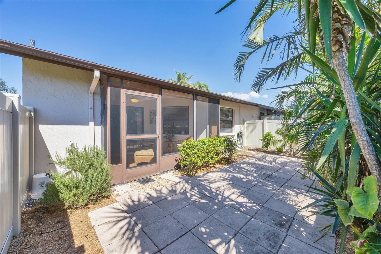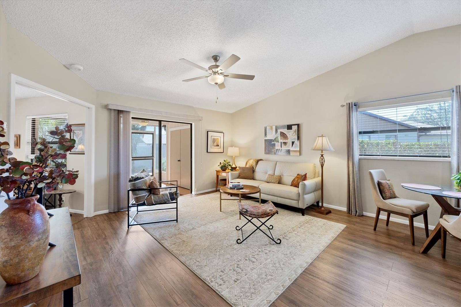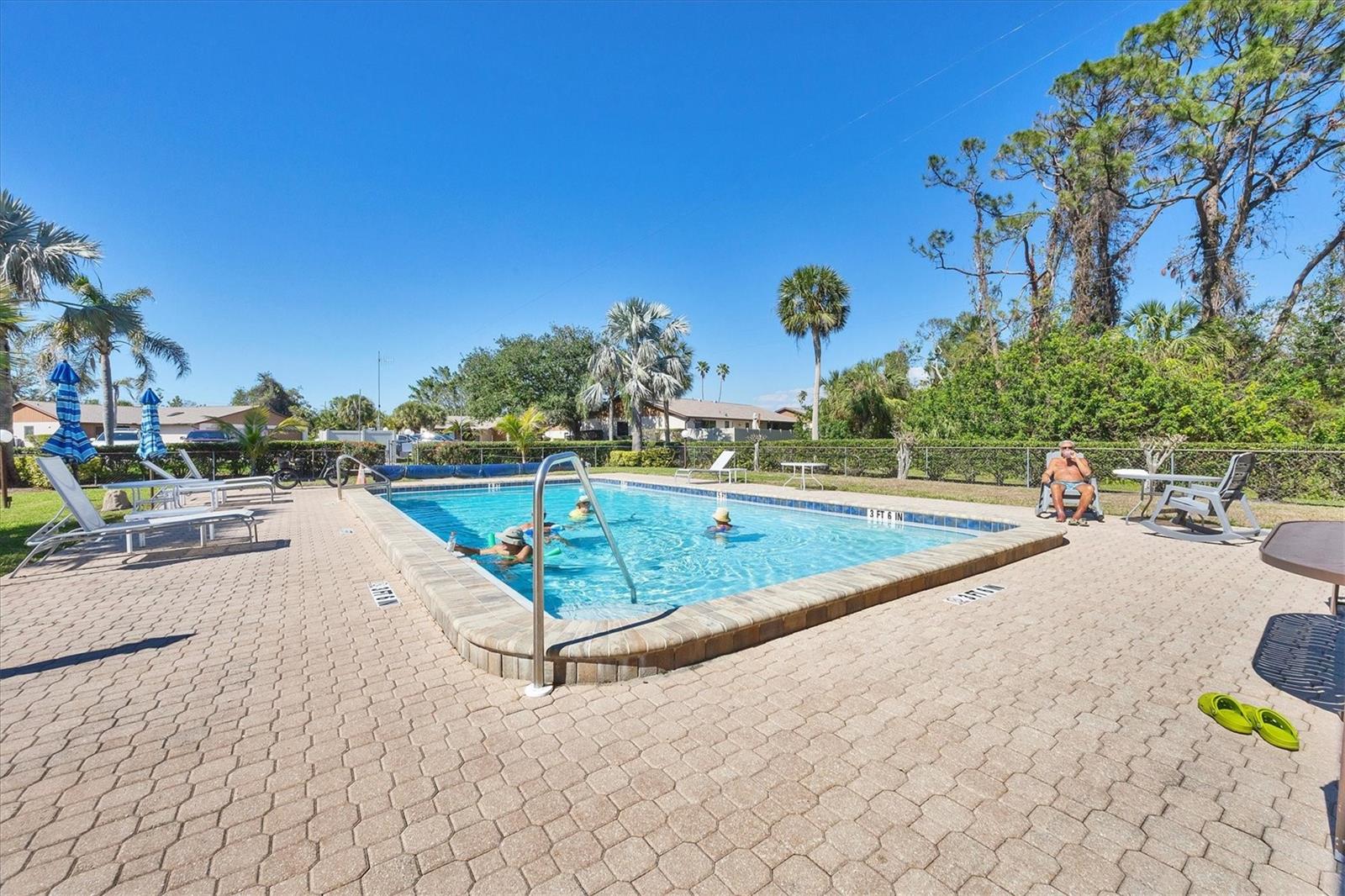Newly reduced price. Great value on this charming, fully updated villa...an exceptional property that truly is a "must-see." Nestled in a peaceful cul-de-sac, this move-in ready home offers the perfect blend of privacy & convenience. Located in the over 55 community of Curry Cove, you will enjoy maintenance-free living with a spacious yard, lush tropical palms and private under cover parking. Enjoy the serene outdoors with a covered & screened South facing lanai that opens onto an oversized, fully fenced courtyard...ideal for gardening, relaxing or grilling with friends and family. The home was COMPLETELY RENOVATED in 2021 featuring a new open kitchen, all new cabinetry, countertops & appliances, new bath with new shower, toilet, vanity, lighting & brushed nickel fixtures, all new engineered hardwood flooring throughout w/tile in wet areas, newer AC system, and NEW ROOF in 2023. This inviting villa is light & bright featuring a welcoming entry foyer, lots of windows for maximum sunlight, a stylish design, vaulted ceilings, fans in main living areas and on patio, laundry room, and also comes with plenty of storage space. Enjoy the Florida lifestyle, as this villa is located just a few miles from Nokomis Beach and historical downtown Venice, offering easy access to shopping, dining, recreation & medical facilities. The community is complete with a heated pool and clubhouse. Whether you’re seeking a cozy winter retreat or a full-time residence, this villa offers the perfect combination of comfort, convenience, and privacy in one of Florida's most desirable locations. No flooding or damage from recent storms, FLOOD ZONE X (no flood zone) and pet friendly community. Truly a gem of a property with reasonable fees and a coveted location.