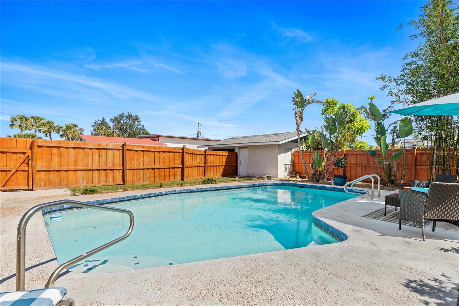 Charming 3-Bedroom Bungalow Near Sarasota Beaches Discover your dream home with this stunning 3-bedroom, 2-bathroom bungalow located between Sarasota and Venice, Florida. This property is the ultimate haven for beach lovers, adventurers, and golfers alike. Nestled on a spacious lot, it’s just minutes from Florida's top beaches, Oscar Scherer Park, and 5 premier golf courses. Experience the best of the Florida lifestyle right at your doorstep! Modern Comfort Meets Paradise Living Step into a home designed for relaxation and comfort. With a brand-new A/C system and ductwork installed in 2020, you’ll enjoy a cool and refreshing space year-round. A durable metal roof (installed in 2022) adds peace of mind, while the recently resurfaced pool invites you to dive into tranquility. The completely fenced backyard offers privacy, making it your personal tropical oasis. Backyard Paradise with Fruit Trees and Pool Love fresh fruit? The lush backyard features lime trees, a fruit cocktail tree, sugarcane, bananas, and even pineapples—perfect for creating your own garden-to-table experience. The sparkling pool is ideal for cooling off or lounging with a drink in hand. Whether you’re entertaining guests or enjoying a quiet evening, your outdoor space is a slice of paradise. Spacious Workshop and Ample Storage For DIY enthusiasts, car collectors, or boat owners, the converted garage-turned-workshop is a dream come true. With high ceilings, it’s large enough for multiple vehicles, a boat, or even a mechanic’s lift. Plenty of storage ensures you’ll have space for all your projects and hobbies. Prime Location and No HOA Fees Located just 3 miles to the beach and 3 miles from the Legacy Trail, this home is perfect for biking, walking, and exploring the outdoors. Best of all, there are NO HOA fees, and the property is NOT in a flood zone, combining practicality with coastal charm. The proximity to Sarasota’s best beaches and attractions makes this home an unbeatable choice for anyone seeking the Florida lifestyle. Schedule a Tour Today This enchanting bungalow offers sunshine, adventure, and coastal living all in one. Don’t miss out on this rare Florida treasure—contact us today to schedule a tour and make this tropical oasis your new home! Immerse yourself in a 3-D tour by going here: https://funkypalmproductions.hd.pics/142-2nd-Ave/idx