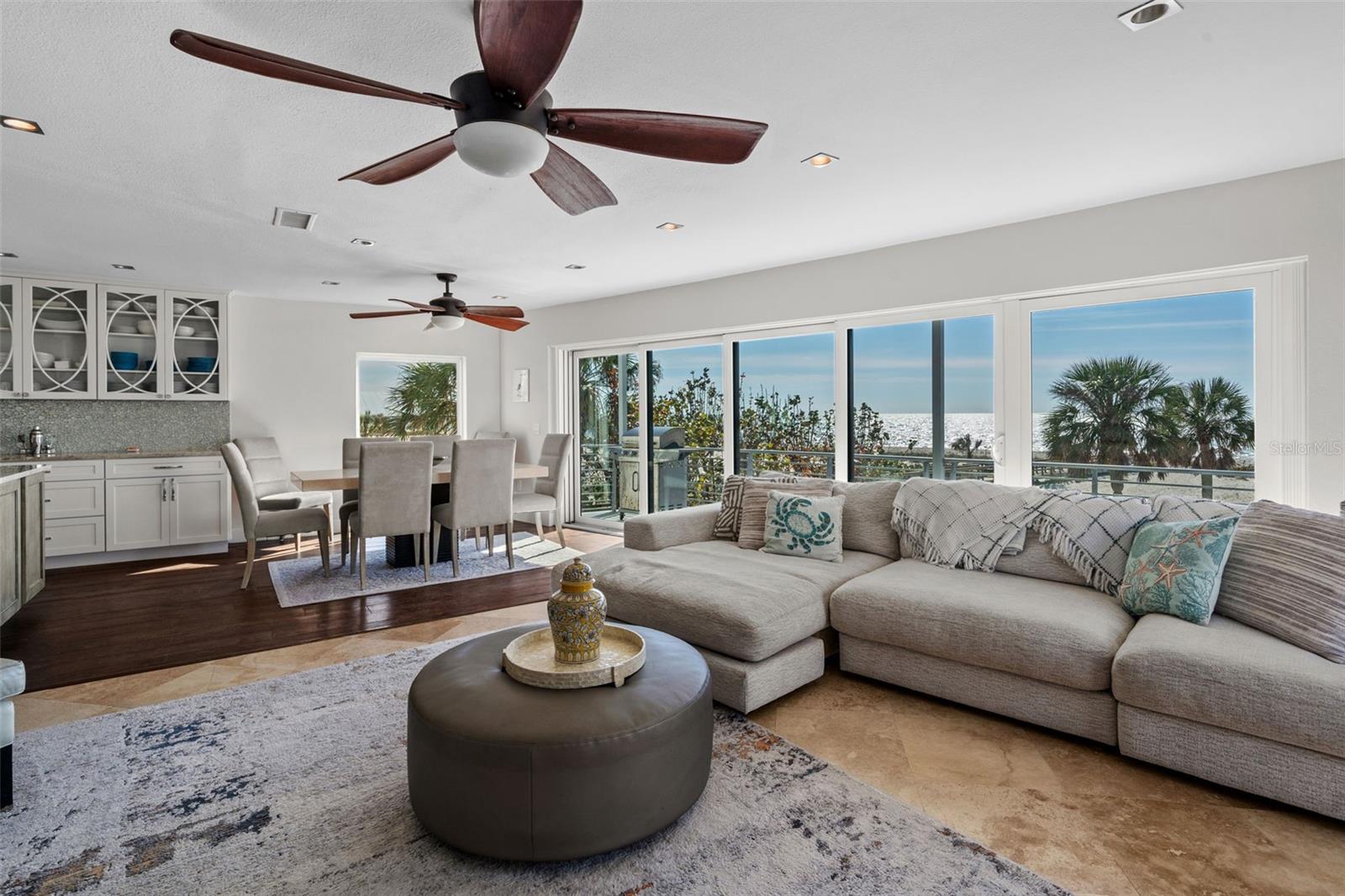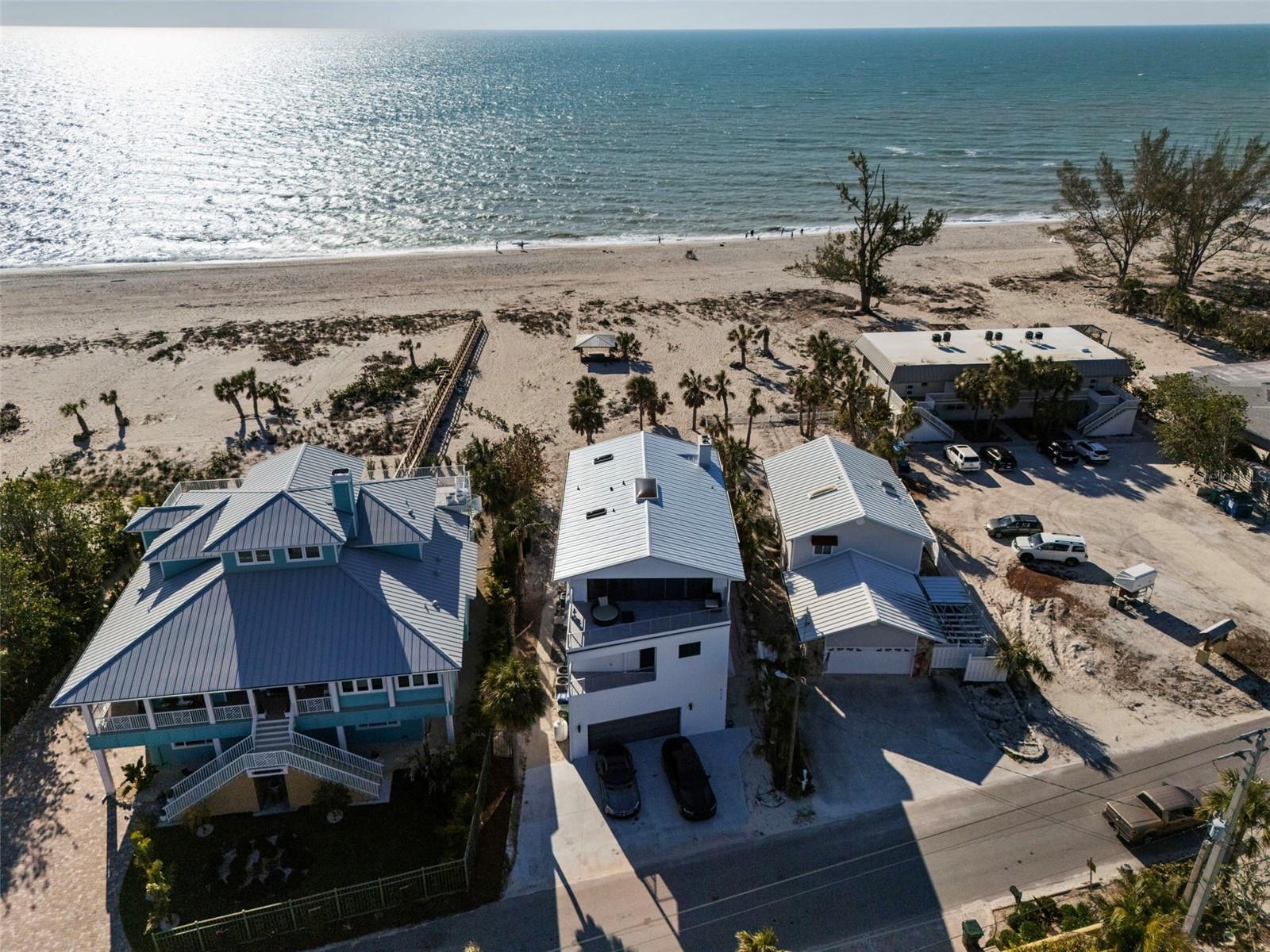 Experience the epitome of luxury living with this breathtaking beach-front estate, perfectly situated on the pristine shores of Casey Key. Offering unrivaled privacy, your backyard is the serene Gulf of America, creating an idyllic paradise for you and your family. Originally built in 1951, this masterpiece was meticulously renovated in 2016 and again in 2025, blending timeless charm with modern sophistication. This expansive 6-bedroom, 5-bathroom home offers just under 4,000 sq. ft. of refined living space across multiple levels, ensuring comfort and style at every turn. Designed for both relaxation and entertaining, the property boasts three living rooms, two dining rooms, and three fireplaces, providing ample space for family and guests. The gourmet kitchen is a chef's dream with a Wolf gas range with 6 burners, a griddle, and a double oven, along side with a Sub-Zero PRO refrigerator/freezer, granite countertops, and soft-close cabinets. Enjoy meals at the massive 6-chair island while taking in stunning water views. With three balconies offering breathtaking views, you'll enjoy both the indoor and outdoor lifestyle. The home also includes a two-car garage, and a laundry room on every floor for ultimate convenience. Impressive features like impact windows and doors, travertine floors throughout (except in the kitchen, which features engineered hardwood floors, and marble tile in the bathrooms) elevate the home’s luxurious feel. Recent updates include a brand-new metal roof installed in January of this year and a new A/C unit installed in 2023, ensuring modern functionality and peace of mind for years to come. Additionally, this home is available turnkey furnished—ask for more details! With exclusive access to your own private beach, this is a once-in-a-lifetime opportunity to own a premier waterfront residence on one of Florida's most coveted islands. Don’t miss your chance to call this magnificent home yours! Call us today for private tour of this beauty.
