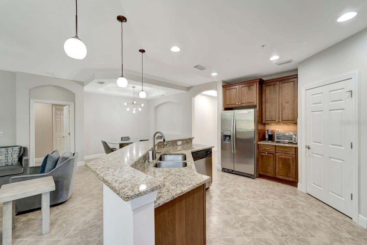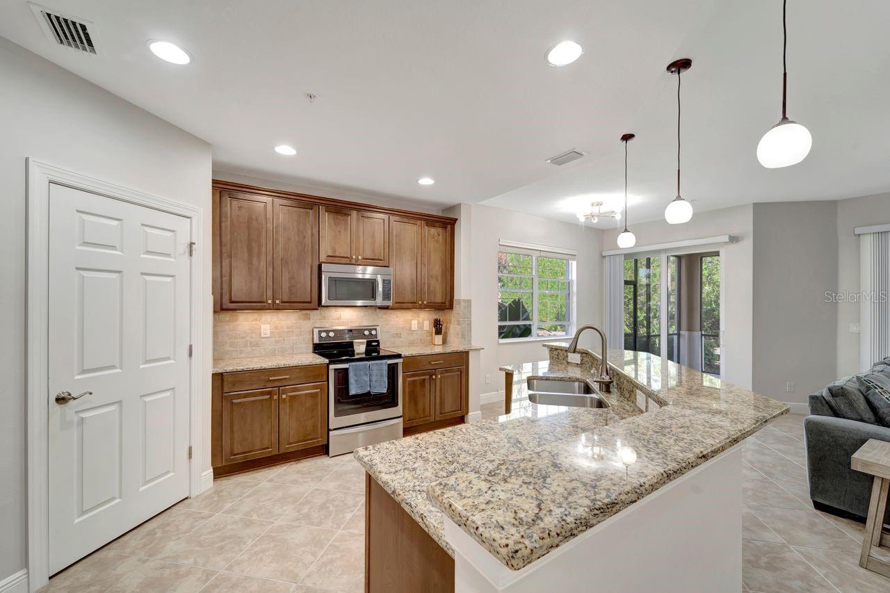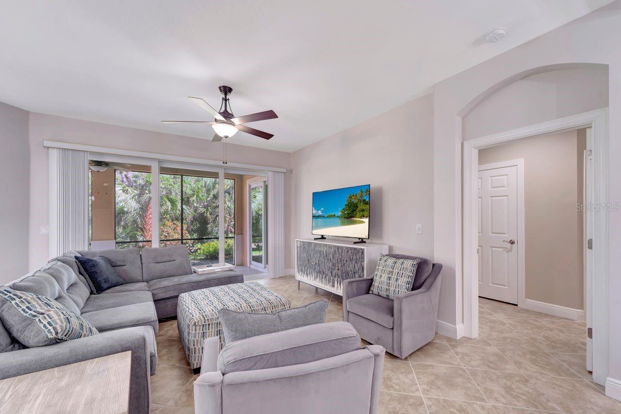 ** HUGE PRICE REDUCTION ** Experience luxury living in this beautifully maintained first-floor carriage home, located in the sought-after Venetian Golf and River Club. This 3-bedroom, 2-bathroom residence offers over 1,700 square feet of thoughtfully designed living space with a bright, open split floor plan. The expansive great room is filled with natural light, and sliding doors that lead to a spacious covered lanai—perfect for relaxing or entertaining while enjoying the serene preserve views of the community’s 75-acre nature area. The kitchen is a chef’s delight, featuring upgraded cabinets, granite countertops, a walk-in pantry, dishwasher, microwave. The kitchen seamlessly connects to the dining area and family room, creating an ideal space for gatherings. The primary suite is a private retreat, boasting a generous walk-in closet, an en suite bathroom, and additional storage for linens. Two additional bedrooms share a well-appointed bathroom, with one room offering its own walk-in closet. Practical features include ample storage throughout, a separate laundry room, and an attached 2-car garage. The home’s interior living areas and building exterior make it move-in ready! The Venetian Golf & River Club is rich with amenities, including 6 Har-Tru tennis courts, 3 pickleball courts, two swimming pools, a fitness center, and a clubhouse with a restaurant and two bars. The 18-hole championship golf course is the heart of the community, with memberships available but not required. Nestled in a gated community with 24-hour security and lush tropical landscaping, this maintenance-free home is just minutes from the stunning beaches, shopping, and dining of Sarasota and Venice. If you’re looking for an amenity-rich lifestyle in a picturesque setting, this home is a must-see. Come discover your perfect Florida getaway!