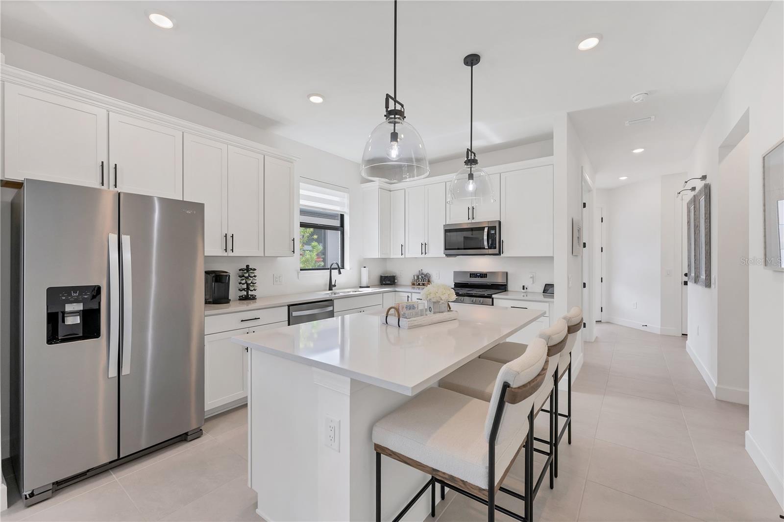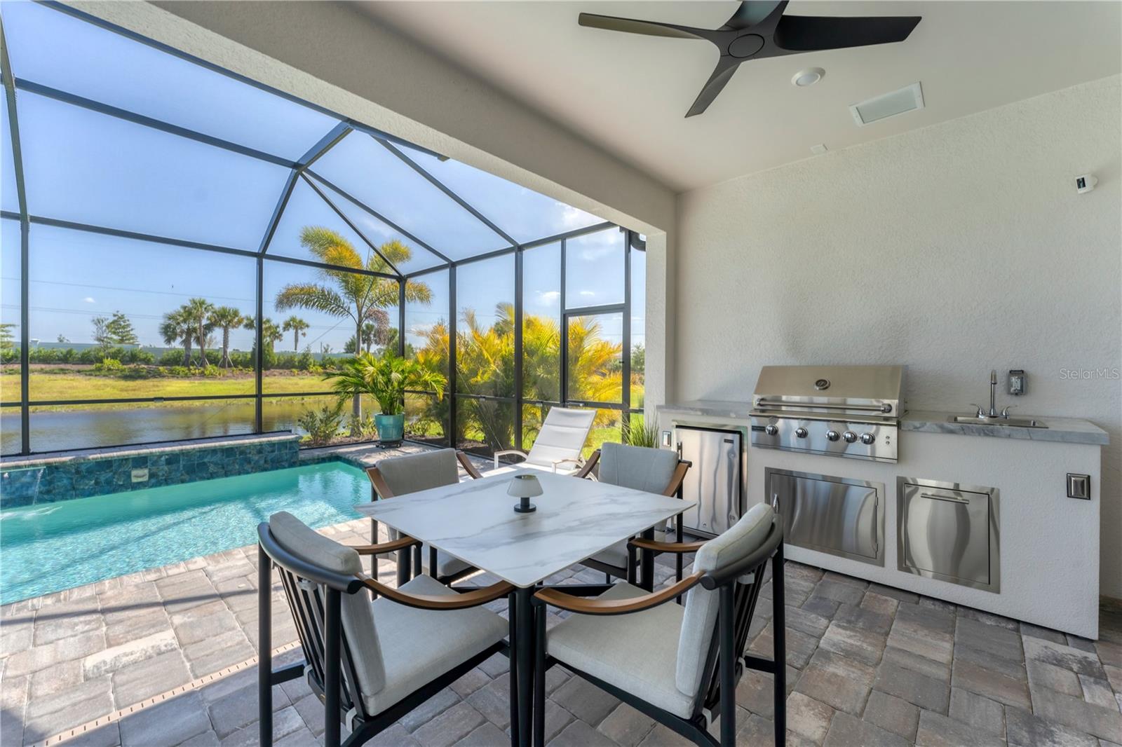 TALON PRESERVE'S MOST AFFORDABLE LAKEFRONT POOL HOME - BETTER VALUE THAN CURRENT BUILDER PRICES! Secure your spot in this highly-desirable, resort-style community! This exquisite 2024-built home is the only Contour Model with a private pool currently available on the market. Designed for both comfort and elegance, this 2-bedroom, 2-bathroom residence with a separate office and an extended 2-car garage showcases top-tier upgrades and a pristine lake view. Step inside to discover a beautifully designed open-concept floor plan with porcelain tile flooring, high-impact windows, and LED recessed lighting throughout. The gourmet kitchen is a chef’s dream, featuring high-end appliances, natural-gas stove, quartz countertops, soft-close cabinetry, and a spacious island with seating, perfect for casual dining and entertaining. Custom window treatments add a polished touch to the thoughtfully designed interiors. The outdoor space is truly a showstopper. Relax and entertain in your screened-in lanai, complete with a covered outdoor dining area, a full outdoor kitchen, and a heated saltwater pool with a tranquil waterfall feature. Whether you’re enjoying morning coffee by the pool or hosting family and friends at sunset, this private backyard oasis is designed for year-round enjoyment. Located in Talon Preserve, a premier gated community in Nokomis, FL, residents enjoy resort-style amenities, including a clubhouse, fitness center, heated community pool and spa, restaurant & bar, pickleball, tennis, and bocce ball courts, walking trails, and direct access to Legacy Trail. Just minutes from Siesta Key Beach, downtown Sarasota, and top-rated golf courses, this home offers luxury living in a prime location. Don’t miss the opportunity to own this exceptional property!