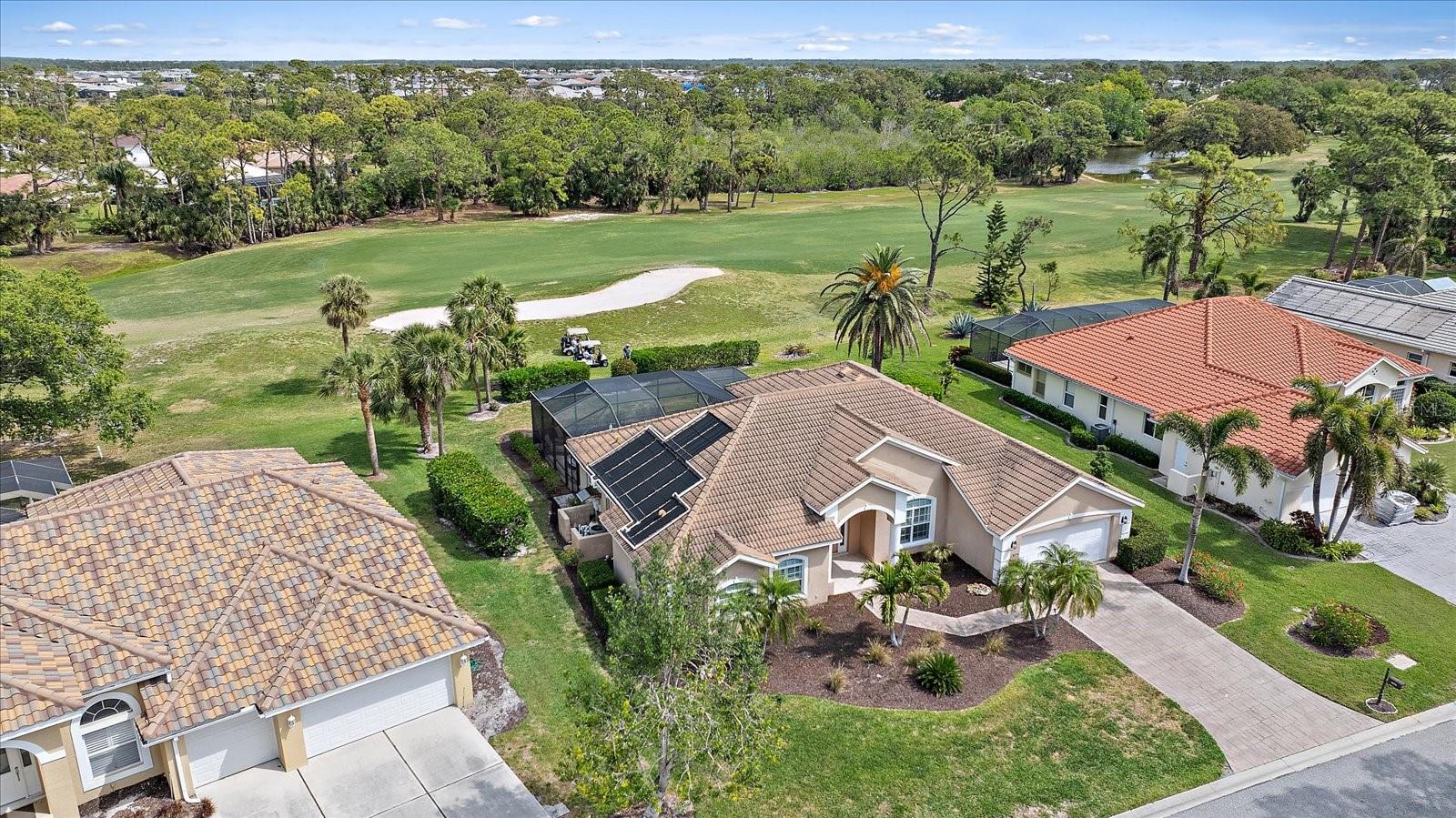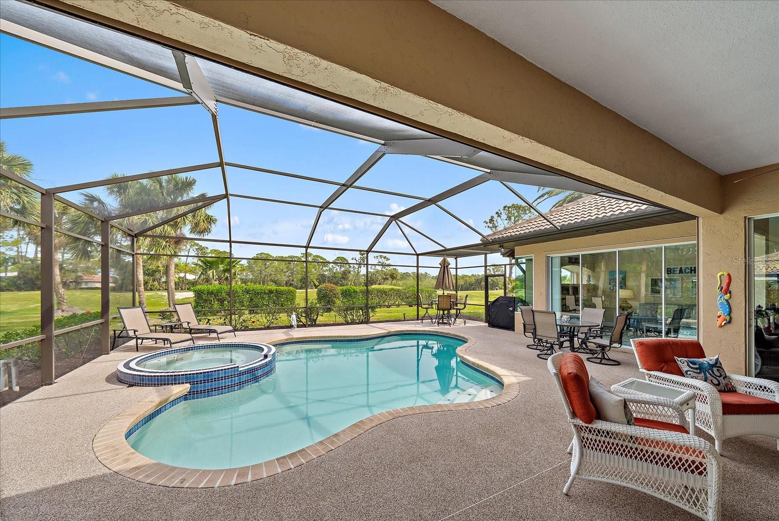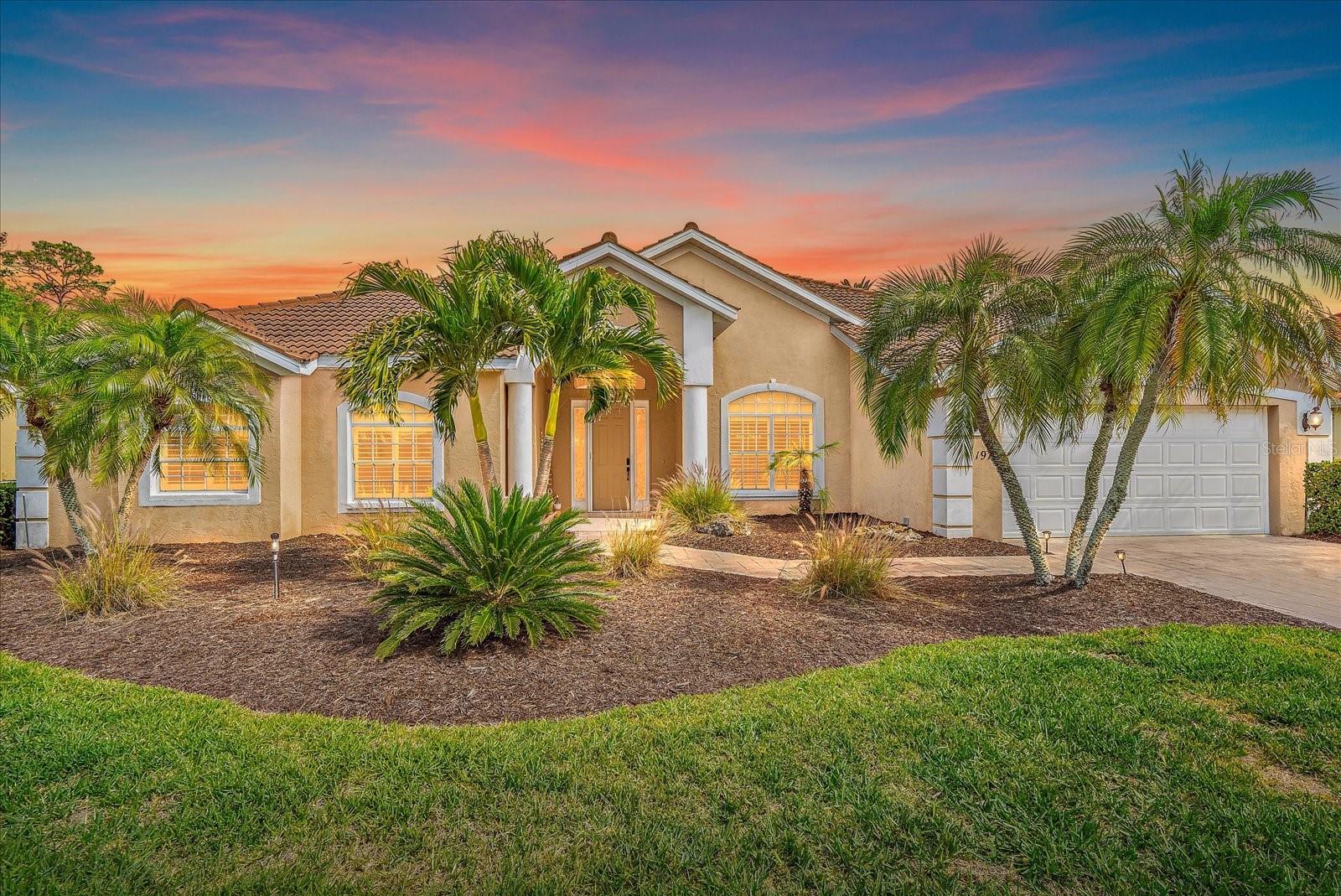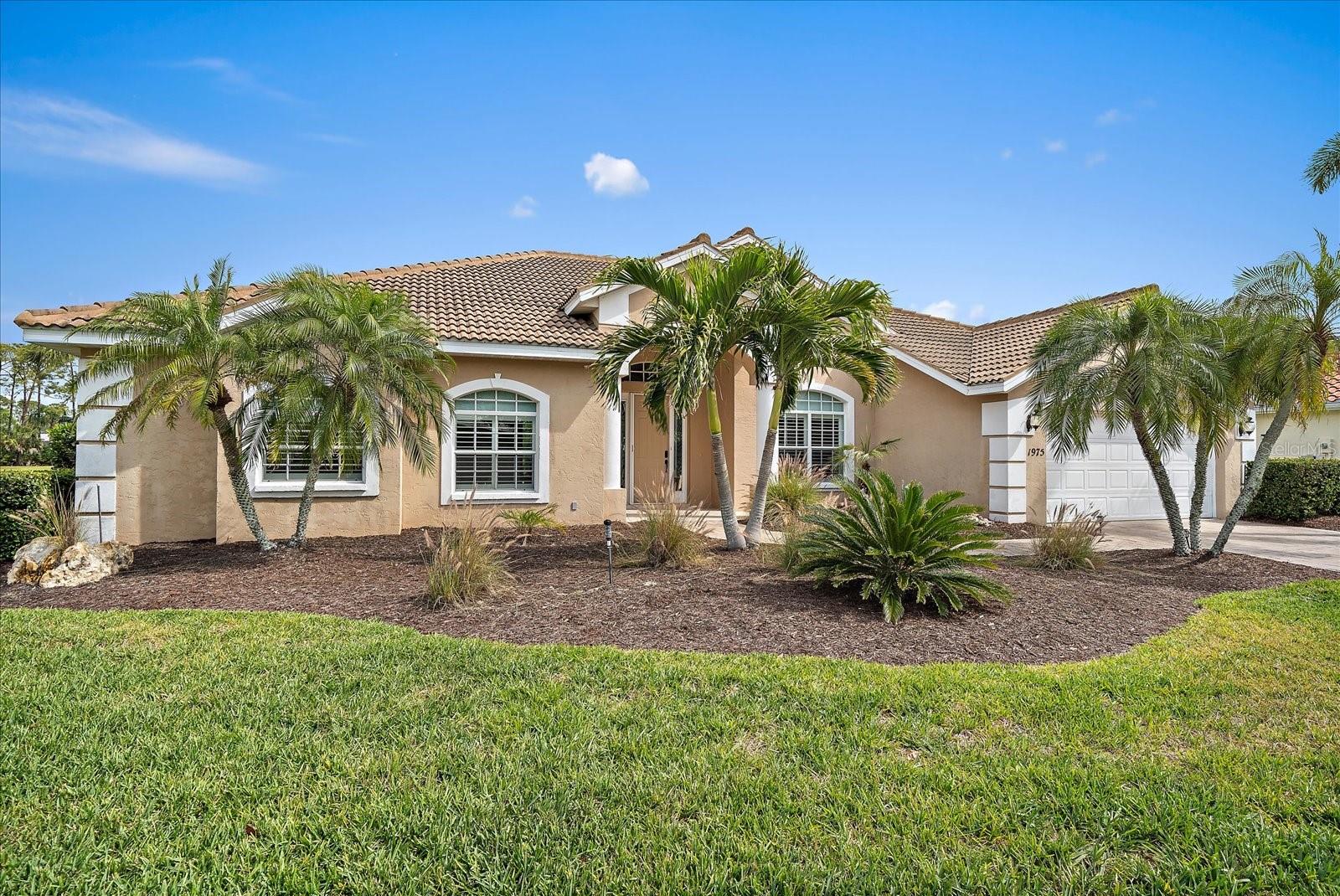 Welcome to 1975 White Feather Ln, a stunning, FURNISHED 4-bedroom, 2.5-bath, luxury home that exudes elegance and tranquility. Set on the 5th fairway of the renowned Calusa Lakes Golf Course, this home offers the perfect combination of breathtaking views and sophisticated living. Located within a private, gated community with a peaceful, park-like atmosphere, this residence is an absolute dream come true. Inside, the open-concept layout features high-end finishes and spacious living areas, creating an inviting space that’s perfect for both everyday living and entertaining. The upgraded kitchen is a delight and the seamless flow to the living and dining spaces offers a perfect backdrop for gatherings. Outside, enjoy your very own oasis with a sparkling saltwater pool and spa, all with picturesque golf course views. Just 12 minutes from the beach, this home offers an idyllic lifestyle, with easy access to coastal relaxation and the tranquility of your private retreat. Don’t miss the chance to own this exceptional property—where luxury, comfort, and location all come together in perfect harmony! The many upgrades featured in this beautiful home include the following: Newer roof installed in 2015, whole house replumbed in 2010, new HVAC system installed in 2019, new kitchen appliances in 2024, granite countertops in kitchen, updated garage door system and hardware, Dream Deck non-slip pool deck installed in 2017, solar heated pool pump system installed in 2018, Lanai Rescreened and Painted 2019, flooring updated with Luxury Vinyl Planks and Carpet, resurfaced pool, hurricane wind screens for added piece of mind, and epoxy coated garage flooring. Don't miss out on the opportunity to make this home yours! The community of Calusa Lakes in Nokomis, Florida is located between Venice and Sarasota, just Minutes from I-75 and convenient to all Services, Shopping, Restaurants, Boating and Beautiful Sandy Beaches. Including Siesta Key, Venice Beach and Nokomis Beach! - Sarasota County's oldest public beach! This area is known for its Stunning Beaches. Twin Waterfalls frame the front entrance to this pristinely gorgeous neighborhood adorned by lakes with water features throughout. Calusa Lakes is a great place to live, nestled in wooded terrain on a beautiful golf course in an environmentally aware Florida Friendly atmosphere. The Clubhouse has a Restaurant & bar and features an Aqua Range, Putting Green, Full Pro Shop, Rental Clubs, Electric and Pull carts. Life at Calusa Lakes offers residents a natural environment surrounded by pines and oaks along with indigenous natural surroundings in a tropical setting. The community features a Guard house, Gated Entry, Tennis courts, and an 18-hole regulation length Golf Course. Located just minutes from some of the world's best beaches of Nokomis, Venice and Siesta Key! Offering easy access to shopping, dining, and recreational activities, this home provides the ultimate in coastal living. Whether you're entertaining by the pool, playing a round of golf, or simply relaxing in this serene environment, this home is perfect to call your own. Twilight Photo virtually staged.
