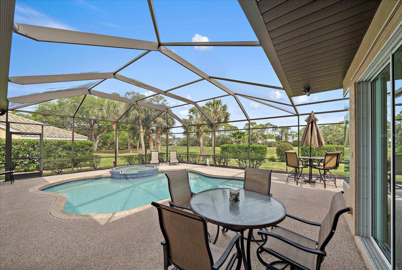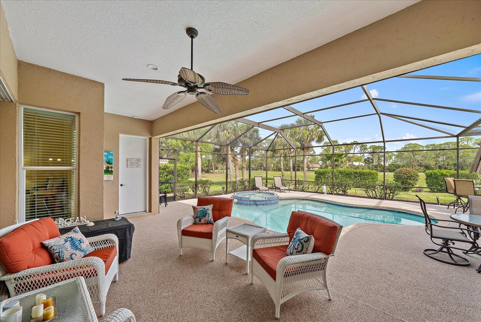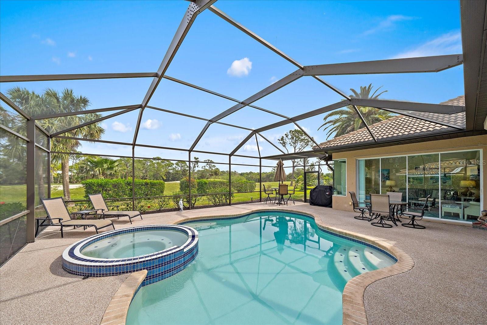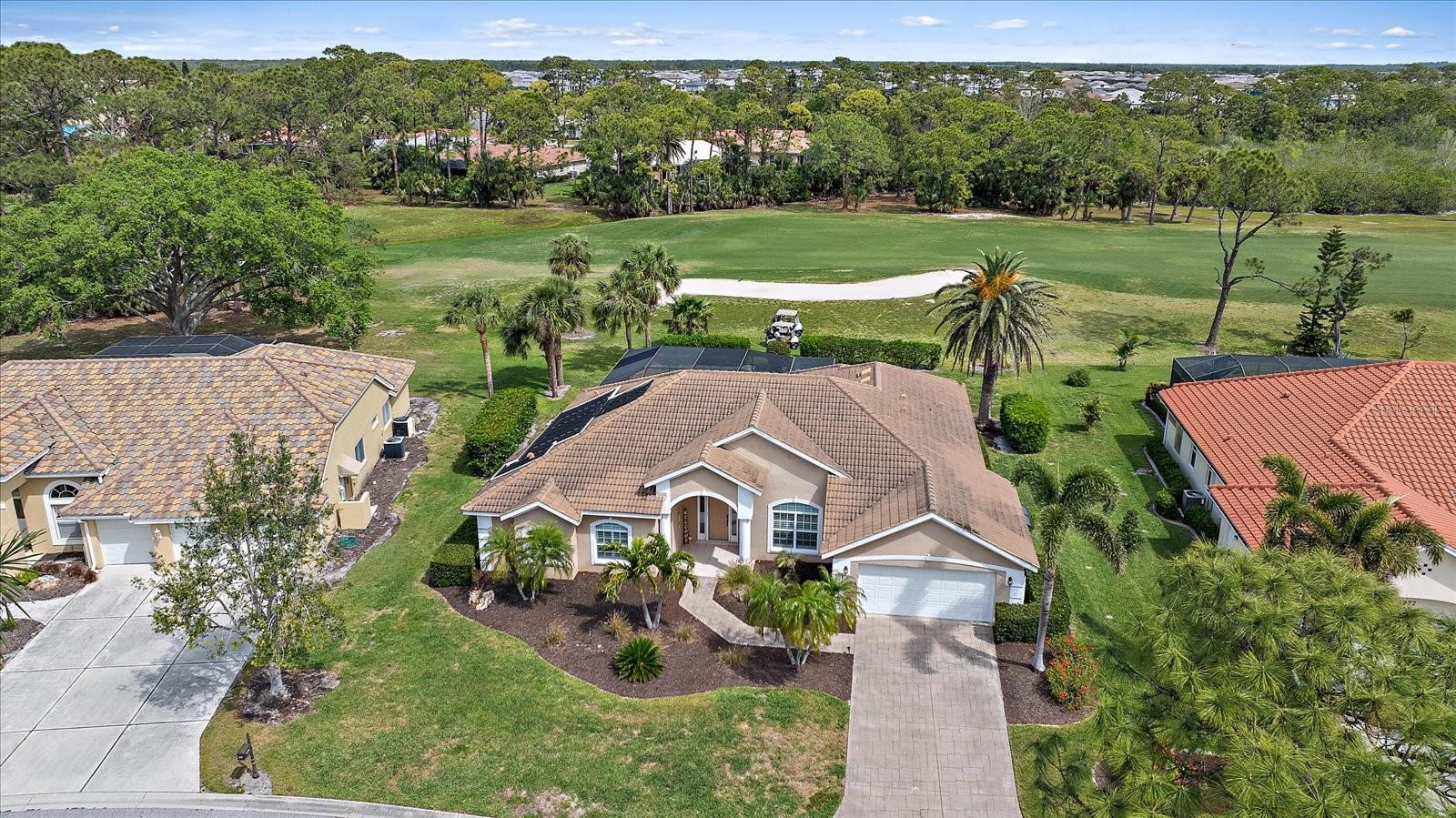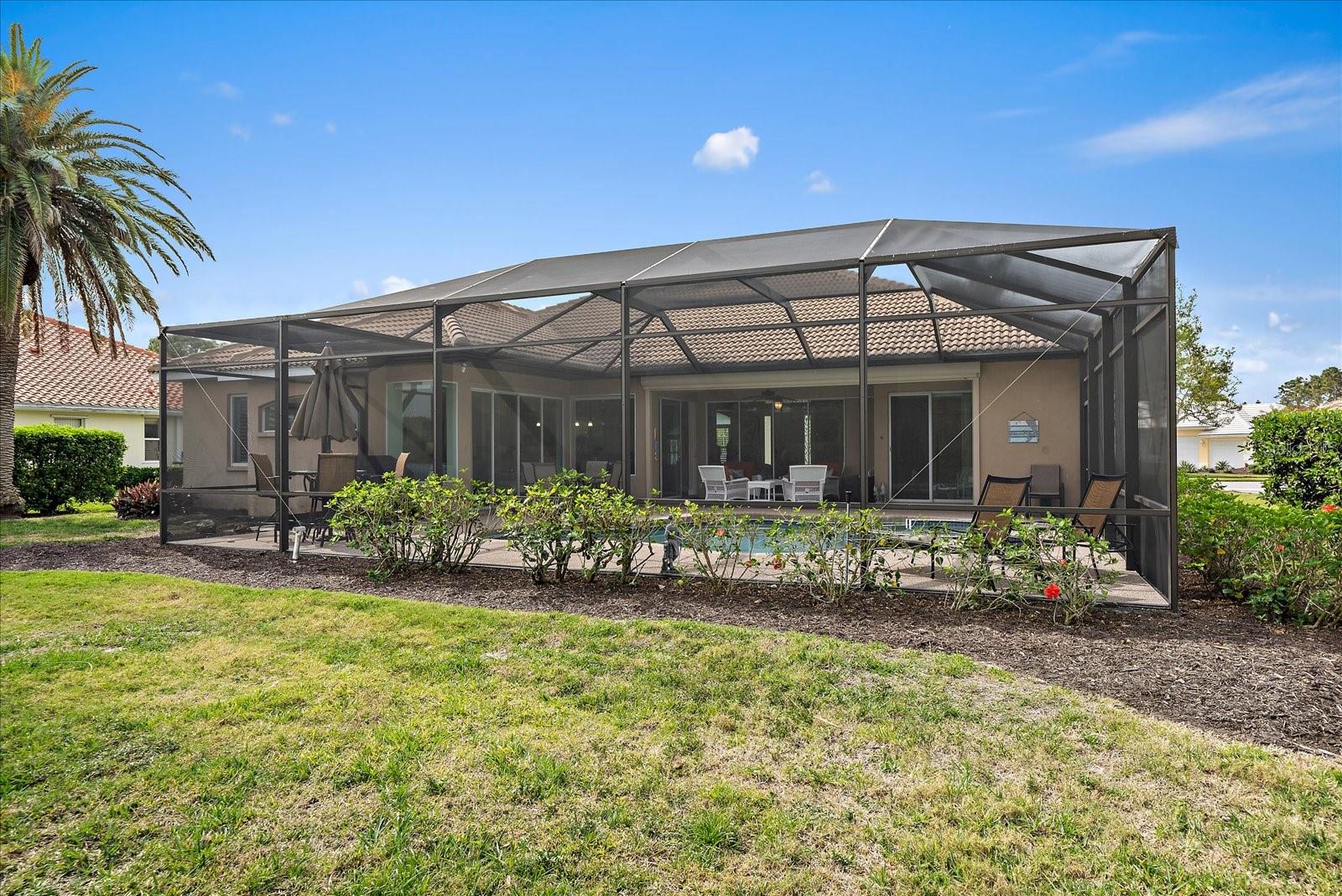 Welcome to 1975 White Feather Ln, a stunning, FURNISHED 4-bedroom, 2.5-bath, luxury home that exudes elegance and tranquility. Set on the 5th fairway of the renowned Calusa Lakes Golf Course, this home offers the perfect combination of breathtaking views and sophisticated living. Located within a private, gated community with a peaceful, park-like atmosphere, this residence is an absolute dream come true. Inside, the open-concept layout features high-end finishes and spacious living areas, creating an inviting space that’s perfect for both everyday living and entertaining. The upgraded kitchen is a delight and the seamless flow to the living and dining spaces offers a perfect backdrop for gatherings. Outside, enjoy your very own oasis with a sparkling saltwater pool and spa, all with picturesque golf course views. Just 12 minutes from the beach, this home offers an idyllic lifestyle, with easy access to coastal relaxation and the tranquility of your private retreat. Don’t miss the chance to own this exceptional property—where luxury, comfort, and location all come together in perfect harmony! The many upgrades featured in this beautiful home include the following: Newer roof installed in 2015, whole house replumbed in 2010, new HVAC system installed in 2019, new kitchen appliances in 2024, granite countertops in kitchen, updated garage door system and hardware, Dream Deck non-slip pool deck installed in 2017, solar heated pool pump system installed in 2018, Lanai Rescreened and Painted 2019, flooring updated with Luxury Vinyl Planks and Carpet, resurfaced pool, hurricane wind screens for added piece of mind, and epoxy coated garage flooring. Don't miss out on the opportunity to make this home yours! The community of Calusa Lakes in Nokomis, Florida is located between Venice and Sarasota, just Minutes from I-75 and convenient to all Services, Shopping, Restaurants, Boating and Beautiful Sandy Beaches. Including Siesta Key, Venice Beach and Nokomis Beach! - Sarasota County's oldest public beach! This area is known for its Stunning Beaches. Twin Waterfalls frame the front entrance to this pristinely gorgeous neighborhood adorned by lakes with water features throughout. Calusa Lakes is a great place to live, nestled in wooded terrain on a beautiful golf course in an environmentally aware Florida Friendly atmosphere. The Clubhouse has a Restaurant & bar and features an Aqua Range, Putting Green, Full Pro Shop, Rental Clubs, Electric and Pull carts. Life at Calusa Lakes offers residents a natural environment surrounded by pines and oaks along with indigenous natural surroundings in a tropical setting. The community features a Guard house, Gated Entry, Tennis courts, and an 18-hole regulation length Golf Course. Located just minutes from some of the world's best beaches of Nokomis, Venice and Siesta Key! Offering easy access to shopping, dining, and recreational activities, this home provides the ultimate in coastal living. Whether you're entertaining by the pool, playing a round of golf, or simply relaxing in this serene environment, this home is perfect to call your own. Twilight Photo virtually staged.