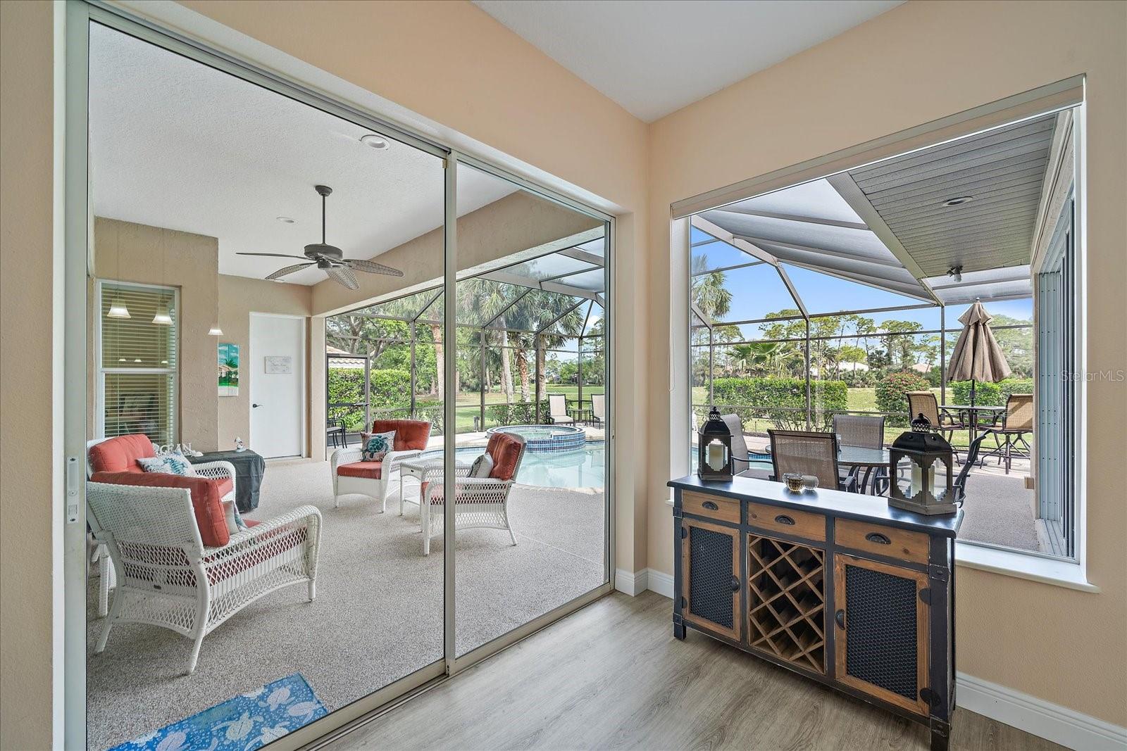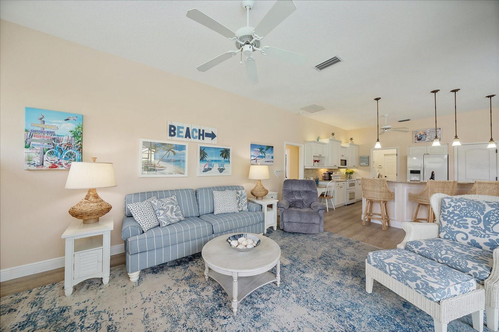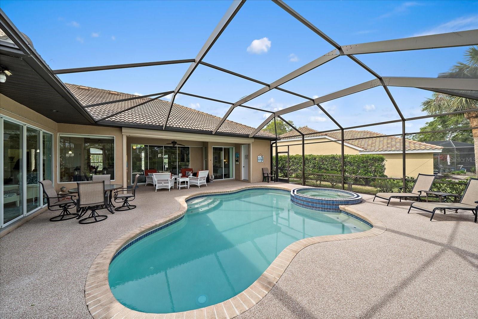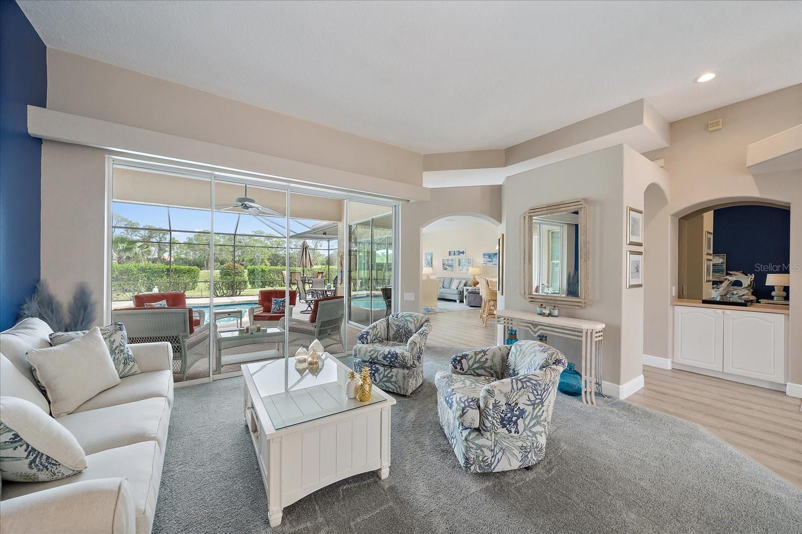 Welcome to 1975 White Feather Ln, a stunning, FURNISHED 4-bedroom, 2.5-bath, luxury home that exudes elegance and tranquility. Set on the 5th fairway of the renowned Calusa Lakes Golf Course, this home offers the perfect combination of breathtaking views and sophisticated living. Located within a private, gated community with a peaceful, park-like atmosphere, this residence is an absolute dream come true. Inside, the open-concept layout features high-end finishes and spacious living areas, creating an inviting space that’s perfect for both everyday living and entertaining. The upgraded kitchen is a delight and the seamless flow to the living and dining spaces offers a perfect backdrop for gatherings. Outside, enjoy your very own oasis with a sparkling saltwater pool and spa, all with picturesque golf course views. Just 12 minutes from the beach, this home offers an idyllic lifestyle, with easy access to coastal relaxation and the tranquility of your private retreat. Don’t miss the chance to own this exceptional property—where luxury, comfort, and location all come together in perfect harmony! The many upgrades featured in this beautiful home include the following: Newer roof installed in 2015, whole house replumbed in 2010, new HVAC system installed in 2019, new kitchen appliances in 2024, granite countertops in kitchen, updated garage door system and hardware, Dream Deck non-slip pool deck installed in 2017, solar heated pool pump system installed in 2018, Lanai Rescreened and Painted 2019, flooring updated with Luxury Vinyl Planks and Carpet, resurfaced pool, hurricane wind screens for added piece of mind, and epoxy coated garage flooring. Don't miss out on the opportunity to make this home yours! The community of Calusa Lakes in Nokomis, Florida is located between Venice and Sarasota, just Minutes from I-75 and convenient to all Services, Shopping, Restaurants, Boating and Beautiful Sandy Beaches. Including Siesta Key, Venice Beach and Nokomis Beach! - Sarasota County's oldest public beach! This area is known for its Stunning Beaches. Twin Waterfalls frame the front entrance to this pristinely gorgeous neighborhood adorned by lakes with water features throughout. Calusa Lakes is a great place to live, nestled in wooded terrain on a beautiful golf course in an environmentally aware Florida Friendly atmosphere. The Clubhouse has a Restaurant & bar and features an Aqua Range, Putting Green, Full Pro Shop, Rental Clubs, Electric and Pull carts. Life at Calusa Lakes offers residents a natural environment surrounded by pines and oaks along with indigenous natural surroundings in a tropical setting. The community features a Guard house, Gated Entry, Tennis courts, and an 18-hole regulation length Golf Course. Located just minutes from some of the world's best beaches of Nokomis, Venice and Siesta Key! Offering easy access to shopping, dining, and recreational activities, this home provides the ultimate in coastal living. Whether you're entertaining by the pool, playing a round of golf, or simply relaxing in this serene environment, this home is perfect to call your own. Twilight Photo virtually staged.
