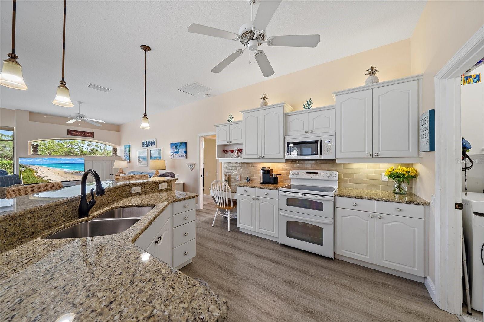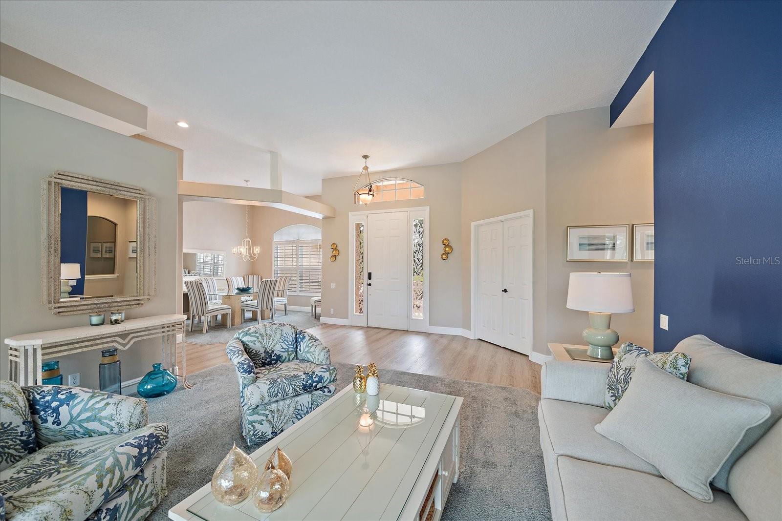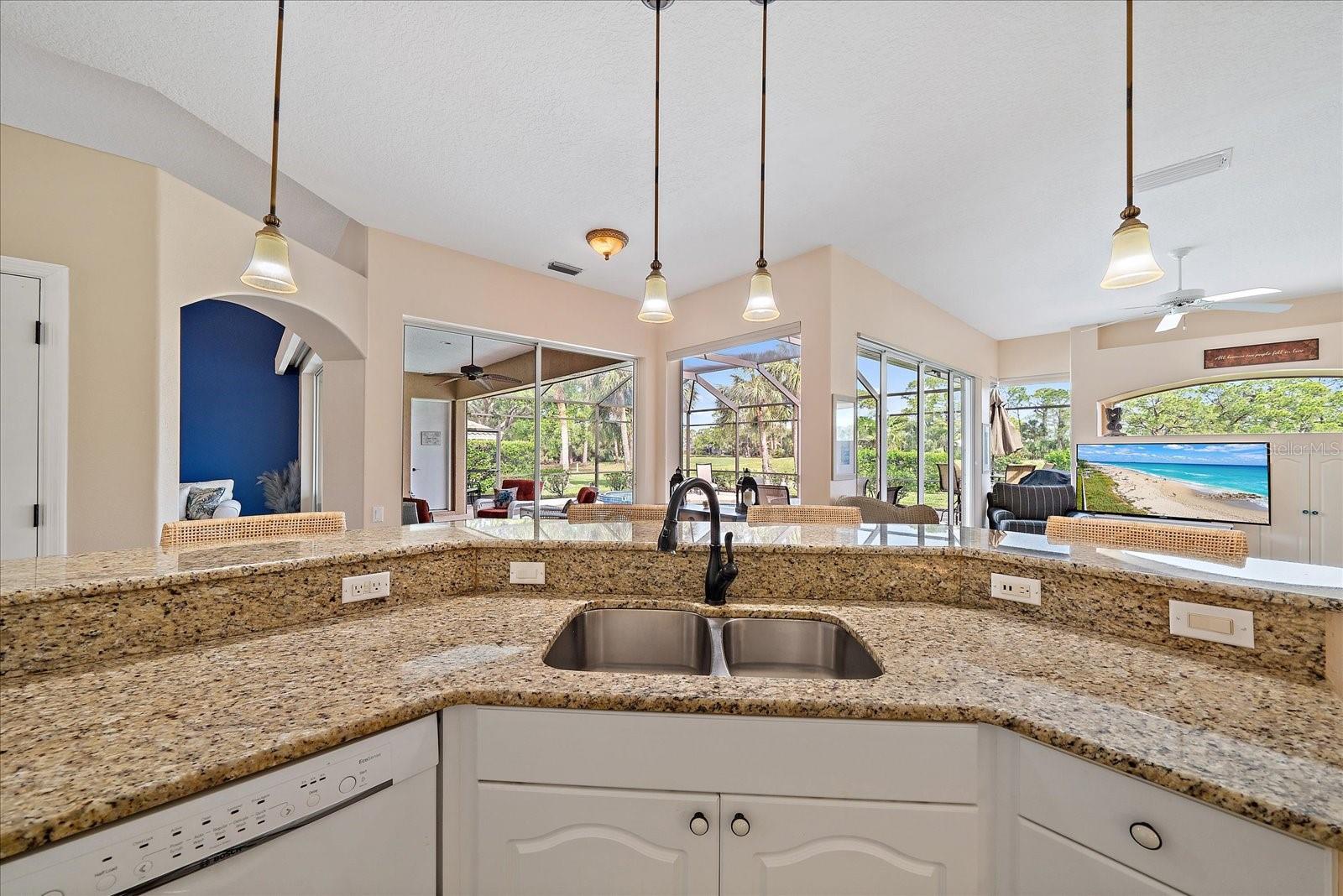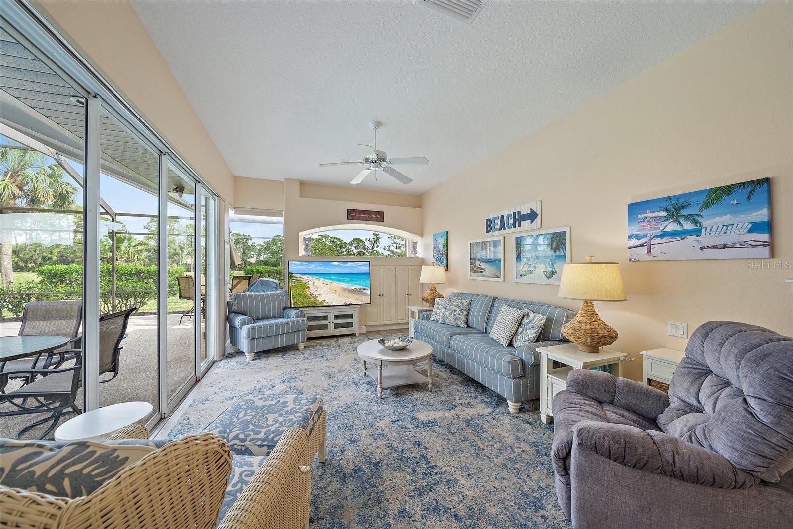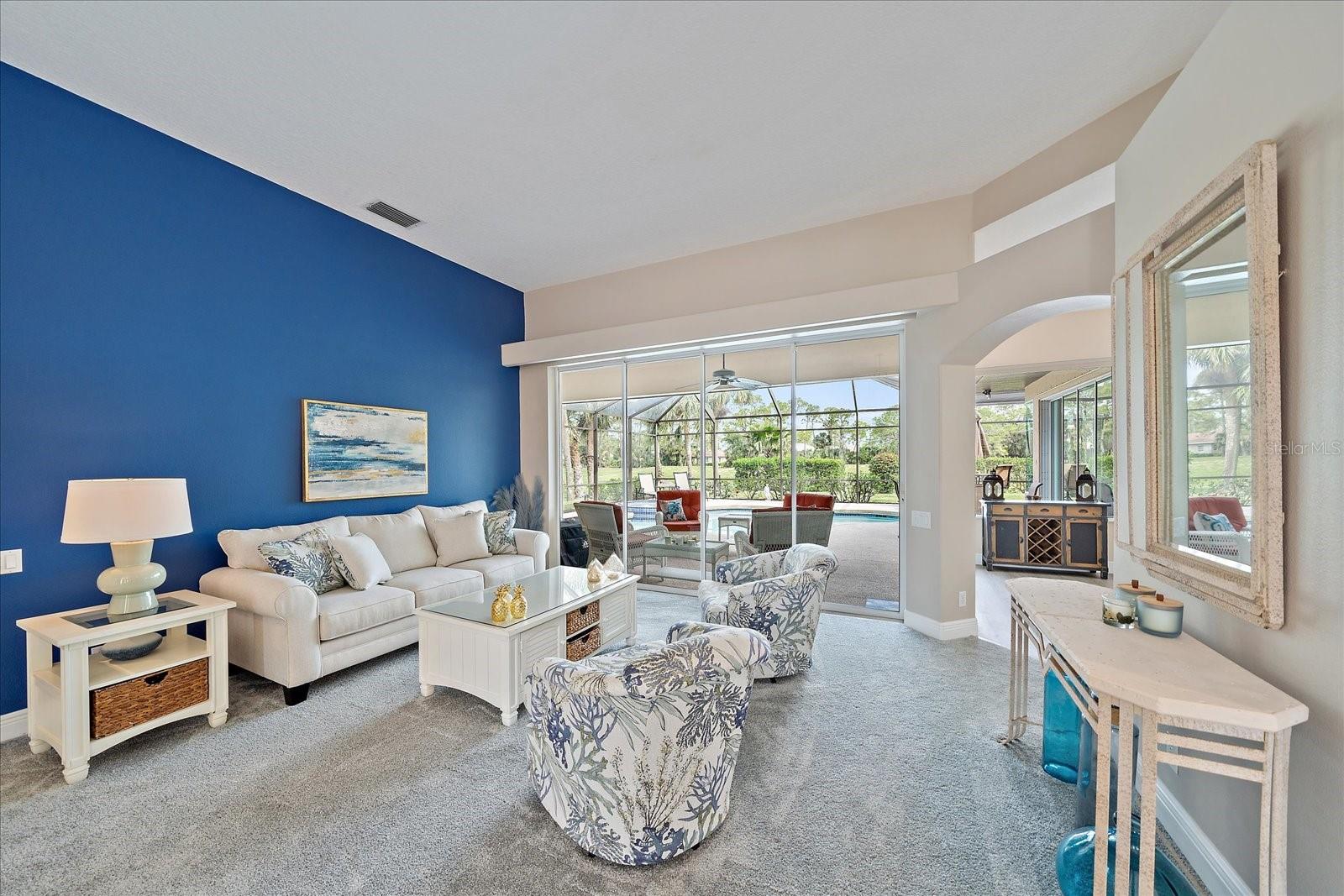 Welcome to 1975 White Feather Ln, a stunning, FURNISHED 4-bedroom, 2.5-bath, luxury home that exudes elegance and tranquility. Set on the 5th fairway of the renowned Calusa Lakes Golf Course, this home offers the perfect combination of breathtaking views and sophisticated living. Located within a private, gated community with a peaceful, park-like atmosphere, this residence is an absolute dream come true. Inside, the open-concept layout features high-end finishes and spacious living areas, creating an inviting space that’s perfect for both everyday living and entertaining. The upgraded kitchen is a delight and the seamless flow to the living and dining spaces offers a perfect backdrop for gatherings. Outside, enjoy your very own oasis with a sparkling saltwater pool and spa, all with picturesque golf course views. Just 12 minutes from the beach, this home offers an idyllic lifestyle, with easy access to coastal relaxation and the tranquility of your private retreat. Don’t miss the chance to own this exceptional property—where luxury, comfort, and location all come together in perfect harmony! The many upgrades featured in this beautiful home include the following: Newer roof installed in 2015, whole house replumbed in 2010, new HVAC system installed in 2019, new kitchen appliances in 2024, granite countertops in kitchen, updated garage door system and hardware, Dream Deck non-slip pool deck installed in 2017, solar heated pool pump system installed in 2018, Lanai Rescreened and Painted 2019, flooring updated with Luxury Vinyl Planks and Carpet, resurfaced pool, hurricane wind screens for added piece of mind, and epoxy coated garage flooring. Don't miss out on the opportunity to make this home yours! The community of Calusa Lakes in Nokomis, Florida is located between Venice and Sarasota, just Minutes from I-75 and convenient to all Services, Shopping, Restaurants, Boating and Beautiful Sandy Beaches. Including Siesta Key, Venice Beach and Nokomis Beach! - Sarasota County's oldest public beach! This area is known for its Stunning Beaches. Twin Waterfalls frame the front entrance to this pristinely gorgeous neighborhood adorned by lakes with water features throughout. Calusa Lakes is a great place to live, nestled in wooded terrain on a beautiful golf course in an environmentally aware Florida Friendly atmosphere. The Clubhouse has a Restaurant & bar and features an Aqua Range, Putting Green, Full Pro Shop, Rental Clubs, Electric and Pull carts. Life at Calusa Lakes offers residents a natural environment surrounded by pines and oaks along with indigenous natural surroundings in a tropical setting. The community features a Guard house, Gated Entry, Tennis courts, and an 18-hole regulation length Golf Course. Located just minutes from some of the world's best beaches of Nokomis, Venice and Siesta Key! Offering easy access to shopping, dining, and recreational activities, this home provides the ultimate in coastal living. Whether you're entertaining by the pool, playing a round of golf, or simply relaxing in this serene environment, this home is perfect to call your own. Twilight Photo virtually staged.