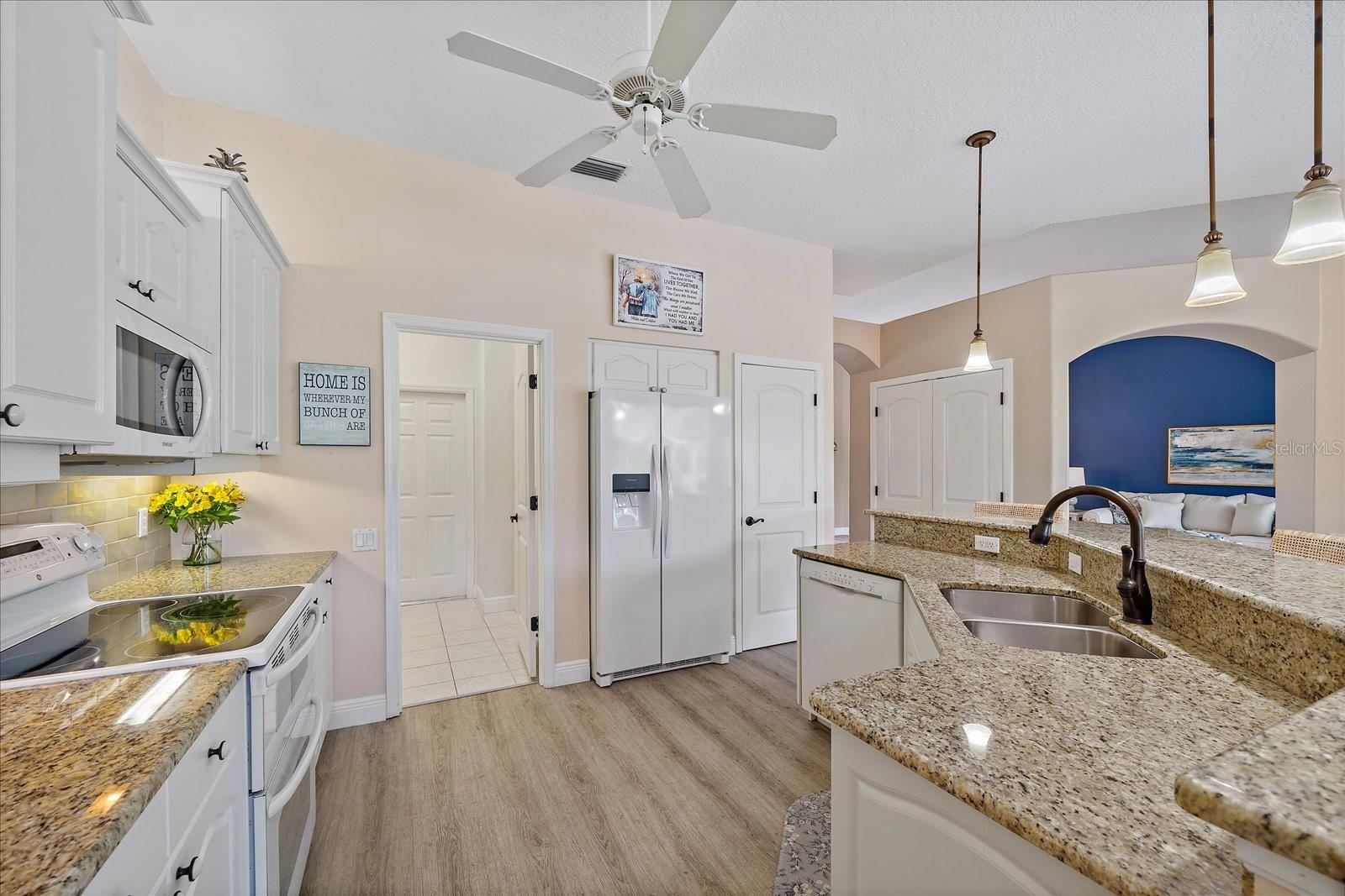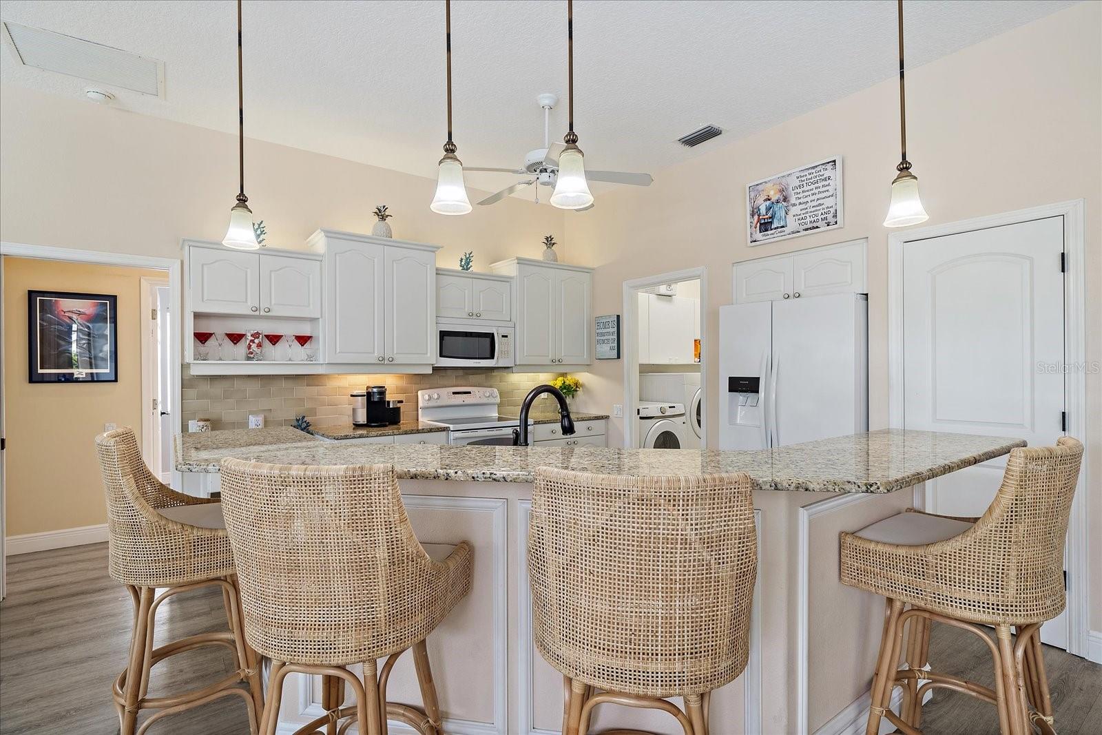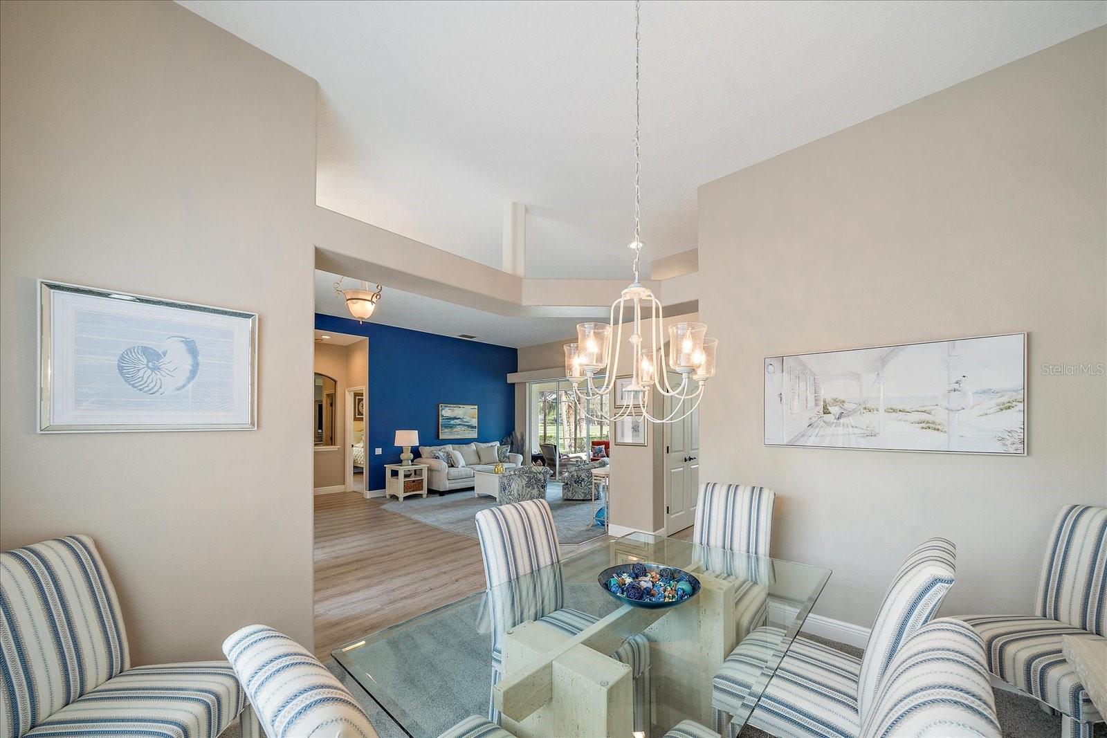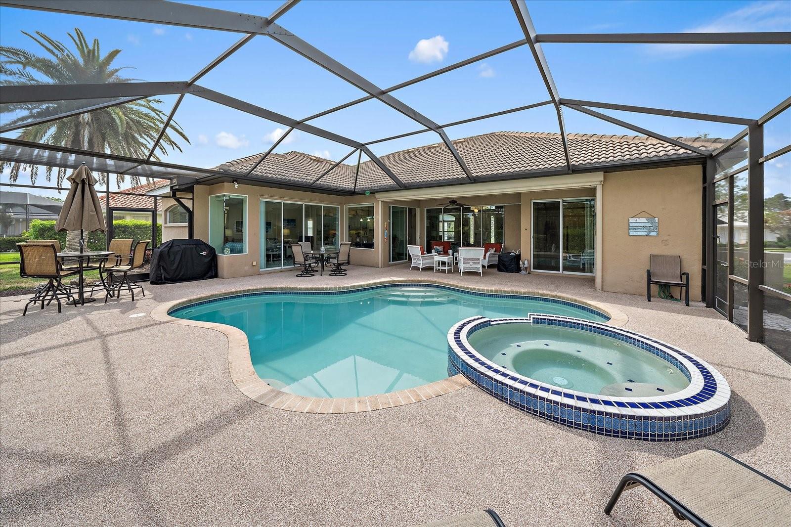 Welcome to 1975 White Feather Ln, a stunning, FURNISHED 4-bedroom, 2.5-bath, luxury home that exudes elegance and tranquility. Set on the 5th fairway of the renowned Calusa Lakes Golf Course, this home offers the perfect combination of breathtaking views and sophisticated living. Located within a private, gated community with a peaceful, park-like atmosphere, this residence is an absolute dream come true. Inside, the open-concept layout features high-end finishes and spacious living areas, creating an inviting space that’s perfect for both everyday living and entertaining. The upgraded kitchen is a delight and the seamless flow to the living and dining spaces offers a perfect backdrop for gatherings. Outside, enjoy your very own oasis with a sparkling saltwater pool and spa, all with picturesque golf course views. Just 12 minutes from the beach, this home offers an idyllic lifestyle, with easy access to coastal relaxation and the tranquility of your private retreat. Don’t miss the chance to own this exceptional property—where luxury, comfort, and location all come together in perfect harmony! The many upgrades featured in this beautiful home include the following: Newer roof installed in 2015, whole house replumbed in 2010, new HVAC system installed in 2019, new kitchen appliances in 2024, granite countertops in kitchen, updated garage door system and hardware, Dream Deck non-slip pool deck installed in 2017, solar heated pool pump system installed in 2018, Lanai Rescreened and Painted 2019, flooring updated with Luxury Vinyl Planks and Carpet, resurfaced pool, hurricane wind screens for added piece of mind, and epoxy coated garage flooring. Don't miss out on the opportunity to make this home yours! The community of Calusa Lakes in Nokomis, Florida is located between Venice and Sarasota, just Minutes from I-75 and convenient to all Services, Shopping, Restaurants, Boating and Beautiful Sandy Beaches. Including Siesta Key, Venice Beach and Nokomis Beach! - Sarasota County's oldest public beach! This area is known for its Stunning Beaches. Twin Waterfalls frame the front entrance to this pristinely gorgeous neighborhood adorned by lakes with water features throughout. Calusa Lakes is a great place to live, nestled in wooded terrain on a beautiful golf course in an environmentally aware Florida Friendly atmosphere. The Clubhouse has a Restaurant & bar and features an Aqua Range, Putting Green, Full Pro Shop, Rental Clubs, Electric and Pull carts. Life at Calusa Lakes offers residents a natural environment surrounded by pines and oaks along with indigenous natural surroundings in a tropical setting. The community features a Guard house, Gated Entry, Tennis courts, and an 18-hole regulation length Golf Course. Located just minutes from some of the world's best beaches of Nokomis, Venice and Siesta Key! Offering easy access to shopping, dining, and recreational activities, this home provides the ultimate in coastal living. Whether you're entertaining by the pool, playing a round of golf, or simply relaxing in this serene environment, this home is perfect to call your own. Twilight Photo virtually staged.