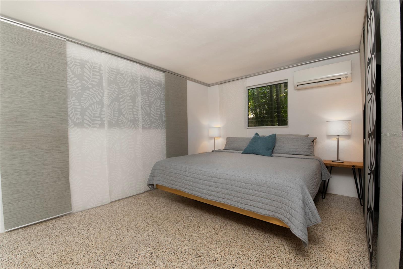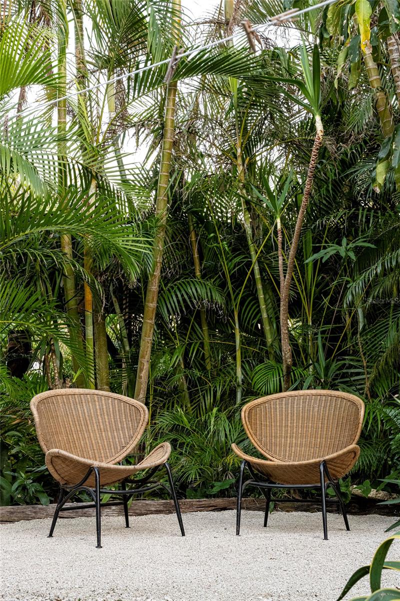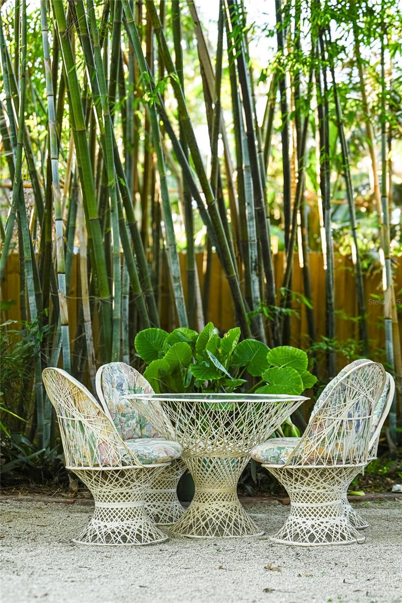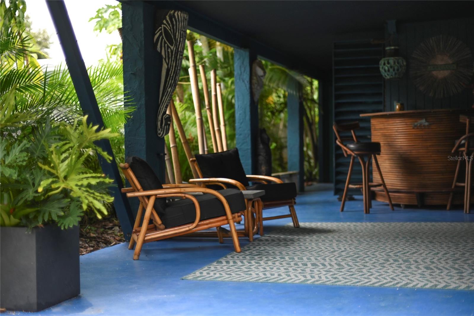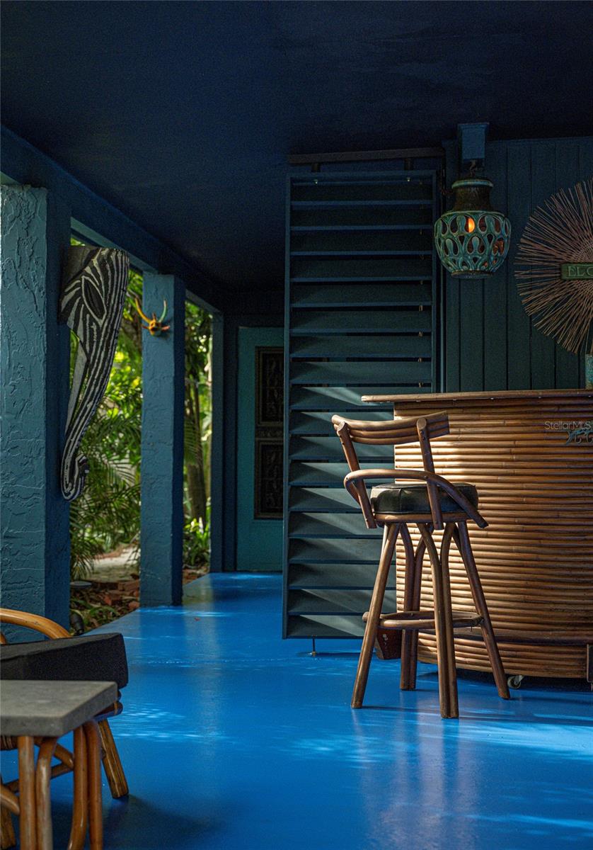 Craving something different? Ignite your bohemian muse in this midcentury modern jungalow, a five-minute bicycle ride over the bridge to the most beautiful beaches in Sarasota County. Located West of Tamiami Trail in the tranquil neighborhood of Baypoint, this non-HOA community is a well-kept gem of multimillion dollar waterfront and Old Florida-style homes. Built in 1958, this atomic ranch features original terrazzo floors, working jalousie windows, and a classic, cantilevered carport. Updates include a brand-new metal and TPO roof, an energy efficient mini-split system, modern IKEA kitchen with quartz countertops, and a zen-styled bathroom with handcrafted concrete vanity and Japanese ofuro soaking tub. Presently the home is configured with two bedrooms and one bath under air, but the possibility exists to easily reconvert the storage room back into a bedroom and add a second bath, restoring the original 3/2 footprint that is on the property tax records. An enormous sunroom could also be enclosed for four-season living. Woodworkers and artists will appreciate the additional workspace off of the back patio. The carport tiki lounge is a favorite place to kick back with a book and morning coffee, or invite your friends over for a Mai Tai. Revel in your own botanical jungle, through meandering pathways shaded by mature oak trees, blue bamboo, and thousands of dollars of tropical landscaping. After taking a morning beach yoga class and a dip in the Gulf, return to the private, enclosed, backyard shower. Within strolling distance of the home are two, small, waterfront parks where you can launch a paddle board or kayak. No wind damage or flooding at this property from any hurricane, ever! In short, bring your bathing suit and cocktail glasses and start living your best life here.