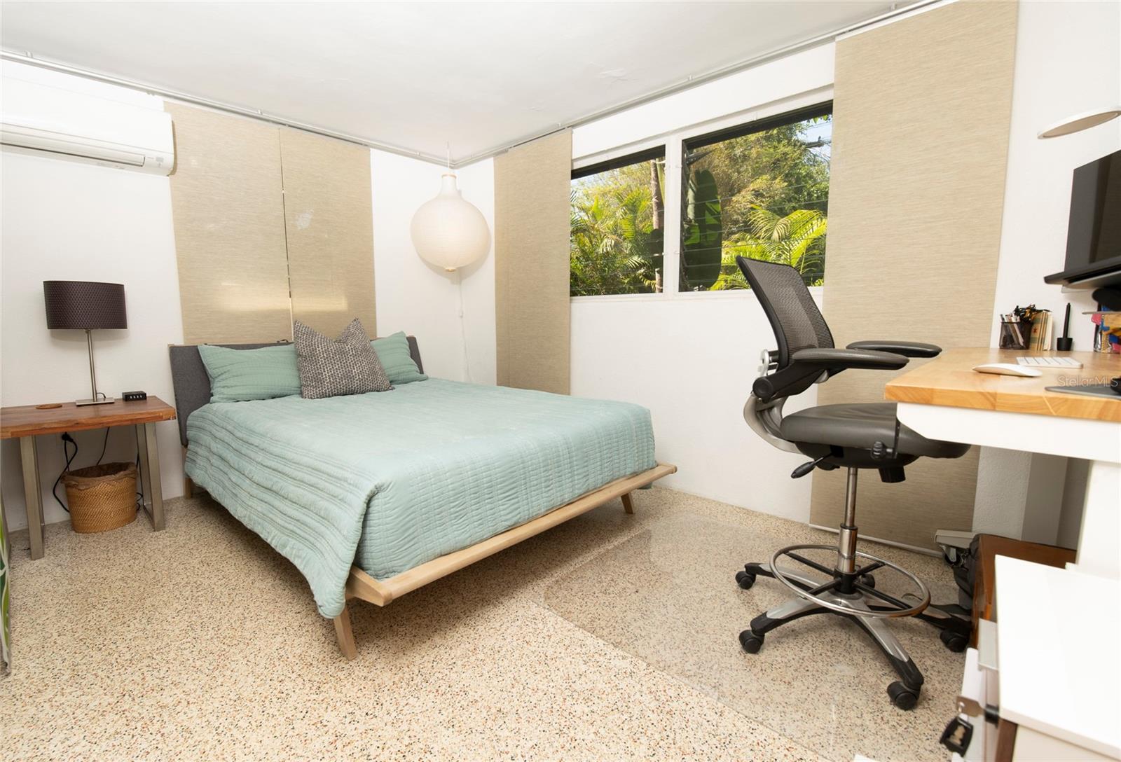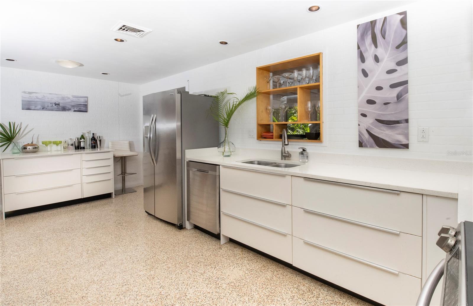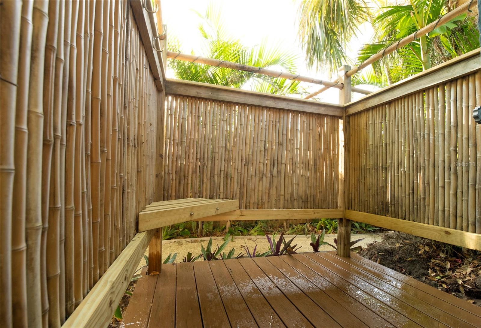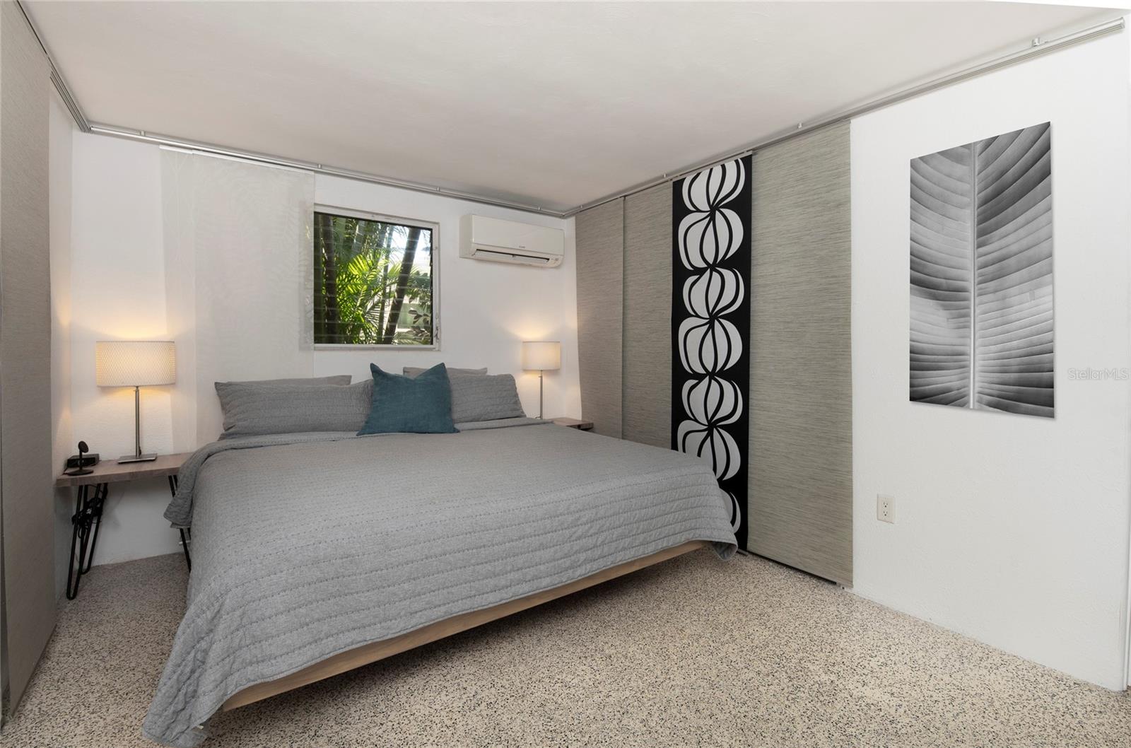Craving something different? Ignite your bohemian muse in this midcentury modern jungalow, a five-minute bicycle ride over the bridge to the most beautiful beaches in Sarasota County. Located West of Tamiami Trail in the tranquil neighborhood of Baypoint, this non-HOA community is a well-kept gem of multimillion dollar waterfront and Old Florida-style homes. Built in 1958, this atomic ranch features original terrazzo floors, working jalousie windows, and a classic, cantilevered carport. Updates include a brand-new metal and TPO roof, an energy efficient mini-split system, modern IKEA kitchen with quartz countertops, and a zen-styled bathroom with handcrafted concrete vanity and Japanese ofuro soaking tub. Presently the home is configured with two bedrooms and one bath under air, but the possibility exists to easily reconvert the storage room back into a bedroom and add a second bath, restoring the original 3/2 footprint that is on the property tax records. An enormous sunroom could also be enclosed for four-season living. Woodworkers and artists will appreciate the additional workspace off of the back patio. The carport tiki lounge is a favorite place to kick back with a book and morning coffee, or invite your friends over for a Mai Tai. Revel in your own botanical jungle, through meandering pathways shaded by mature oak trees, blue bamboo, and thousands of dollars of tropical landscaping. After taking a morning beach yoga class and a dip in the Gulf, return to the private, enclosed, backyard shower. Within strolling distance of the home are two, small, waterfront parks where you can launch a paddle board or kayak. No wind damage or flooding at this property from any hurricane, ever! In short, bring your bathing suit and cocktail glasses and start living your best life here.