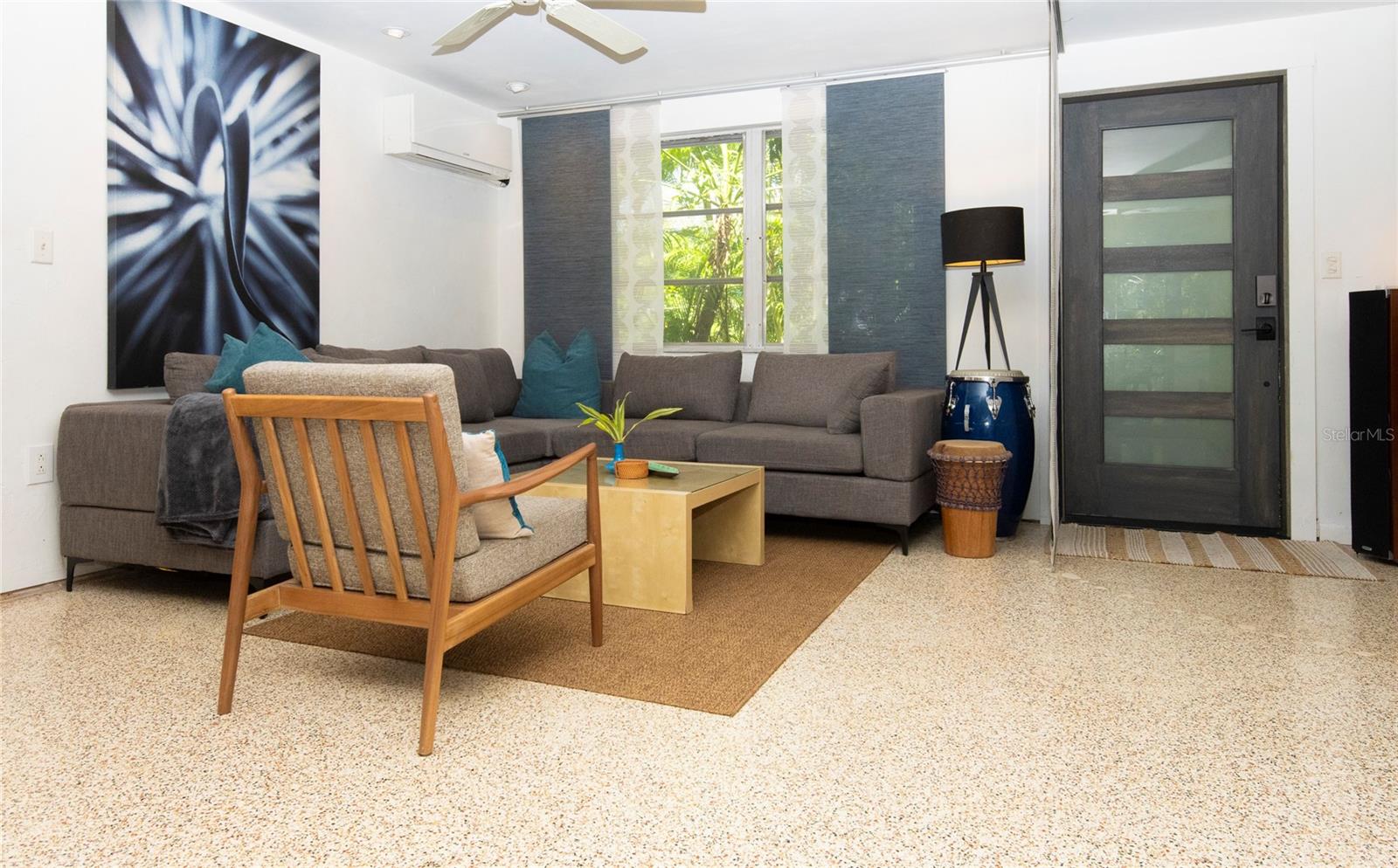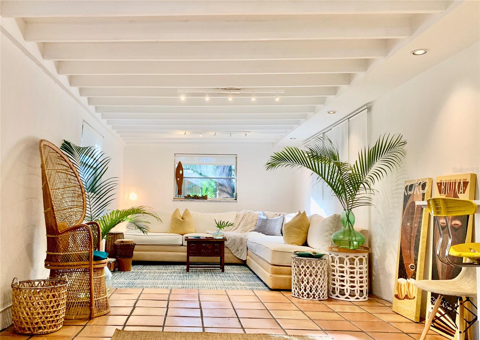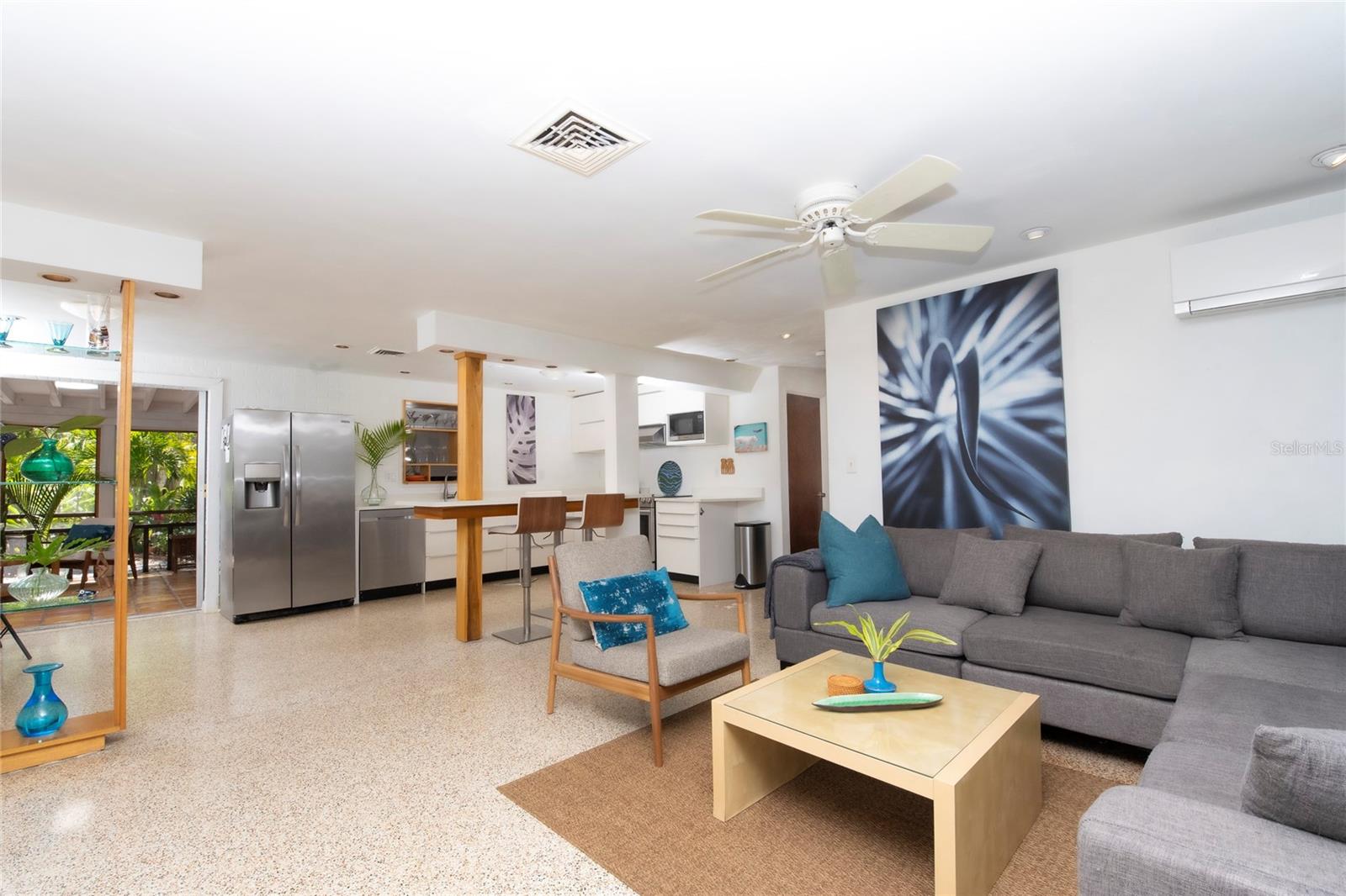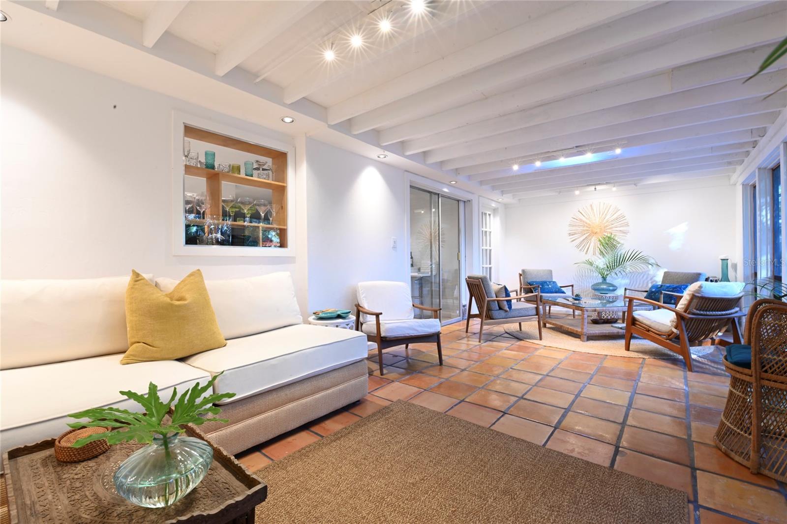 Craving something different? Ignite your bohemian muse in this midcentury modern jungalow, a five-minute bicycle ride over the bridge to the most beautiful beaches in Sarasota County. Located West of Tamiami Trail in the tranquil neighborhood of Baypoint, this non-HOA community is a well-kept gem of multimillion dollar waterfront and Old Florida-style homes. Built in 1958, this atomic ranch features original terrazzo floors, working jalousie windows, and a classic, cantilevered carport. Updates include a brand-new metal and TPO roof, an energy efficient mini-split system, modern IKEA kitchen with quartz countertops, and a zen-styled bathroom with handcrafted concrete vanity and Japanese ofuro soaking tub. Presently the home is configured with two bedrooms and one bath under air, but the possibility exists to easily reconvert the storage room back into a bedroom and add a second bath, restoring the original 3/2 footprint that is on the property tax records. An enormous sunroom could also be enclosed for four-season living. Woodworkers and artists will appreciate the additional workspace off of the back patio. The carport tiki lounge is a favorite place to kick back with a book and morning coffee, or invite your friends over for a Mai Tai. Revel in your own botanical jungle, through meandering pathways shaded by mature oak trees, blue bamboo, and thousands of dollars of tropical landscaping. After taking a morning beach yoga class and a dip in the Gulf, return to the private, enclosed, backyard shower. Within strolling distance of the home are two, small, waterfront parks where you can launch a paddle board or kayak. No wind damage or flooding at this property from any hurricane, ever! In short, bring your bathing suit and cocktail glasses and start living your best life here.