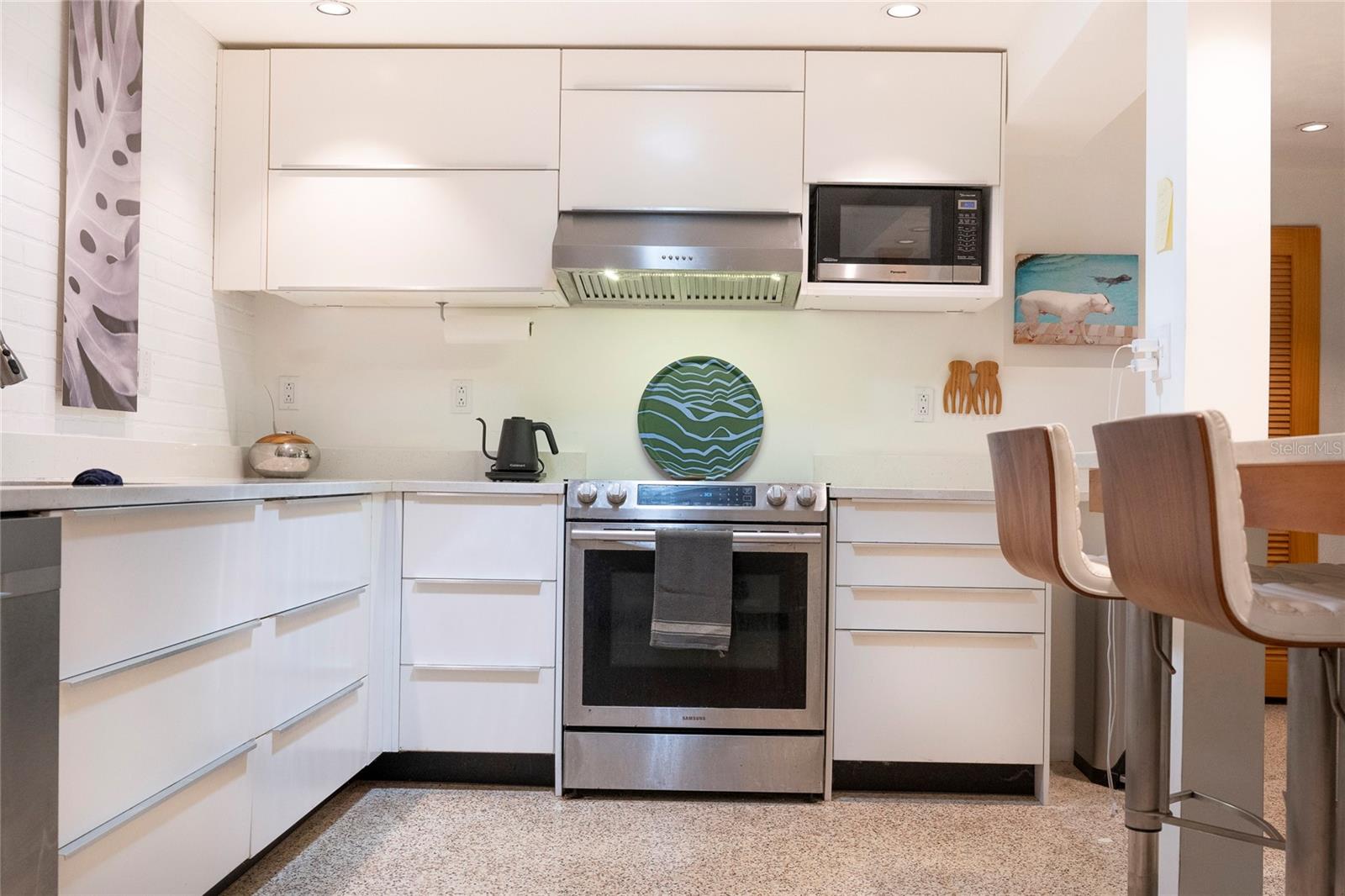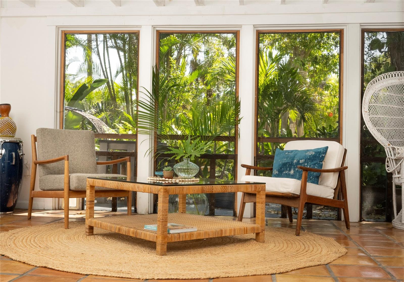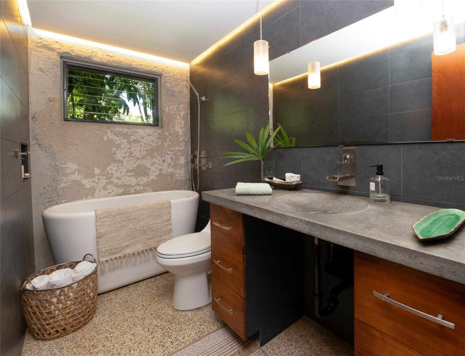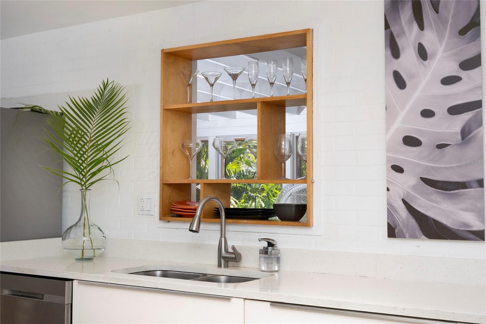 Craving something different? Ignite your bohemian muse in this midcentury modern jungalow, a five-minute bicycle ride over the bridge to the most beautiful beaches in Sarasota County. Located West of Tamiami Trail in the tranquil neighborhood of Baypoint, this non-HOA community is a well-kept gem of multimillion dollar waterfront and Old Florida-style homes. Built in 1958, this atomic ranch features original terrazzo floors, working jalousie windows, and a classic, cantilevered carport. Updates include a brand-new metal and TPO roof, an energy efficient mini-split system, modern IKEA kitchen with quartz countertops, and a zen-styled bathroom with handcrafted concrete vanity and Japanese ofuro soaking tub. Presently the home is configured with two bedrooms and one bath under air, but the possibility exists to easily reconvert the storage room back into a bedroom and add a second bath, restoring the original 3/2 footprint that is on the property tax records. An enormous sunroom could also be enclosed for four-season living. Woodworkers and artists will appreciate the additional workspace off of the back patio. The carport tiki lounge is a favorite place to kick back with a book and morning coffee, or invite your friends over for a Mai Tai. Revel in your own botanical jungle, through meandering pathways shaded by mature oak trees, blue bamboo, and thousands of dollars of tropical landscaping. After taking a morning beach yoga class and a dip in the Gulf, return to the private, enclosed, backyard shower. Within strolling distance of the home are two, small, waterfront parks where you can launch a paddle board or kayak. No wind damage or flooding at this property from any hurricane, ever! In short, bring your bathing suit and cocktail glasses and start living your best life here.