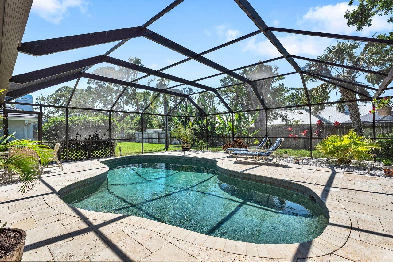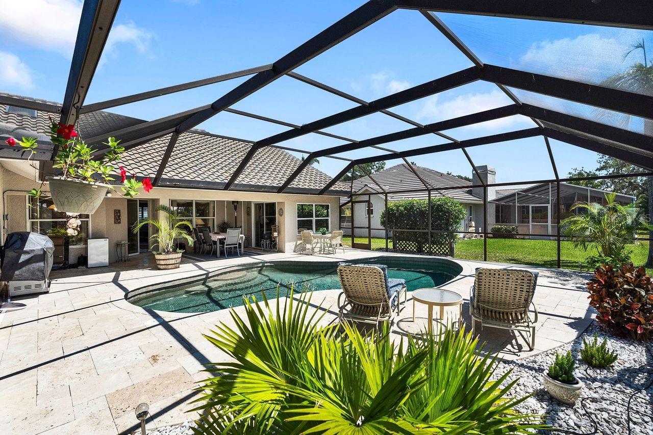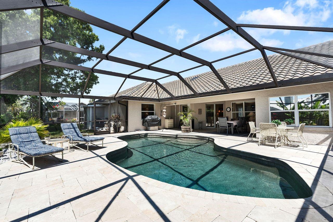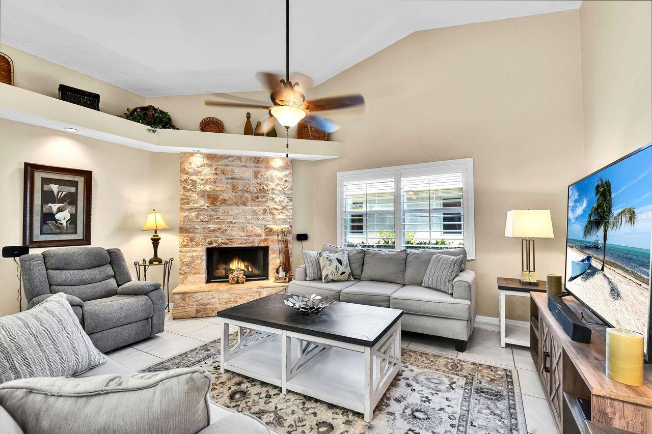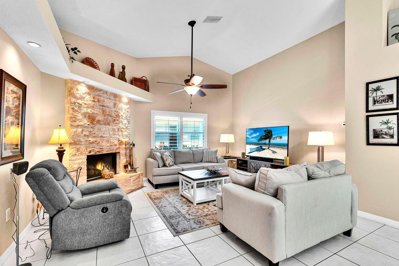 Now available in the desirable community of Laurel Woodlands is a custom 3-bedroom, 2-bathroom furnished pool home with over 2000 square feet of beautiful living space. The pleasing curb appeal and entry welcome you into the foyer where you’ll experience an instant feeling of spaciousness with skylights and lofty cathedral ceilings. Enjoy the benefit of a flexible floor plan with multiple living and dining spaces to suit your lifestyle. The gorgeous natural stone fireplace is the highlight of the family room and within view of the large open kitchen. The generous kitchen island accommodates many and prep space and cabinetry are plentiful. Updated stainless appliances and a breakfast nook with views out to the lanai serves chefs and guests well. A formal dining room supports more upscale occasions and the separate living room provides yet another gathering space. French doors lead to a dedicated office with convenient built-ins for organized storage. An impressive primary suite not only has a bathroom with soaking tub and shower but a separate sitting area overlooking the lanai for enjoying morning coffee or quiet afternoons with a good book. There's room for guests plus privacy with the split bedroom plan and two well-appointed bedrooms both with walk in closets. Step outside to your own private and peaceful paradise with lush tropical landscaping in the sizeable backyard. The main event here is your sparkling heated pool with covered outdoor entertaining area, direct access to the hall bathroom, classic travertine pool deck and large screened lanai cage installed in 2022. Other important updates include garage door, irrigation control panel and well pump, refrigerator, AC system, pool filter and pump plus in 2022 a new tile roof. This quiet neighborhood has a fantastic location with access to several area beaches, waterfront dining, quaint downtown Venice shopping, good schools, quality medical services and I-75. Schedule a private showing to see this incredible property!