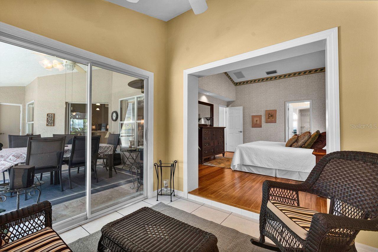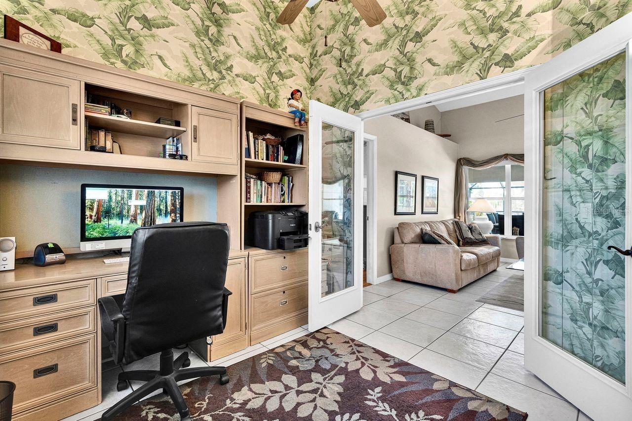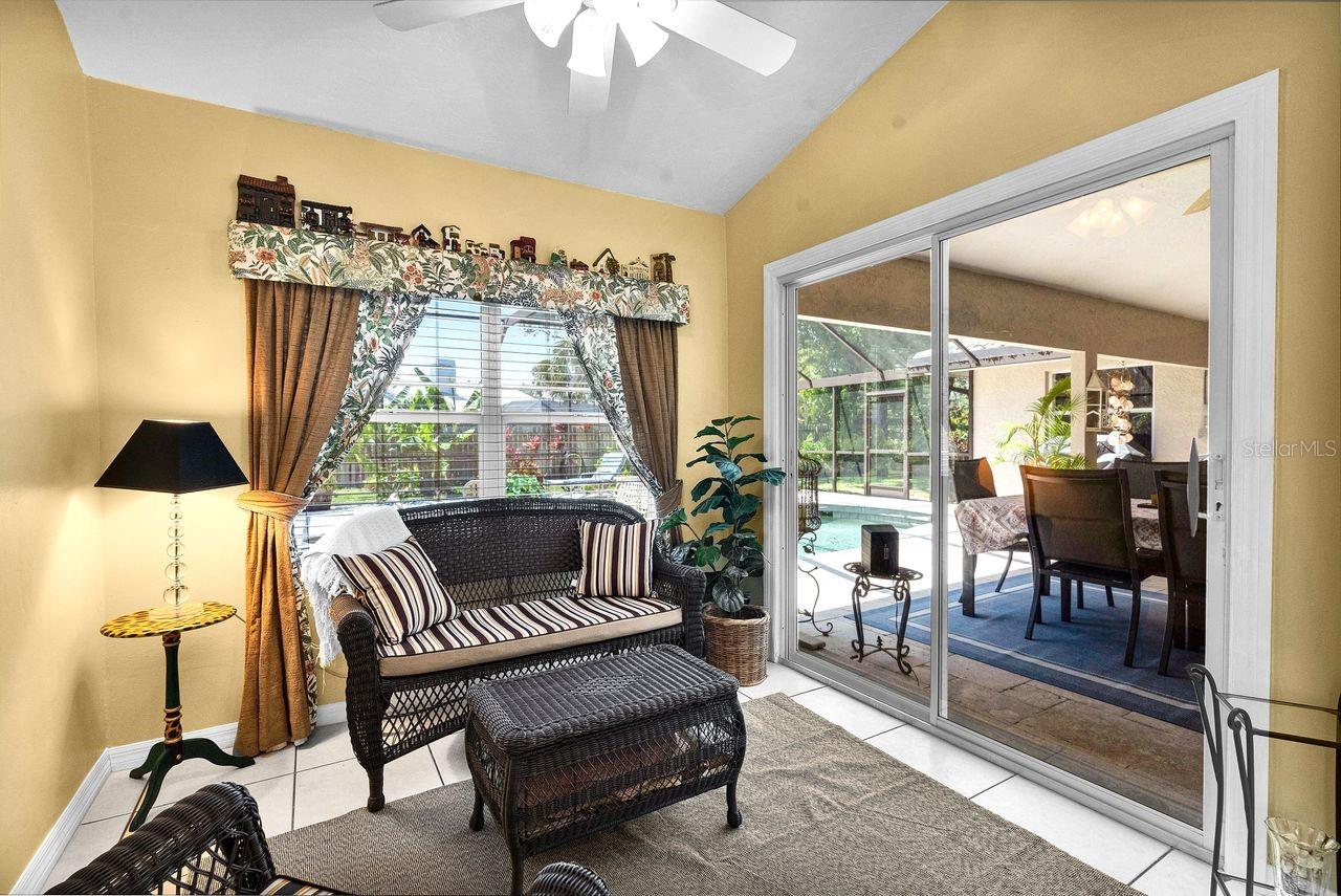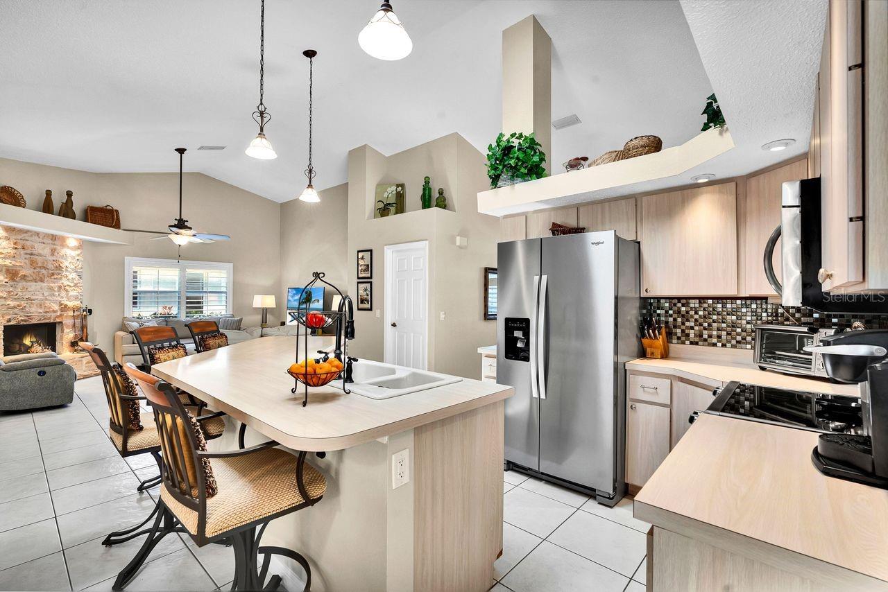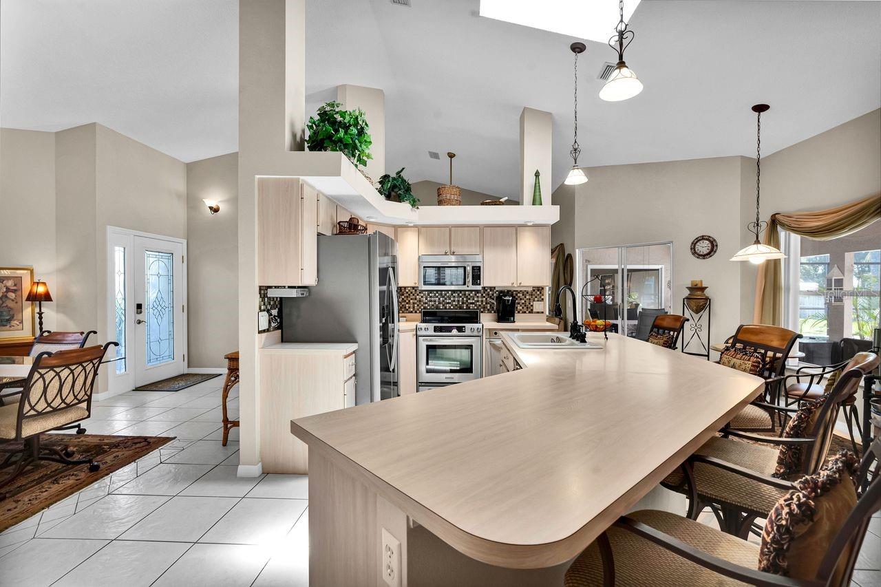 Now available in the desirable community of Laurel Woodlands is a custom 3-bedroom, 2-bathroom furnished pool home with over 2000 square feet of beautiful living space. The pleasing curb appeal and entry welcome you into the foyer where you’ll experience an instant feeling of spaciousness with skylights and lofty cathedral ceilings. Enjoy the benefit of a flexible floor plan with multiple living and dining spaces to suit your lifestyle. The gorgeous natural stone fireplace is the highlight of the family room and within view of the large open kitchen. The generous kitchen island accommodates many and prep space and cabinetry are plentiful. Updated stainless appliances and a breakfast nook with views out to the lanai serves chefs and guests well. A formal dining room supports more upscale occasions and the separate living room provides yet another gathering space. French doors lead to a dedicated office with convenient built-ins for organized storage. An impressive primary suite not only has a bathroom with soaking tub and shower but a separate sitting area overlooking the lanai for enjoying morning coffee or quiet afternoons with a good book. There's room for guests plus privacy with the split bedroom plan and two well-appointed bedrooms both with walk in closets. Step outside to your own private and peaceful paradise with lush tropical landscaping in the sizeable backyard. The main event here is your sparkling heated pool with covered outdoor entertaining area, direct access to the hall bathroom, classic travertine pool deck and large screened lanai cage installed in 2022. Other important updates include garage door, irrigation control panel and well pump, refrigerator, AC system, pool filter and pump plus in 2022 a new tile roof. This quiet neighborhood has a fantastic location with access to several area beaches, waterfront dining, quaint downtown Venice shopping, good schools, quality medical services and I-75. Schedule a private showing to see this incredible property!