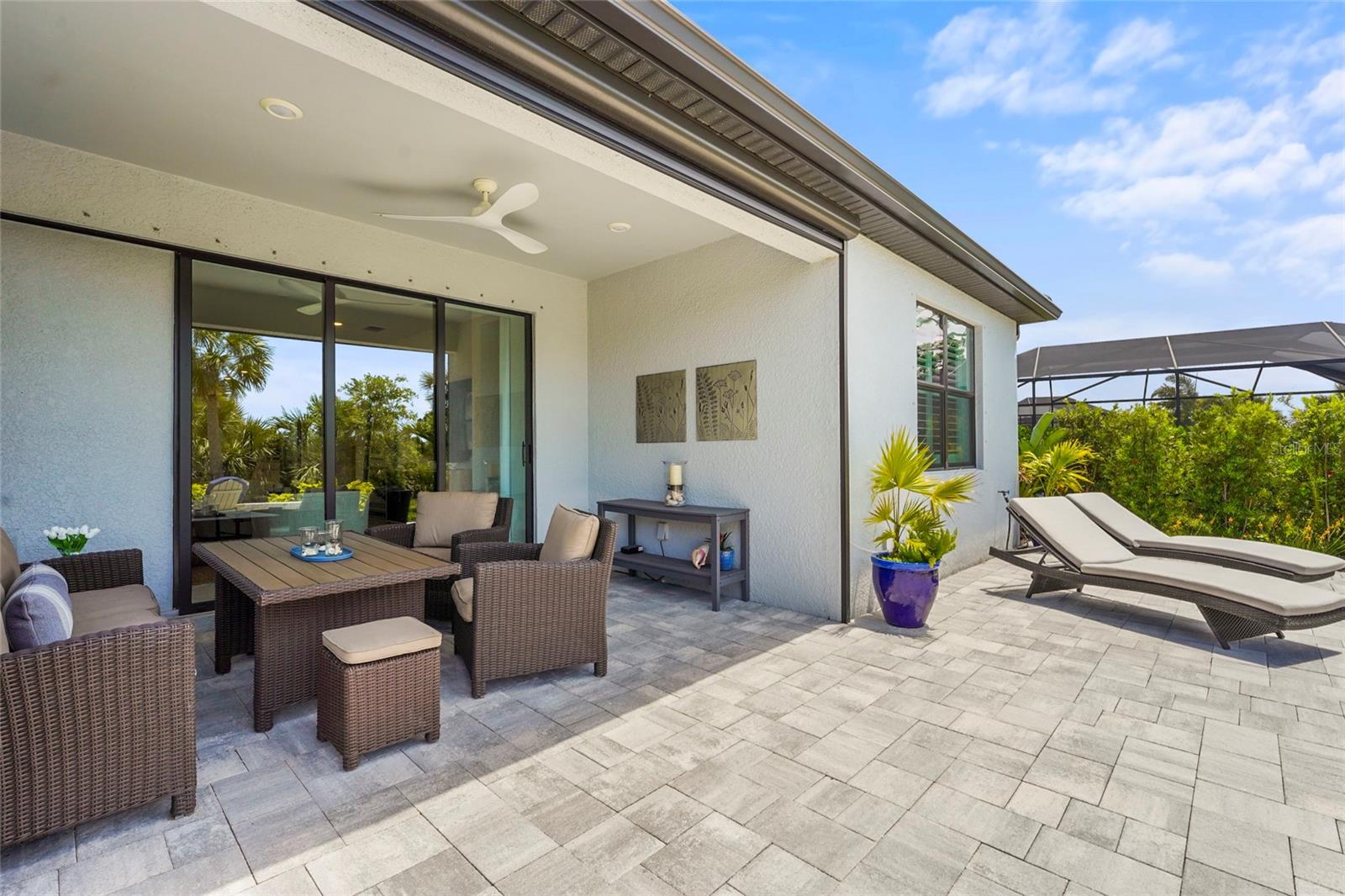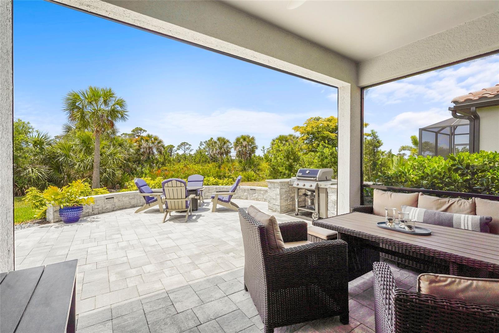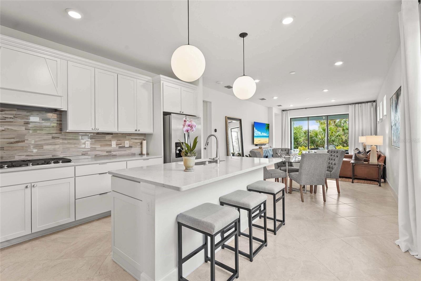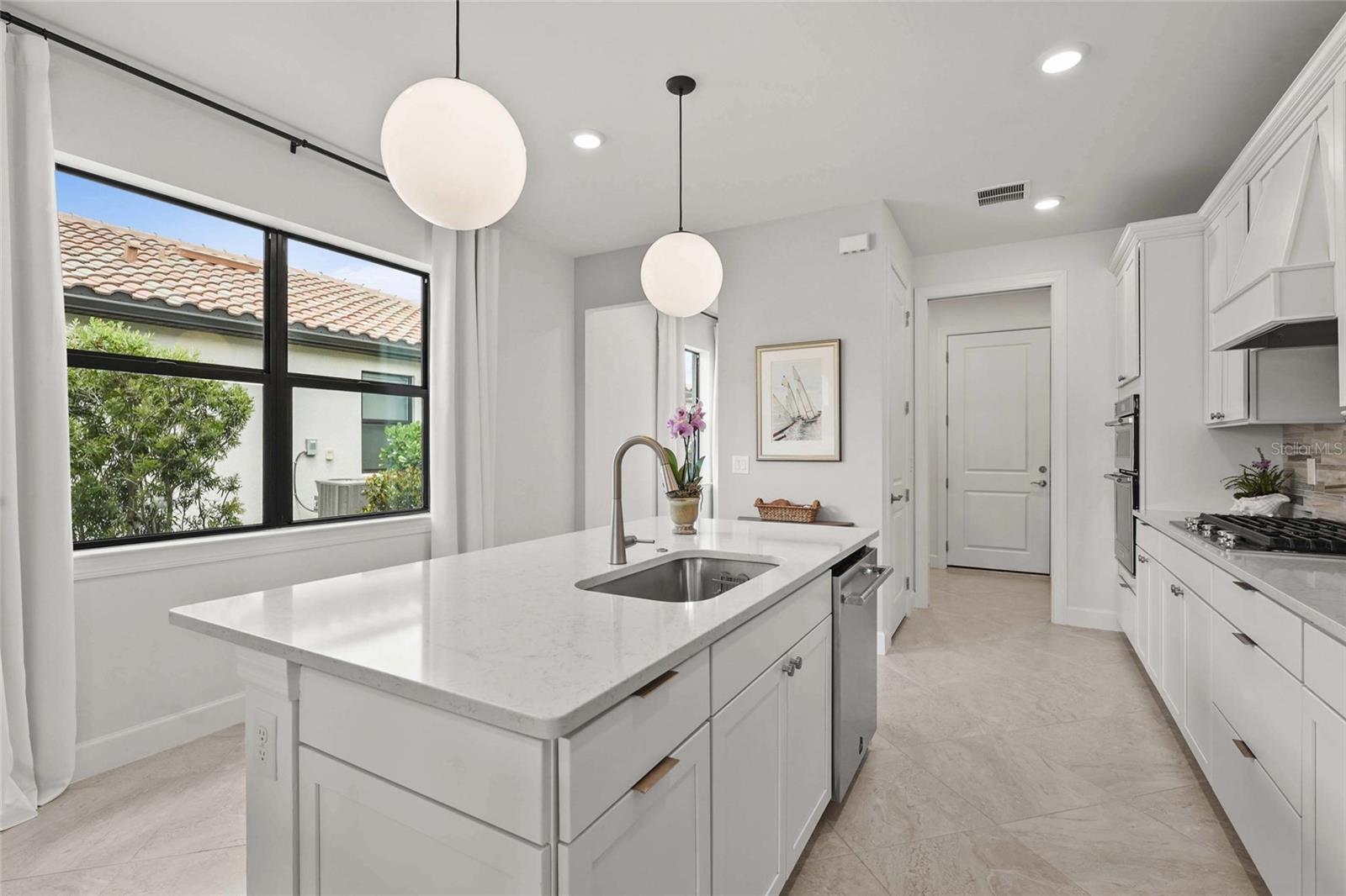Welcome to resort-style living in the gated community of Talon Preserve on Palmer Ranch, where this beautifully upgraded 3-bedroom, 2-bathroom home offers over $70,000 in premium finishes and enhancements. This home backs up to a protected preserve, ensuring permanent privacy and unobstructed views--- where you can often spot the famous Nokomis bald eagle nesting nearby. From the moment you arrive, you'll notice the home is tucked away on a quiet, non-thru street offering peaceful surroundings just a short walk to amenities. The lush + meticulously maintained landscaping frames the pavered driveway, leading to an upgraded elevation and impact glass front door. Step inside to discover 22-inch diagonal tile flooring and upgraded Sherwin Williams paint throughout, setting the tone for elegance and comfort. The open-concept great room seamlessly flows into the chef-inspired kitchen, which features 42-inch solid wood cabinetry, a polished marble backsplash, and built-in GenAir, KitchenAid, and Whirlpool appliances. Designer light fixtures, upgraded hardware, and quartz countertops elevate the space, making it ideal for both entertaining and everyday living. The owner’s suite impresses with a tray ceiling, a spacious walk-in closet, and a luxurious ensuite bath complete with dual sinks, an upgraded vanity, and a frameless glass walk-in shower lined with premium tile. Additional upgrades include a customized laundry and butler’s pantry area with high-end washer and dryer, an extended garage with 4-foot expansion and epoxy floors, upgraded interior doors and lighting throughout, and full smart home integration. Enjoy the Florida sunshine year-round from the glass-enclosed Florida room, enhanced by an electric screen on the patio and a custom pavered outdoor space with a seating wall and built-in grill station finished with quartz countertops. A tankless water heater ensures energy efficiency and comfort. Located outside the flood zone with low HOA fees, no CDD, and zoning for A-rated schools, this home provides exceptional value in one of Sarasota’s most desirable areas. Talon Preserve is more than a neighborhood—it’s a lifestyle destination. Residents enjoy world-class amenities including a resort-style heated pool with rock waterfall and splash pad, spa, full-service restaurant and bar, 18,000 sq ft clubhouse, state-of-the-art gym, arcade, 8 pickleball courts, tennis and bocce courts, and a dog park. Direct access to the Legacy Trail and proximity to Oscar Scherer State Park, pristine beaches, Sarasota Memorial Hospital, top-rated golf courses, and downtown Sarasota and Venice complete the picture of ideal Florida living.