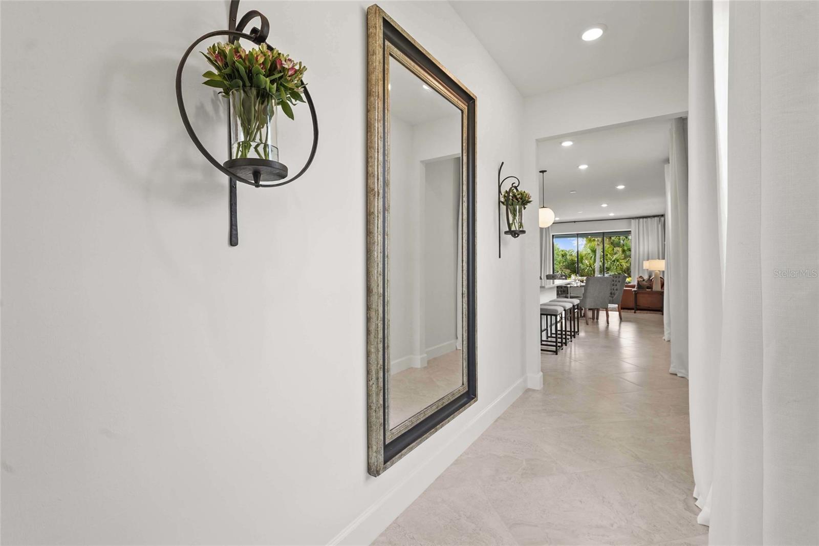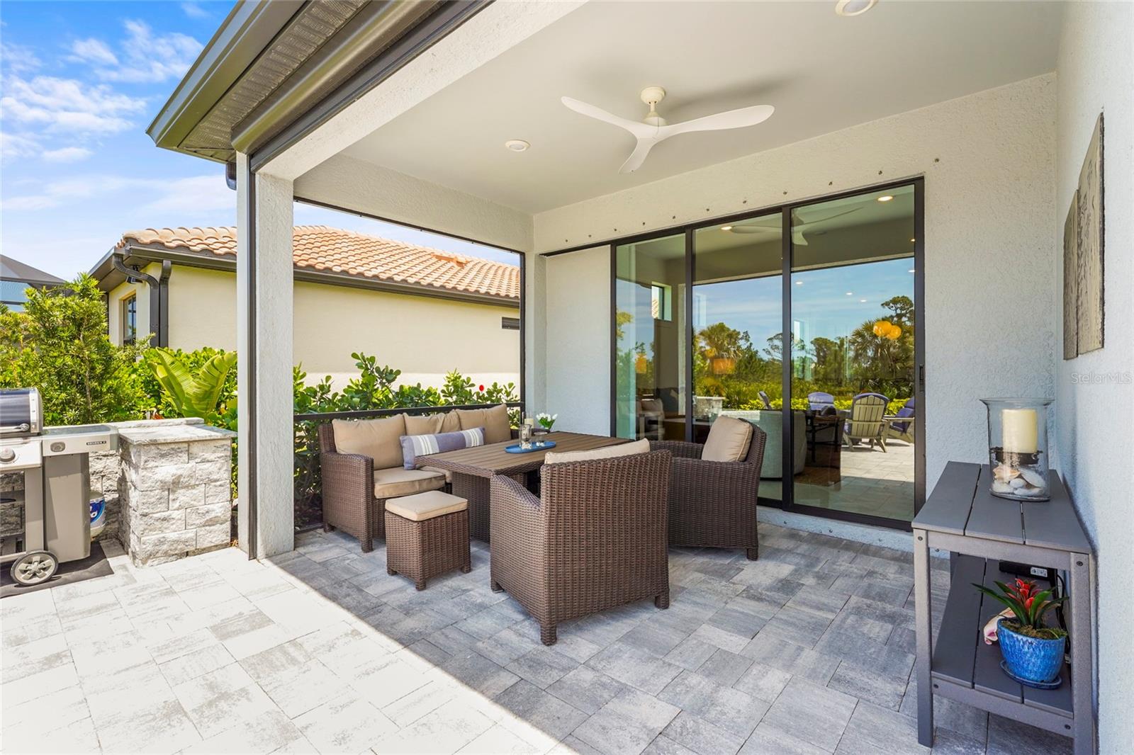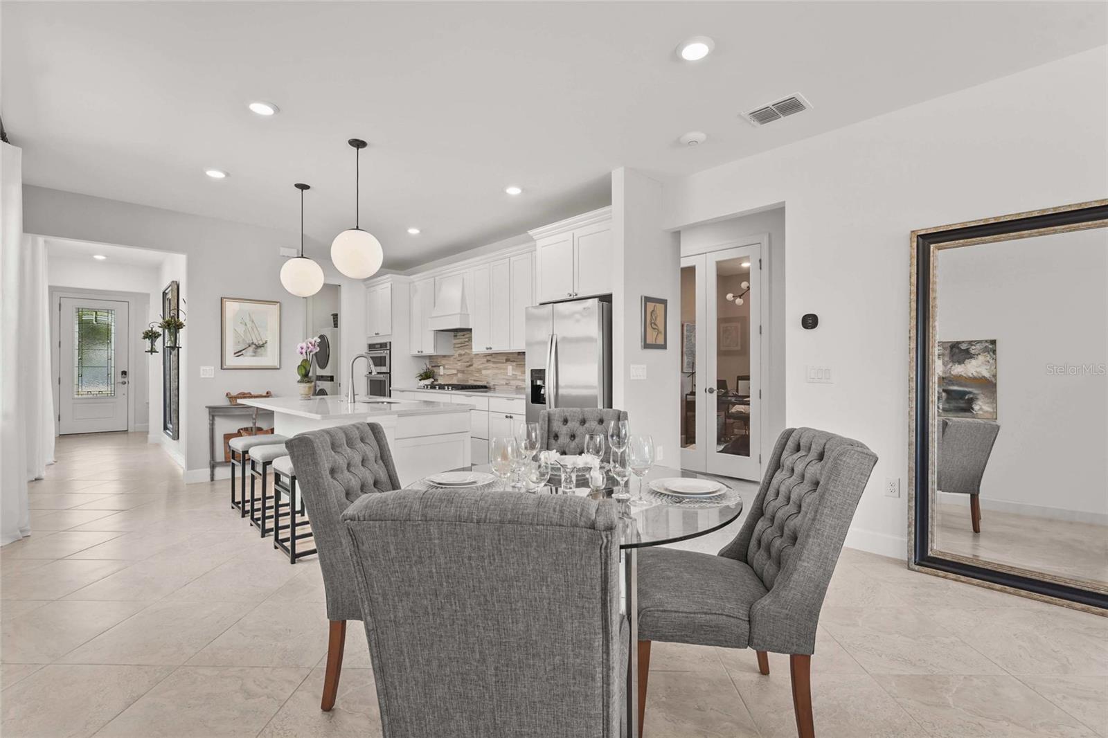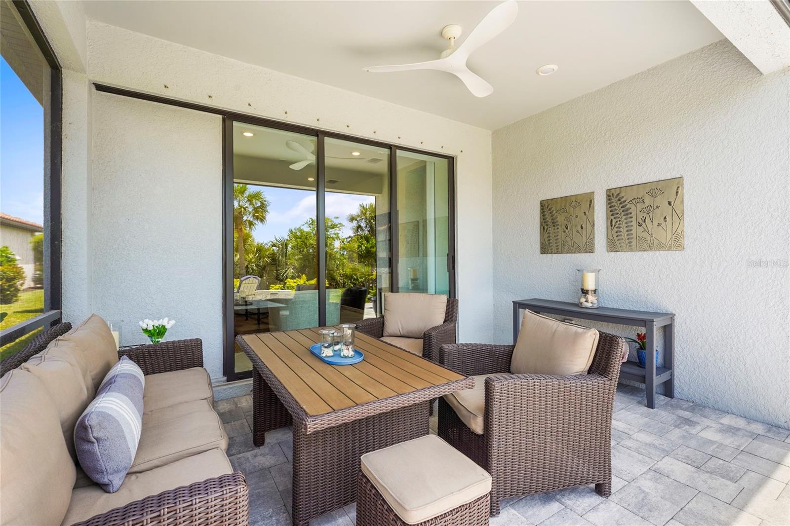 Welcome to resort-style living in the gated community of Talon Preserve on Palmer Ranch, where this beautifully upgraded 3-bedroom, 2-bathroom home offers over $70,000 in premium finishes and enhancements. This home backs up to a protected preserve, ensuring permanent privacy and unobstructed views--- where you can often spot the famous Nokomis bald eagle nesting nearby. From the moment you arrive, you'll notice the home is tucked away on a quiet, non-thru street offering peaceful surroundings just a short walk to amenities. The lush + meticulously maintained landscaping frames the pavered driveway, leading to an upgraded elevation and impact glass front door. Step inside to discover 22-inch diagonal tile flooring and upgraded Sherwin Williams paint throughout, setting the tone for elegance and comfort. The open-concept great room seamlessly flows into the chef-inspired kitchen, which features 42-inch solid wood cabinetry, a polished marble backsplash, and built-in GenAir, KitchenAid, and Whirlpool appliances. Designer light fixtures, upgraded hardware, and quartz countertops elevate the space, making it ideal for both entertaining and everyday living. The owner’s suite impresses with a tray ceiling, a spacious walk-in closet, and a luxurious ensuite bath complete with dual sinks, an upgraded vanity, and a frameless glass walk-in shower lined with premium tile. Additional upgrades include a customized laundry and butler’s pantry area with high-end washer and dryer, an extended garage with 4-foot expansion and epoxy floors, upgraded interior doors and lighting throughout, and full smart home integration. Enjoy the Florida sunshine year-round from the glass-enclosed Florida room, enhanced by an electric screen on the patio and a custom pavered outdoor space with a seating wall and built-in grill station finished with quartz countertops. A tankless water heater ensures energy efficiency and comfort. Located outside the flood zone with low HOA fees, no CDD, and zoning for A-rated schools, this home provides exceptional value in one of Sarasota’s most desirable areas. Talon Preserve is more than a neighborhood—it’s a lifestyle destination. Residents enjoy world-class amenities including a resort-style heated pool with rock waterfall and splash pad, spa, full-service restaurant and bar, 18,000 sq ft clubhouse, state-of-the-art gym, arcade, 8 pickleball courts, tennis and bocce courts, and a dog park. Direct access to the Legacy Trail and proximity to Oscar Scherer State Park, pristine beaches, Sarasota Memorial Hospital, top-rated golf courses, and downtown Sarasota and Venice complete the picture of ideal Florida living.