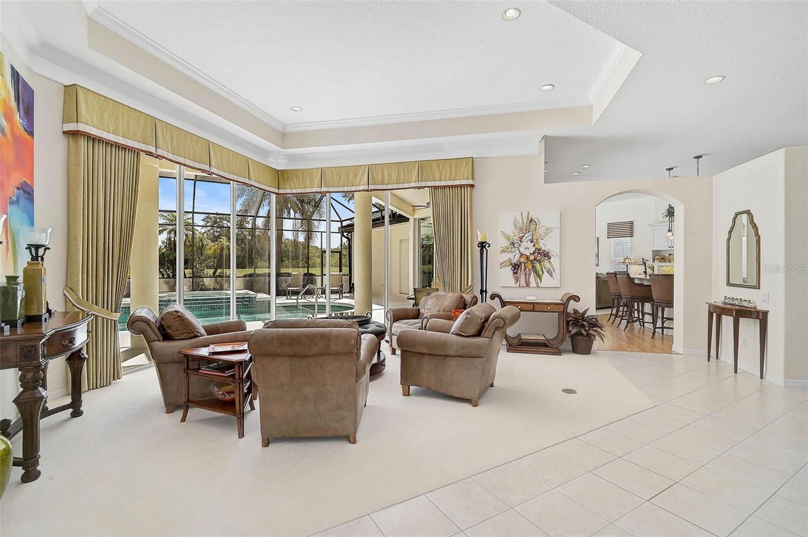 Welcome to your dream home in Calusa Lakes in Nokomis, Florida. This exquisite 2,996 sf residence is ideally located on the 11th fairway of the Calusa Lakes Golf Course, offering a perfect blend of luxury and comfort. With four spacious bedrooms and 3.5 baths, this home is ideal for relaxation and entertaining. The bright and open floor plan is highlighted by high ceilings and oversized sliders that offer stunning views of the pool and lush golf course. The spacious kitchen, complete with a butler’s pantry, is perfect for culinary endeavors and hosting guests. Modern conveniences such as a central vacuum system enhance the home's efficiency and ease of living. A circular driveway welcomes you to this elegant property, providing a grand entrance and ample room for guests. The primary suite is a private oasis featuring a Roman shower, while a second primary bedroom with an en-suite bath offers flexibility for in-law accommodations or guests. The three-car garage includes a stall ideally sized for a golf cart or a Mini Cooper. Enjoy exclusive access to an 18-hole championship golf course and the vibrant community of Calusa Lakes. The location provides close proximity to Nokomis’s pristine beaches, Oscar Scherer State Park, and the diverse shopping, dining, and cultural activities available in Venice and Sarasota. Experience luxury, convenience, and natural beauty in this remarkable home. Schedule your private tour today and discover a lifestyle that fulfills all your desires.