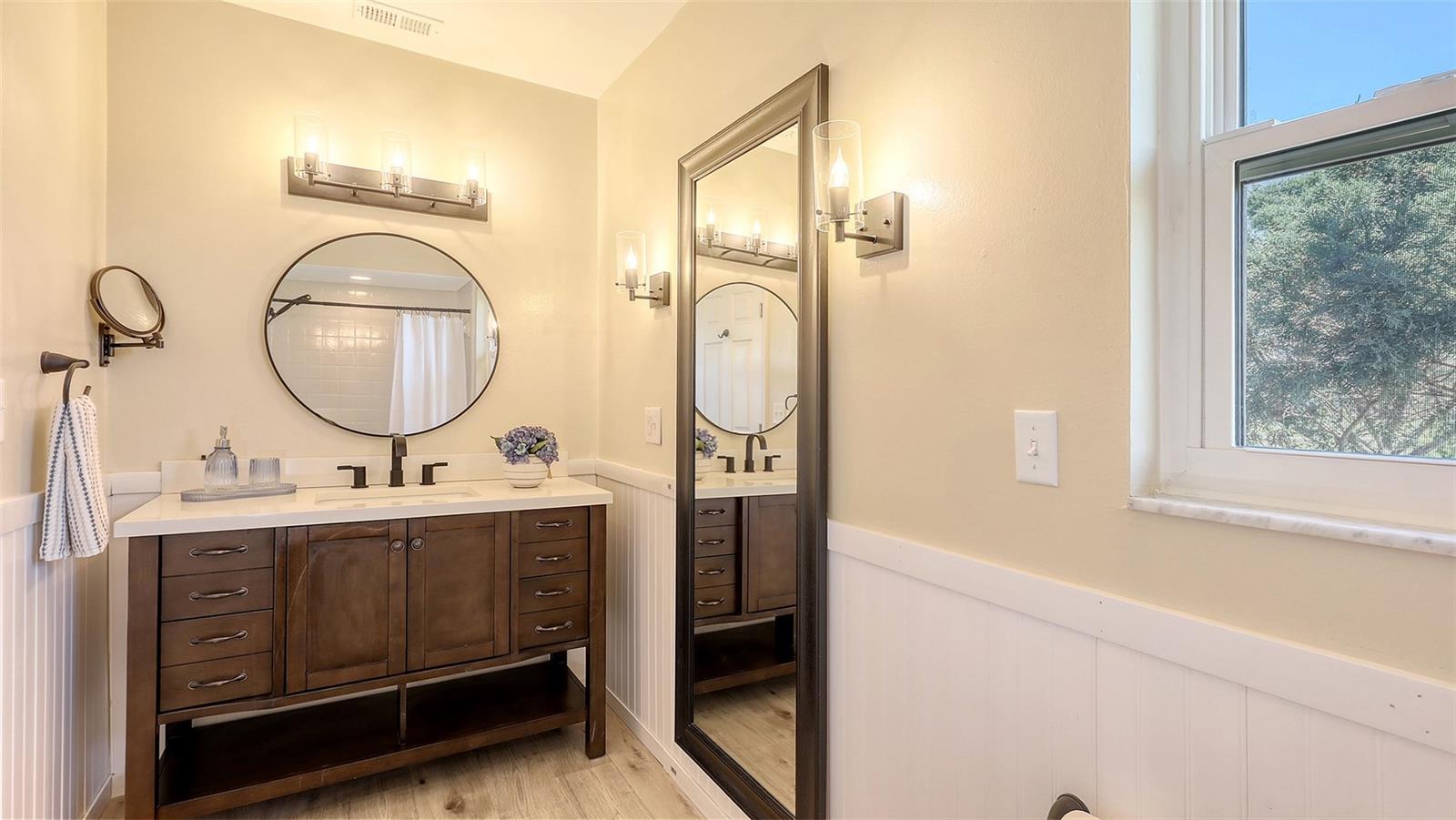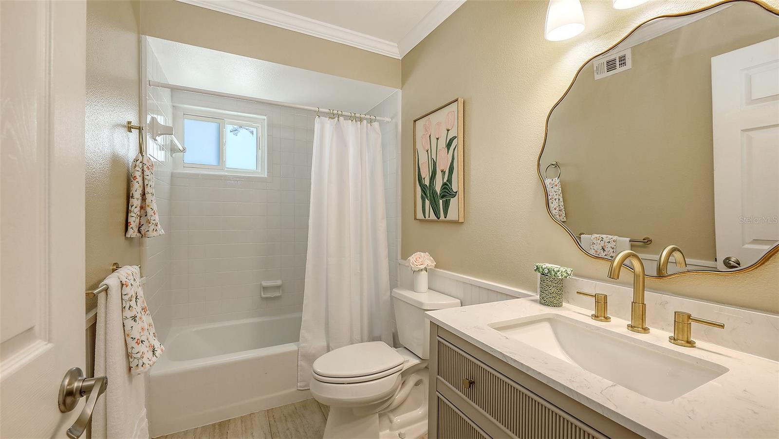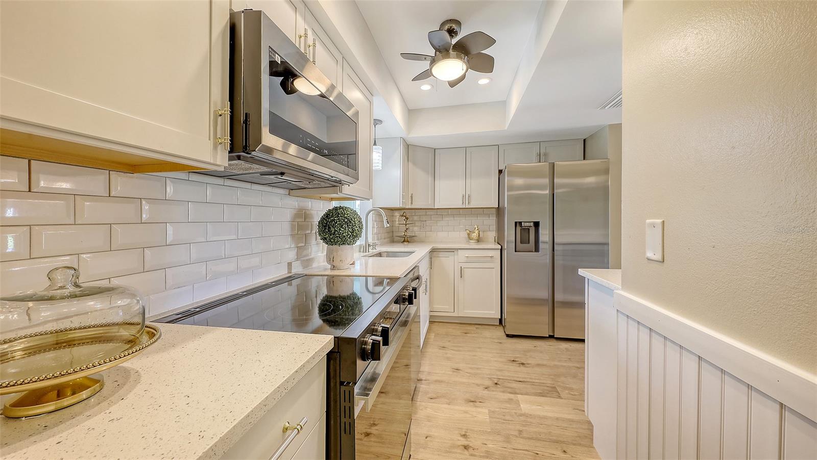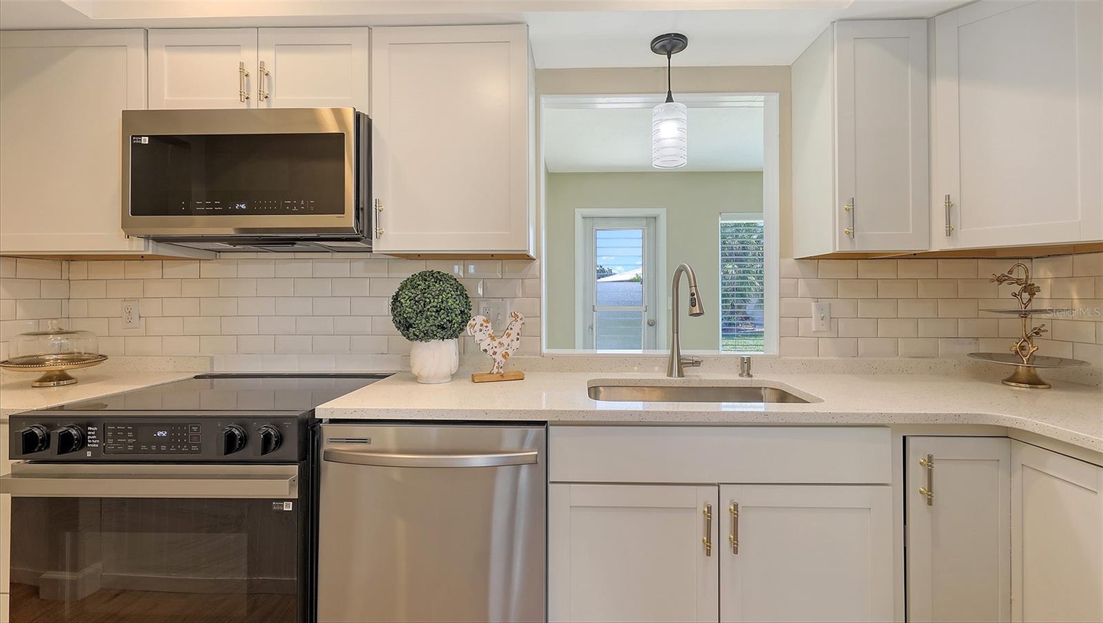Tastefully remodeled free-standing villa in Sorrento East offers the feel of a single-family home but the maintenance free qualities of condo living. Brand new state of the art kitchen with new white cabinets, sparkling white quartz countertops and brand new stainless appliances. Both baths have been updated to a classy coastal vibe with new vanities, sinks, fixtures and mirrors, attention to every detail. Brand new driftwood colored waterproof laminate wood flooring throughout as well as new modern ceiling fans in every room. The newly installed hurricane impact windows and the 2025 AC system provide safety and peace of mind. An added bonus is the double wide driveway which can easily accommodate four cars. Plus, this home is NOT in a flood zone! The HOA covers maintenance of the grounds and maintenance of the exterior including roof replacement and paint. The sought-after community of Sorrento East is conveniently located between Venice and Sarasota, close to Nokomis Beach, shopping, restaurants, Oscar Scherer State Park and the Legacy Trail. This home is priced to sell! Call today for your own private showing.