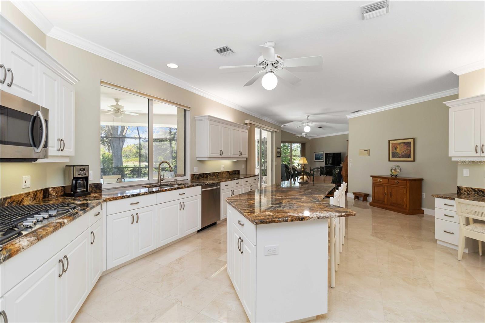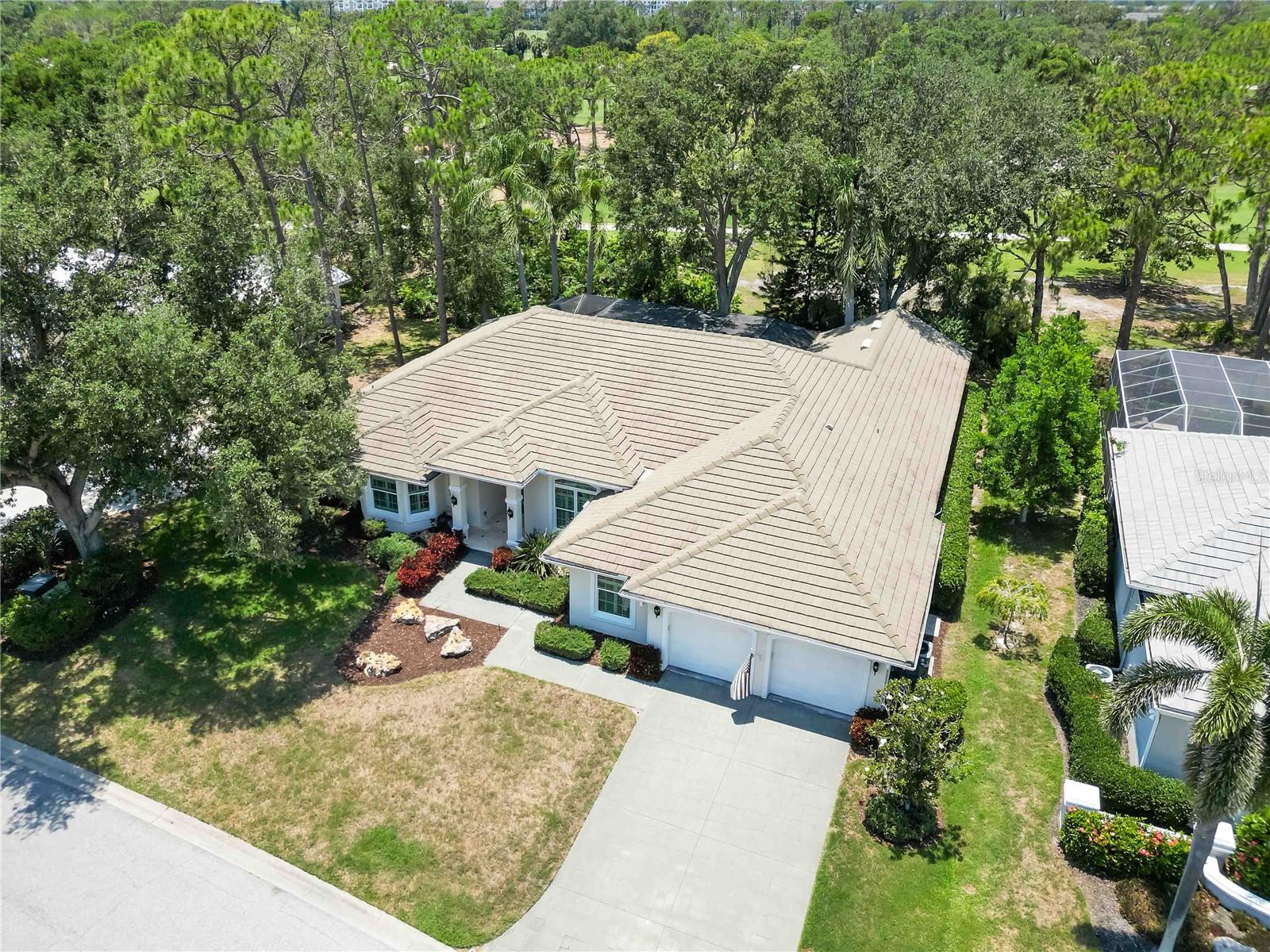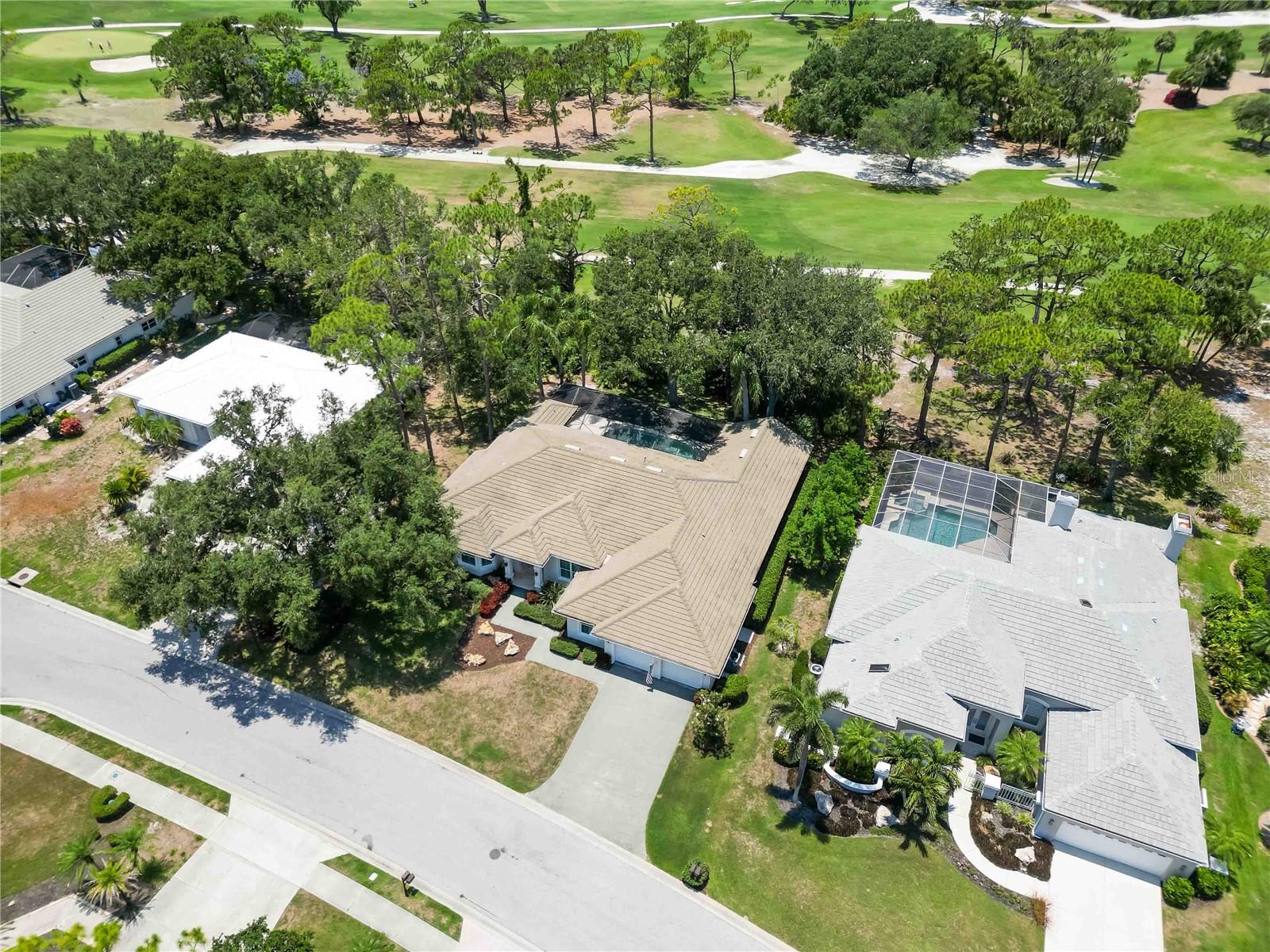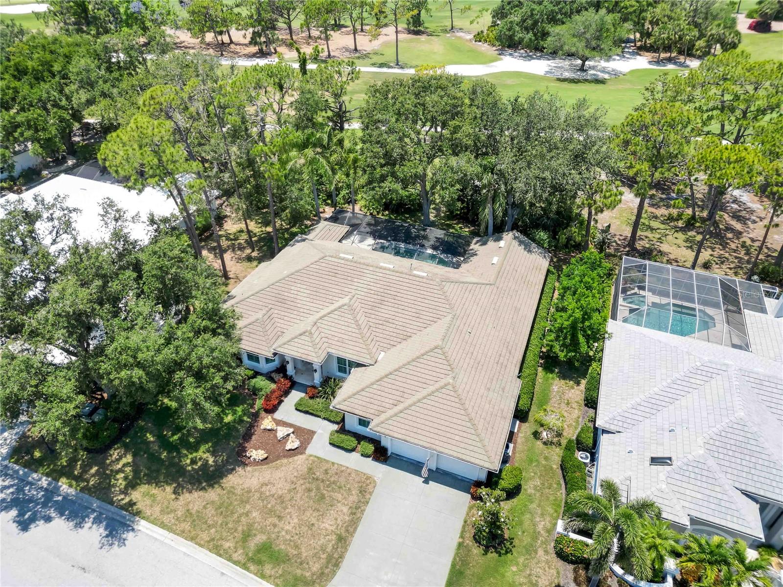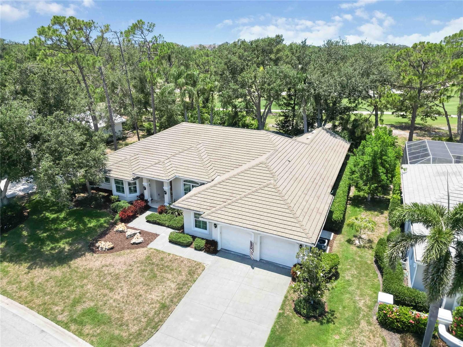 Nestled within the esteemed Calusa Lakes community, 2067 Tocobaga Lane in Nokomis is a meticulously designed and maintained 3,466-square-foot residence that seamlessly blends luxury and functionality. This expansive home features three bedrooms, an office, and 3.5 bathrooms. This magnificent, upscale home on a heavily treed lot reflects custom craftsmanship from the medallion inlaid tiled front porch with a new electronic lock and brass door hardware to the large 411 sq. ft. PebbleTec surfaced, heated saltwater pool in a new (2025) 150 mph rated cage with extra fine screening to keep out no-see-um’s. This is one of the largest lanais in Calusa Lakes. The lanai overlooks the 13th fairway of Mission Valley CC, it is well lit and has ceiling fans and outdoor speakers. Inside, the home has imported marble flooring with high baseboards and crown molding throughout the main living areas. The bedrooms and den are carpeted. The expansive kitchen/eating area is a cook’s dream with all stainless-steel appliances, a granite center island and counter tops, a five-burner propane stovetop, under and over cabinet lighting (the over cabinet is adjustable LED), abundant cabinet storage, a walk-in pantry, and a motion sensor activated Kohler faucet above the double stainless-steel sinks. The eating areas easily seat nine guests. The family room has a wet bar with a wine rack and glass storge unit above the sink. Pocket sliding doors open out onto the lanai. A large panoramic, impact resistant four window set overlooks the golf course. The formal living and dining rooms exude elegance; the living room also has pocket sliding doors opening onto the lanai. There are ceiling fans throughout the home. The large master bedroom has two walk-in closets and offers a serene private retreat with pocket sliding doors opening onto the lanai, plantation blinds (including for the pocket doors) for privacy, and two full bathrooms. One of these is a pool bathroom that opens to the lanai for entertaining convenience. The master bath includes dual vanities, a jetted tub, a large walk-in tiled shower with a handheld unit/a rainmaker shower head/and three body spray heads combination as well as a private area for the commode. One of the two guest bedrooms has a walk-in closet. The guest bathroom has a mosaic tile floor and tiled shower with both a rainmaker shower head and handheld unit. The entire guest area has plantation blinds. The bay window den overlooks the front of the home and has plantation blinds. There is also a large laundry room complete with a sink. A new roof was installed in 2019 and a new energy efficient HVAC system in 2020. The HVAC system includes three programmable thermostats for the three zones in the home as well as a high efficiency filter and UV light. The oversized garage accommodates two cars and has a large additional area (678 square feet) ideal for a workshop or extra storage. The home has a robust security system installed with a glass break detector and motion sensors as well as dual control pads; one is in the master bedroom. There is a central vacuum system as well. You will be conveniently located 8 minutes from Sarasota Memorial Hospital’s Venice campus, I-75, and US 41. Calusa Lakes is a semi-private golf course community located near beautiful beaches, shopping, churches, fine dining, and the Legacy Trail for biking and hiking. This home is the complete package – a must see.