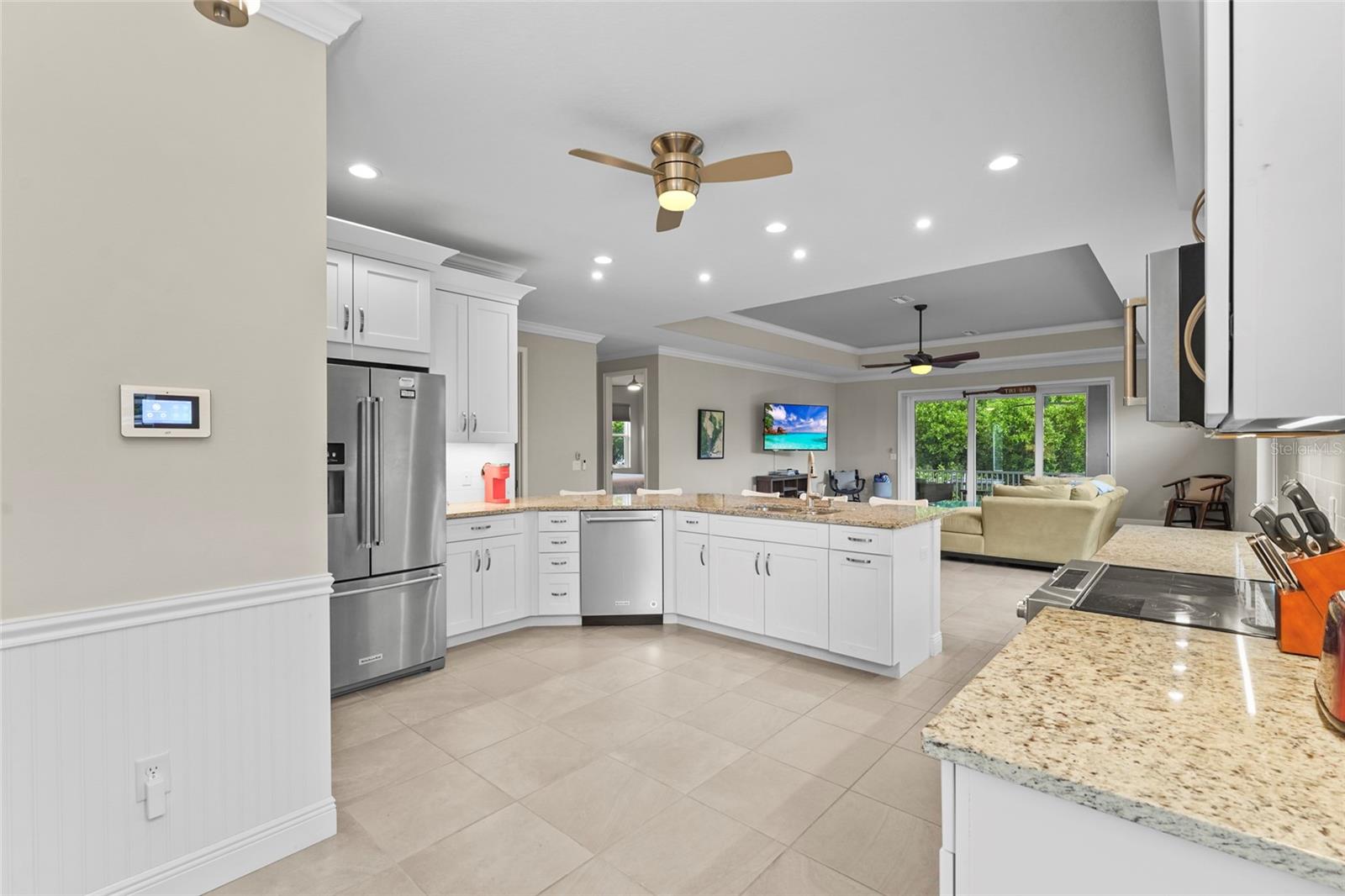 Welcome to The Cottages of Curry Creek, a hidden gem nestled in a small gated community offering direct Gulf access and low-maintenance coastal living. This Key West-style home features 2 bedrooms, 2 bathrooms, plus a versatile den currently used as a third bedroom—perfect for guests or a home office. Step inside to an inviting open floor plan where 10-foot tray ceilings, crown molding, and canal views elevate the spacious great room. The kitchen is equally impressive, boasting 45-inch wood cabinetry, granite countertops, and stainless steel appliances, all designed with both function and style in mind. The private den features glass doors and engineered hardwood flooring, while the large owner’s suite offers peaceful canal views, a custom walk-in closet system, and an ensuite bath designed for relaxation. Built with quality in mind, this home includes fiber cement siding over concrete block construction, PGT hurricane impact windows, energy-efficient ¾-inch foam insulation throughout the attic and walls, and a durable metal roof built to withstand the elements. Step into your backyard oasis where a private dock with a 10,000 lb boat lift awaits, offering instant access to Curry Creek, Roberts Bay, and the Gulf of Mexico. With low HOA fees covering gated access, lawn care, landscaping, and irrigation, enjoy a truly carefree lifestyle. Ideally located just minutes from downtown Venice, Nokomis Beach, the Legacy Trail, and an array of dining and shopping options—this is waterfront Florida living at its best.