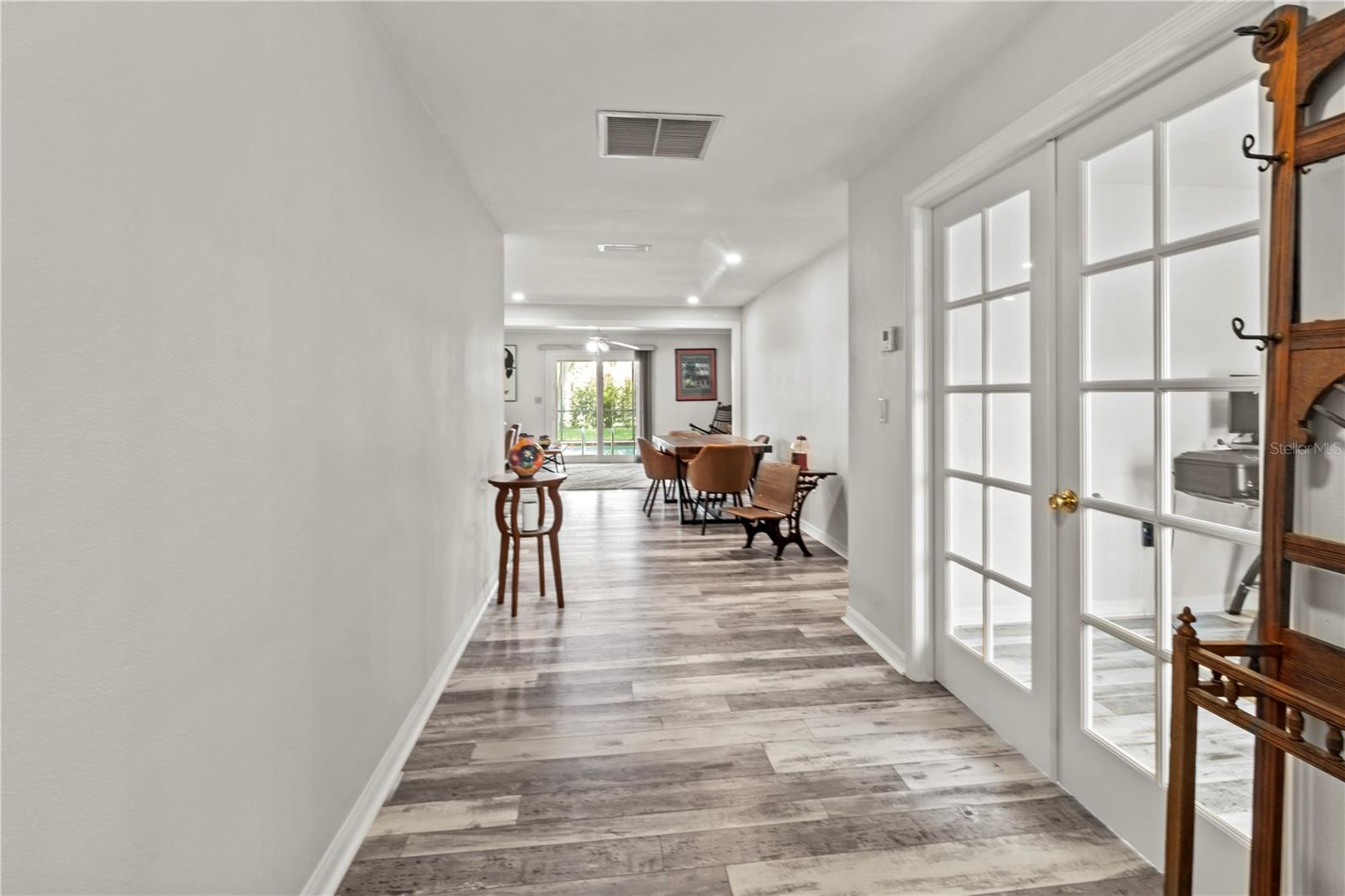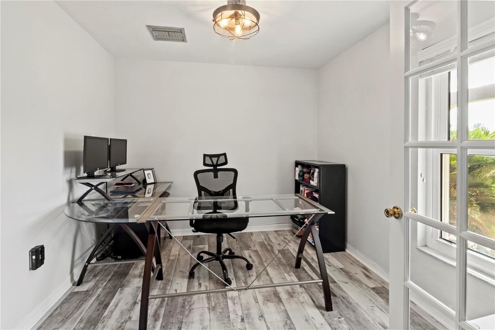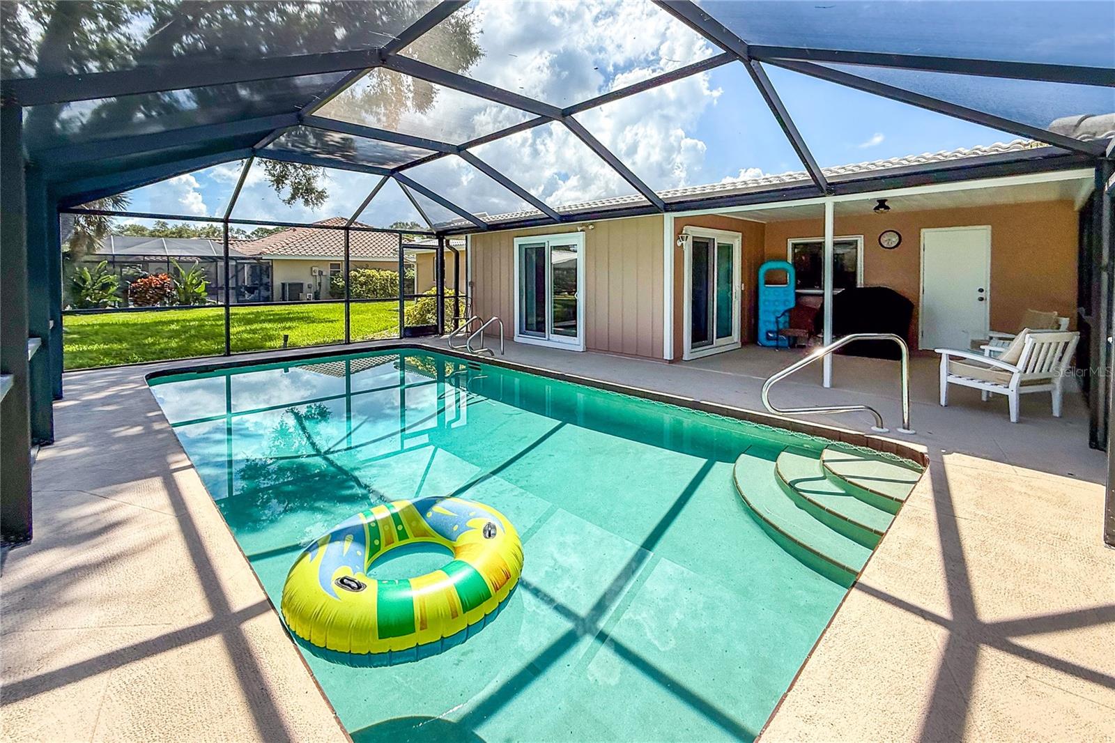 Sellers are MOTIVATED, bring all offers. Welcome to 107 Corot Drive, a beautifully renovated pool home tucked away in the highly desirable community of Sorrento East in Nokomis. This spacious 3-bedroom, 2.5-bath home also features a versatile office or den with French doors, perfect for remote work or creative space. Recent upgrades throughout give this home a fresh, modern feel, from the brand new white shaker-style kitchen with granite countertops and new appliances to the wood-look luxury vinyl plank flooring that runs seamlessly throughout the home. The primary suite offers a luxurious retreat with a large walk-in closet with it's own window, allowing for natural light, and a custom-tiled, multi-head walk-in shower. Step outside to your private covered lanai and enjoy the Florida lifestyle with a sparkling, huge swimming pool and an oversized backyard that’s perfect for entertaining or could easily be fenced for even more privacy. The home sits on a generous 0.32-acre lot and includes a two-car garage with ample space and solid storage. Every major system has been updated: new HVAC, new ductwork, new water heater, new plumbing, new IMPACT WINDOWS and DOORS, new irrigation system, new washer and dryer, and new gutters. The roof was professionally cleaned and sealed in 2024, the pool deck has been resurfaced, and the front lawn has been resodded for a polished finish. Located on a quiet street with low HOA fees of just $150 annually and no lease restrictions, this property offers both freedom and flexibility. And just a short drive to the beach, shops, and restaurants, this move-in ready home is truly a rare find.