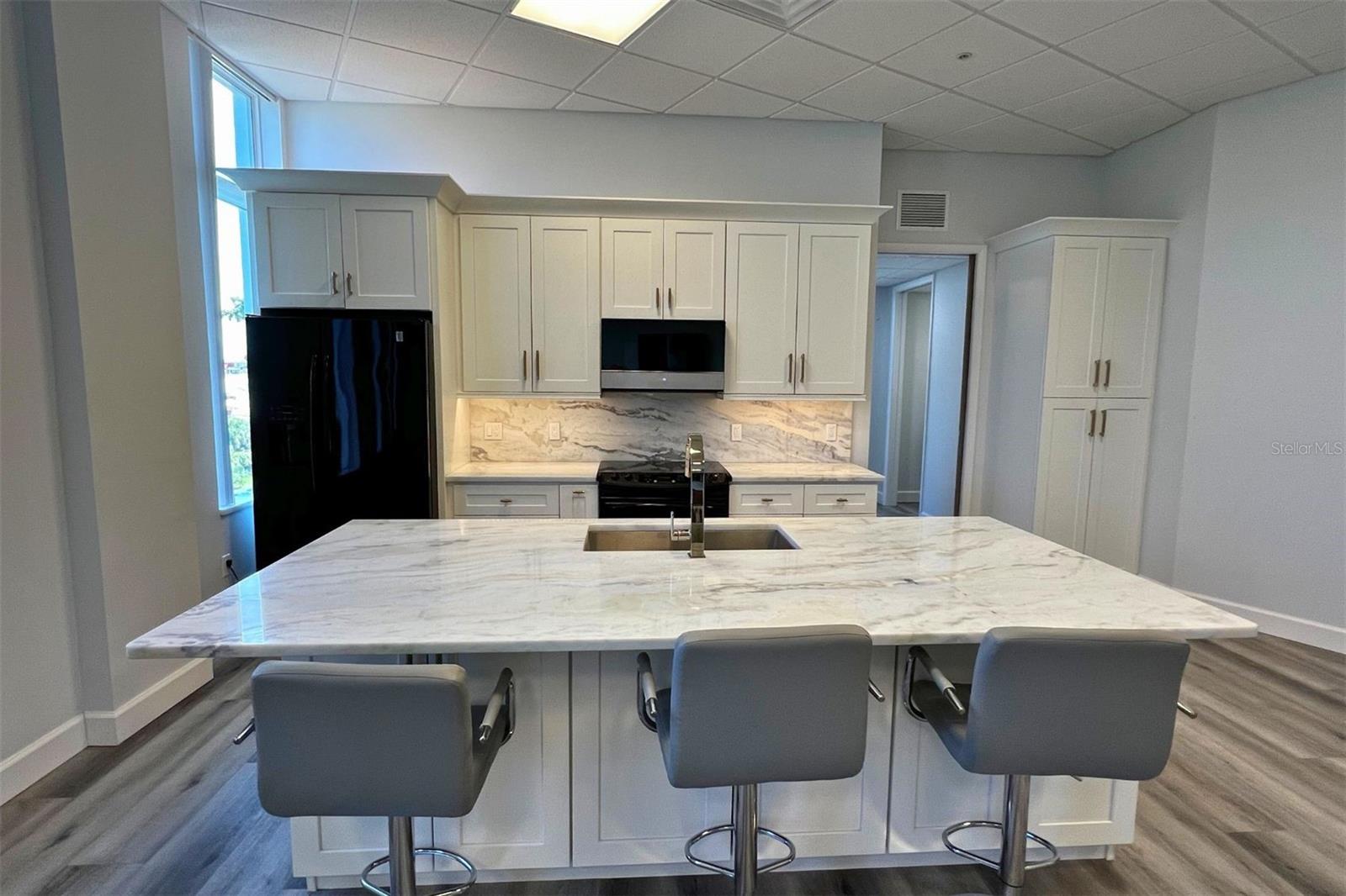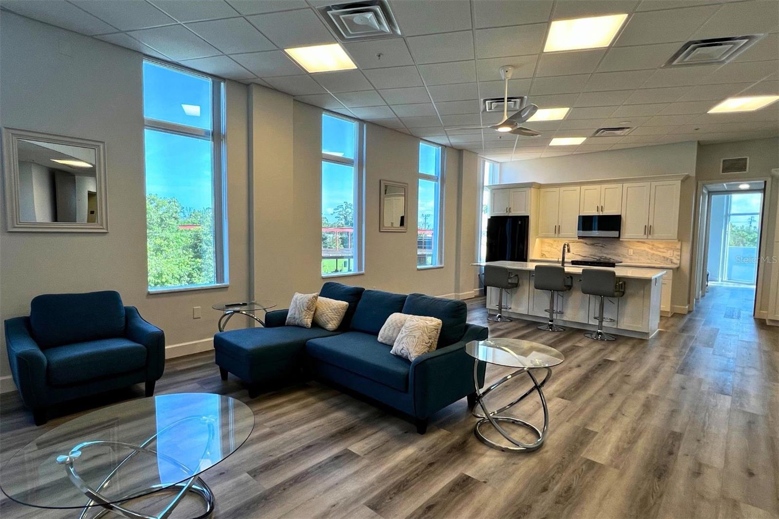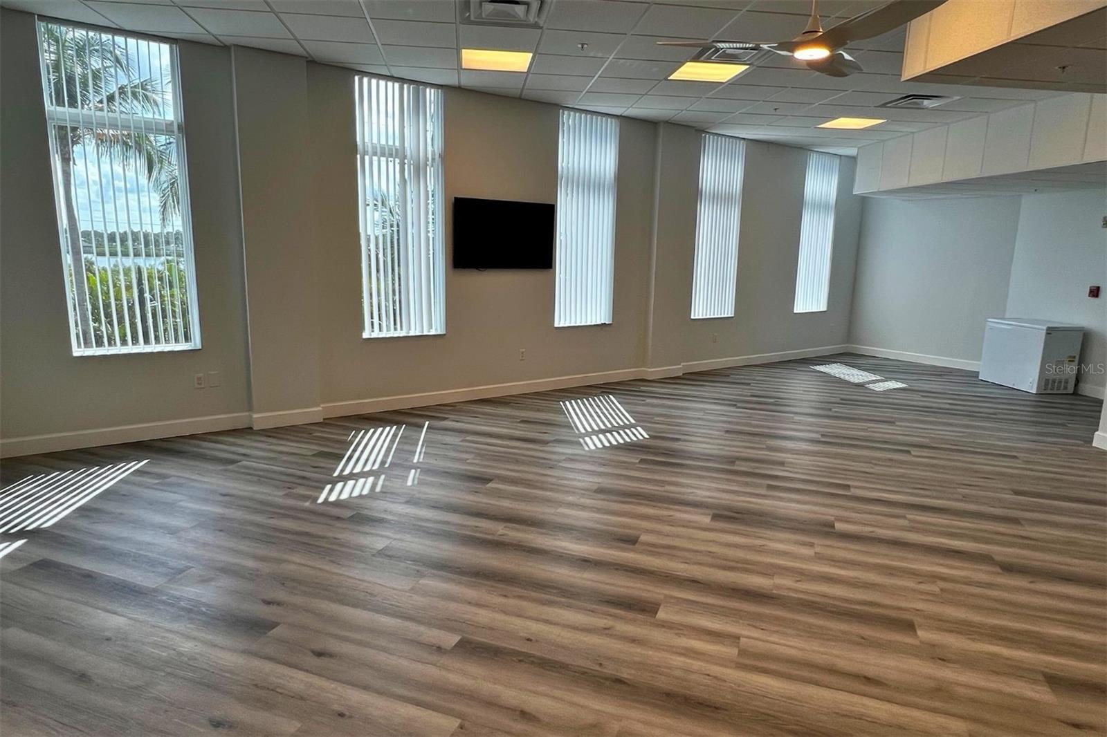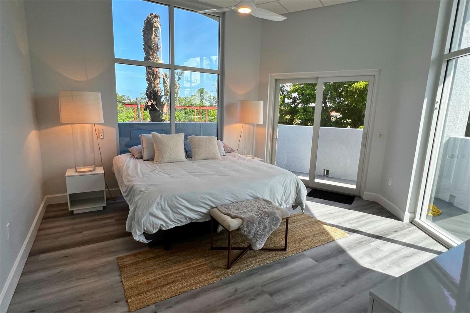 Waterfront mixed use office/retail property with a rare modern upscale living quarters. Not your average workspace! Directly off the private elevator you are greeted with 2 options: Business or Residence. On one side you'll be greeted with an open floor plan, tall ceilings and tons of natural light, perfect for any work space, art studio or professional office use. On the other side and you're greeted with a beautiful custom modern living space, complete with; huge windows full kitchen, bath and bedroom with balcony overlooking the Bay. This space offers the ability to separate or combine business and living space, you can easily have meetings with clients in a private setting and retire to your separate & secure domicile with just a few steps. Modern exterior with views of Donna Bay through your impact-rated windows. Down the hall you'll find high end amenities including a game room, fitness center and just down the elevator you have full access to a community pool with a view. Space comes complete with 2 reserved parking spaces, private parking for customers and secure access to your space.