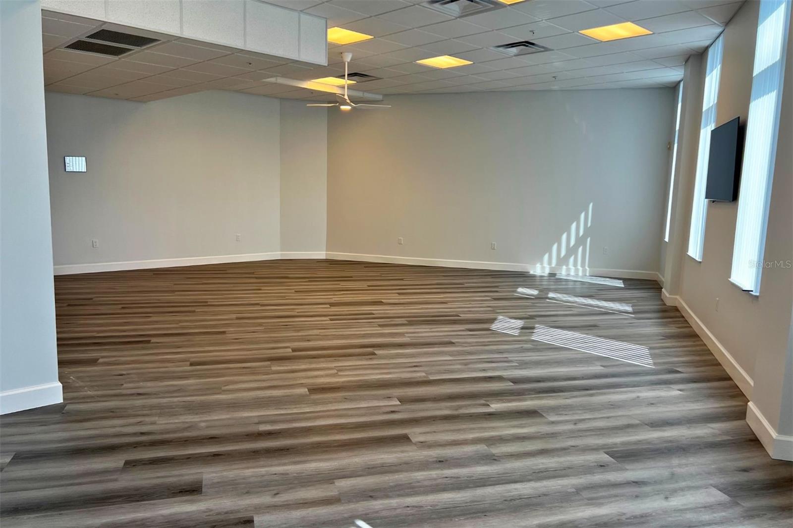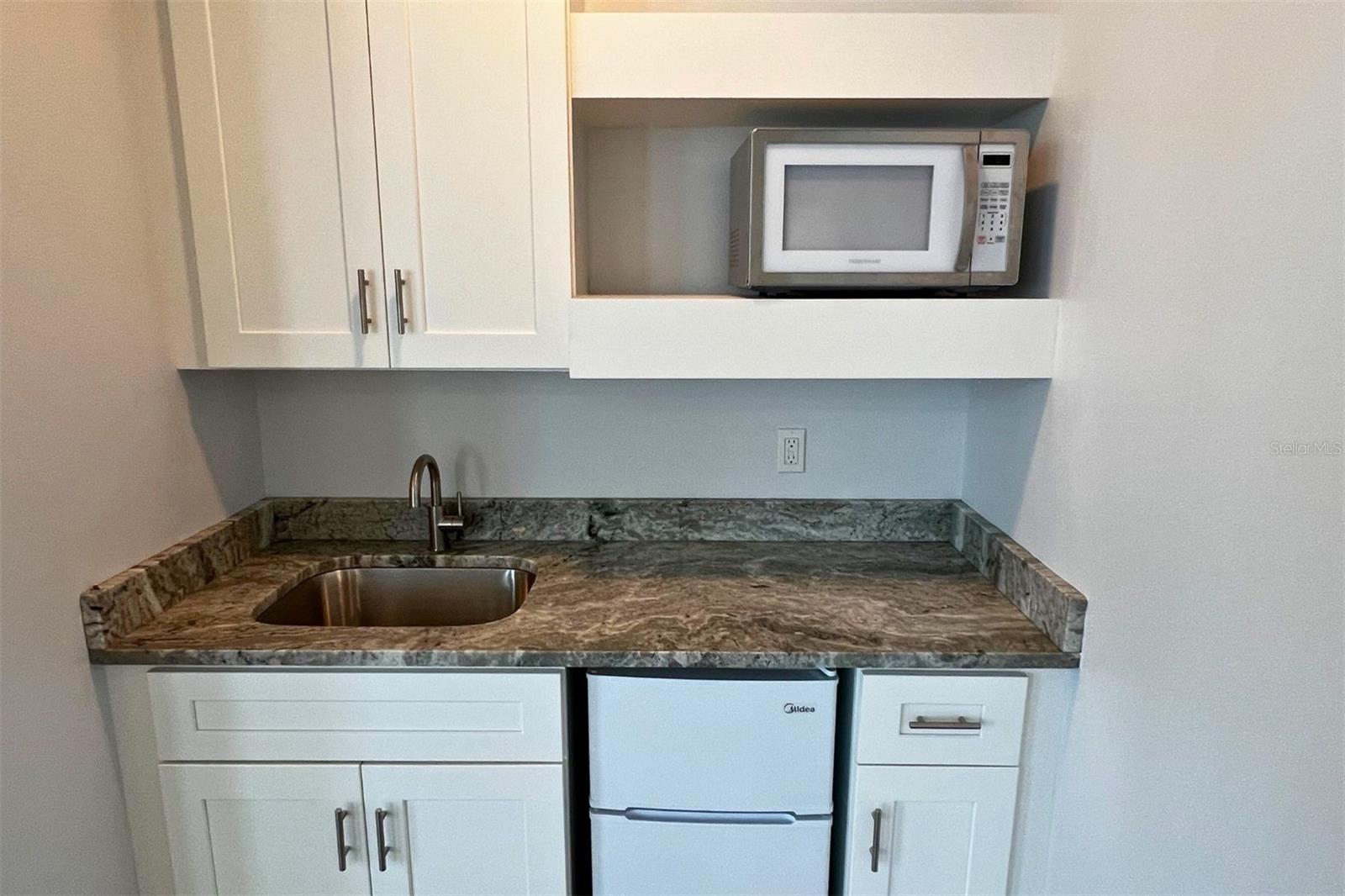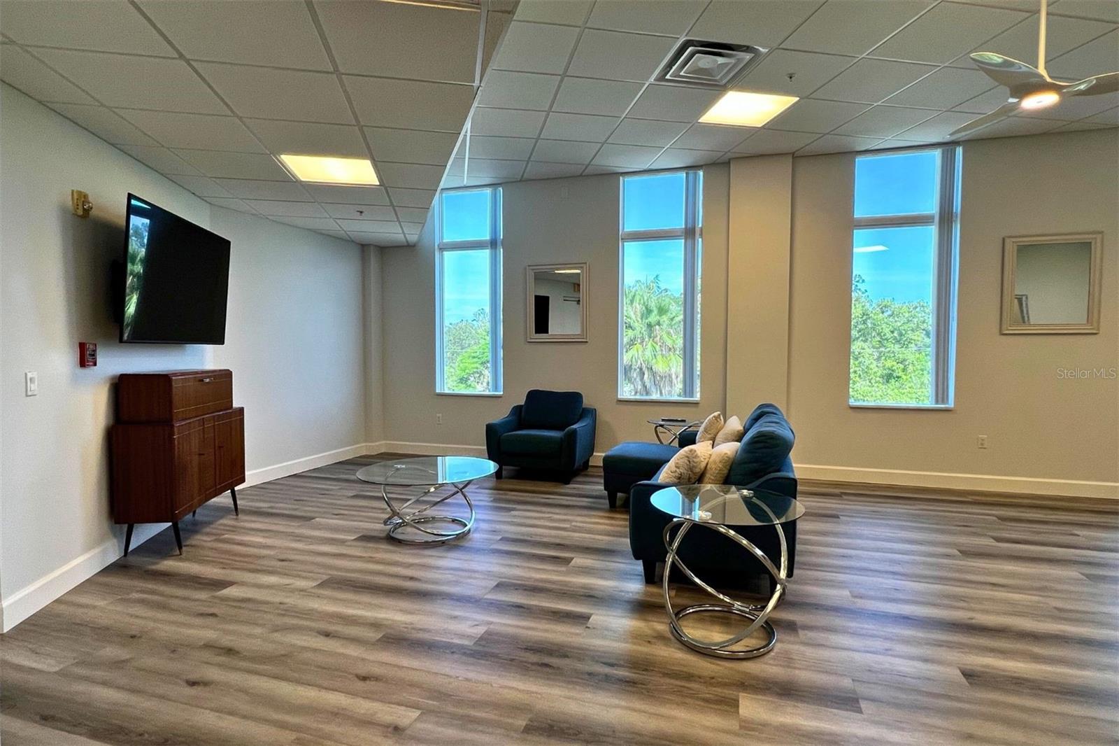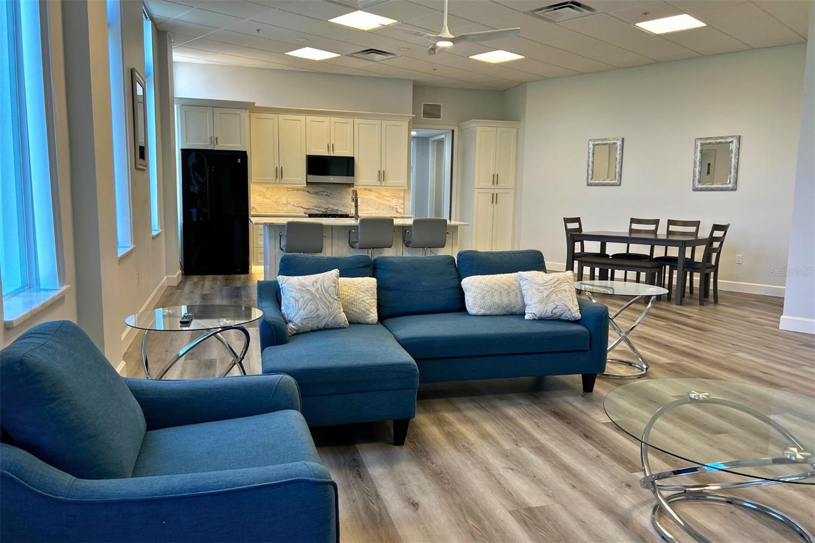 Waterfront mixed use office/retail property with a rare modern upscale living quarters. Not your average workspace! Directly off the private elevator you are greeted with 2 options: Business or Residence. On one side you'll be greeted with an open floor plan, tall ceilings and tons of natural light, perfect for any work space, art studio or professional office use. On the other side and you're greeted with a beautiful custom modern living space, complete with; huge windows full kitchen, bath and bedroom with balcony overlooking the Bay. This space offers the ability to separate or combine business and living space, you can easily have meetings with clients in a private setting and retire to your separate & secure domicile with just a few steps. Modern exterior with views of Donna Bay through your impact-rated windows. Down the hall you'll find high end amenities including a game room, fitness center and just down the elevator you have full access to a community pool with a view. Space comes complete with 2 reserved parking spaces, private parking for customers and secure access to your space.