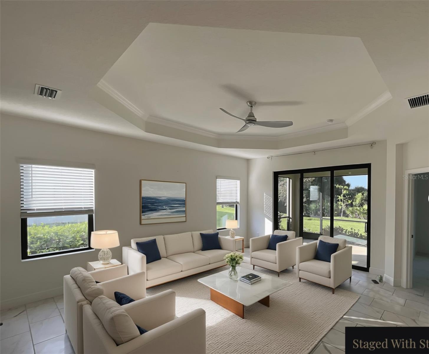 One or more photo(s) has been virtually staged. Vicenza is a gated resort style community, maintenance free for Villas, bordering Myakka park at the end of Laurel Rd East, that focuses on active lifestyle with many activities for homeowners. This popular spacious Tidewater Villa Floor plan features an Open Floor Plan, Great Room with coffered ceiling and crown molding, Impact Windows and Doors, 2 bedrooms, 2 full bathrooms, and den/ flex room. The home features porcelain tile floors throughout, quartz countertops, laundry room, 2 car garage, and screened in lanai with tranquil view of the preserve. Enjoy the Club House, heated pool/spa, pickle ball & Bocce courts, walking trails and dog park. Community is Located 6 miles / Minutes from Nokomis & Venice Beaches , shopping and restaurants.