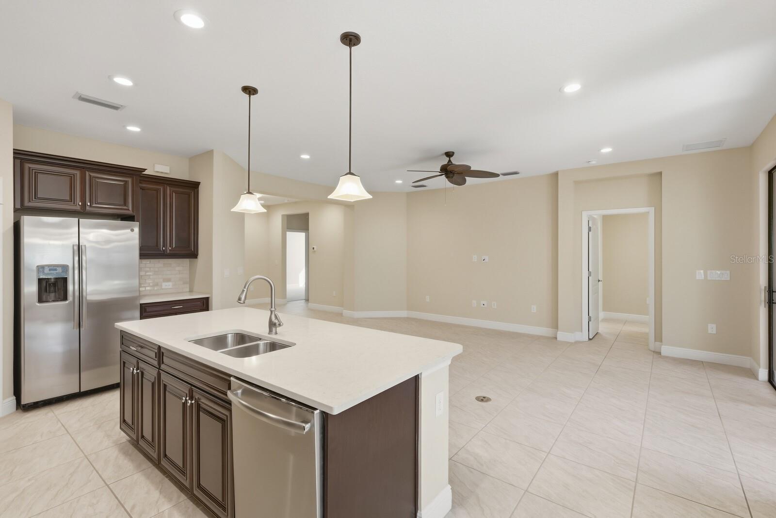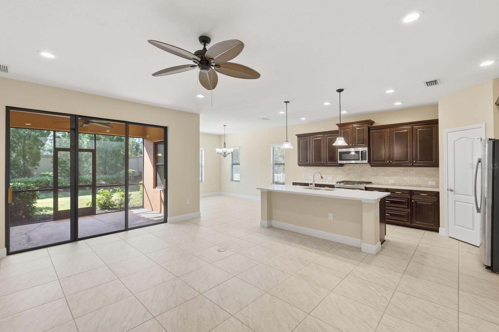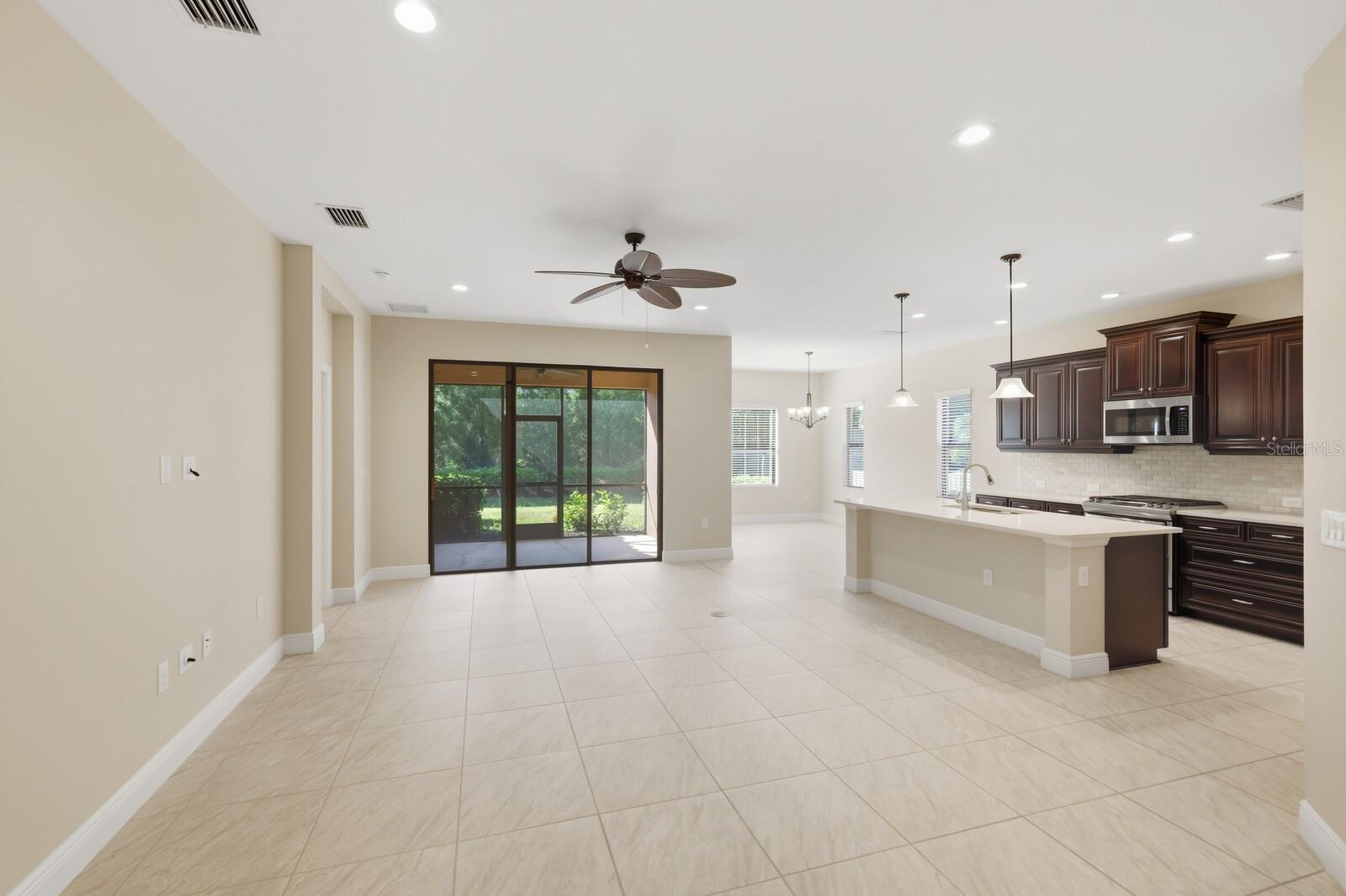 One or more photo(s) has been virtually staged. Discover Florida living in this open floor plan, 3-bedroom, 2-bathroom home with a versatile bonus room, perfect for a home office, den, or hobby space. The kitchen features gas appliances, ample counter space, and a cozy dinette area overlooking the family room. The primary bedroom offers two walk-in closets. Enjoy the outdoor space with the covered, screened-in lanai, and no neighbors behind you allowing for added privacy and tranquility. Milano residents enjoy resort-style amenities, including a heated pool and spa, clubhouse, pickleball/tennis courts, and bocce ball. With a low HOA and no CDD fees, this community offers exceptional value. Located just minutes from downtown Venice, the beaches, and quick I-75 access, this home brings the best of Southwest Florida right to your doorstep.