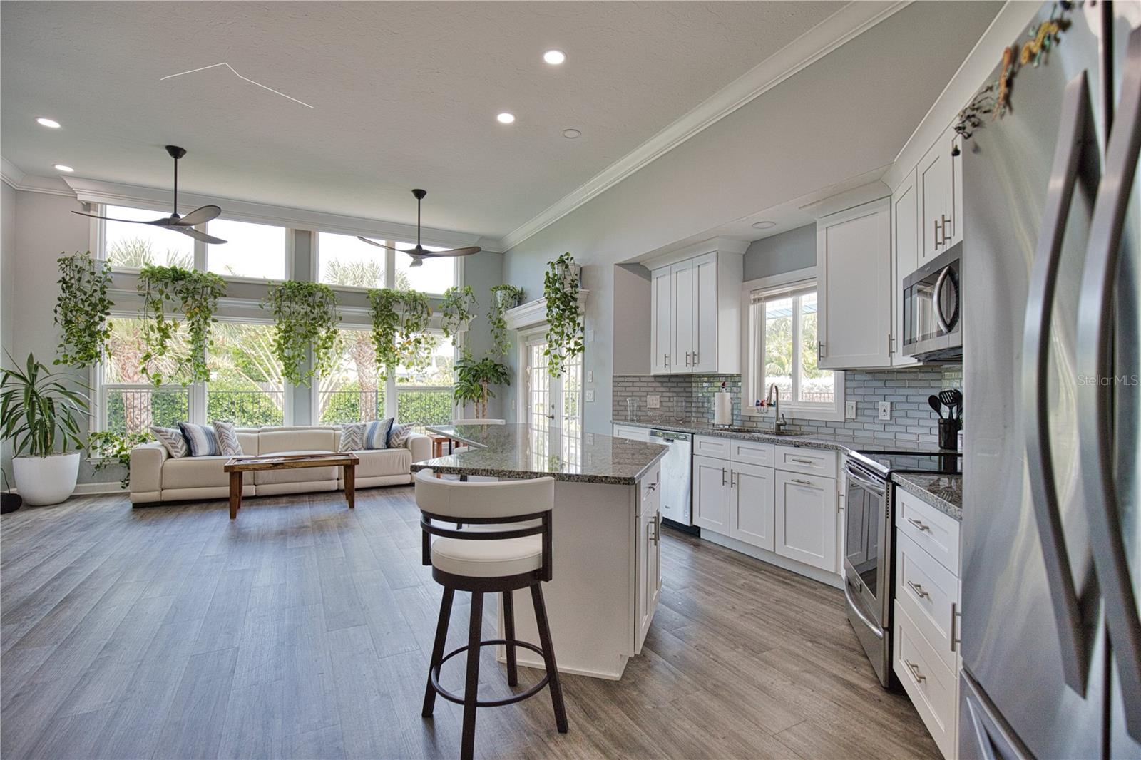 Completely Remodeled!! This impeccably maintained, 4-bedroom, 3-bath, Coastal-Style Home sits on a quiet cul-de-sac in the desirable Sorrento Bayside Community. With 12–14 foot ceilings, modern upgrades throughout, and a bright open floor plan offering 2,473 Sq Ft, this home delivers luxury living. Additional features include underground utilities, an irrigation system, a 2-car garage, and the benefit of being located in Flood Zone X, where no flood insurance is required. Major updates further enhance peace of mind, including a 2021 roof replacement, newer dual HVAC units installed in 2022, impact-resistant windows and an impact-rated garage door added in 2022, as well as fresh exterior paint, new gutters, and a new front door in 2024. Step through the classic foyer into an expansive, open-concept living area perfect for entertaining. A set of French doors opens to a spectacular backyard designed for both relaxation and fun, featuring a sparkling heated pool (resurfaced 2023), fresh new landscaping, and plenty of new lawn space and paver patio for outdoor activities. With new Aluminum Fencing surrounding the area, it’s the perfect spot for family time, gatherings, and carefree Florida living. The primary suite features an oversized layout, a spa-like en-suite bathroom with a Jacuzzi Tub, walk-in shower, and a Double walk-in closet—a rare find! The kitchen boasts contemporary cabinetry, stainless steel appliances, and newer solid-surface counters, opening seamlessly to the family room and dining areas. Throughout the home, elegant crown molding adds that refined finishing touch. Situated on a large 1/3-acre lot, this home also offers many Sarasota perks, including nearby Blackburn Bay, parks, dining, shopping, and easy access to top-rated Gulf beaches. Ideally located north of the City of Venice and south of the City of Sarasota, you’re perfectly positioned to enjoy Venice’s charming historic downtown, picturesque beaches, vibrant arts and cultural scene, scenic bike trails, popular festivals and community events, and its reputation as the “Shark Tooth Capital of the World.” A perfect blend of style, comfort, and location, this move-in-ready home is a true Nokomis gem. Your Florida lifestyle starts here—schedule your private tour today.
