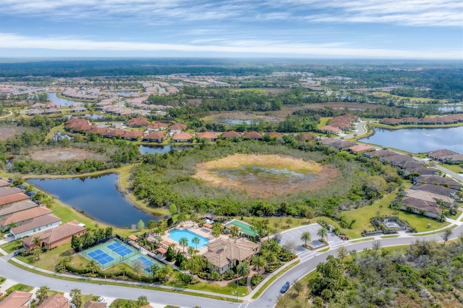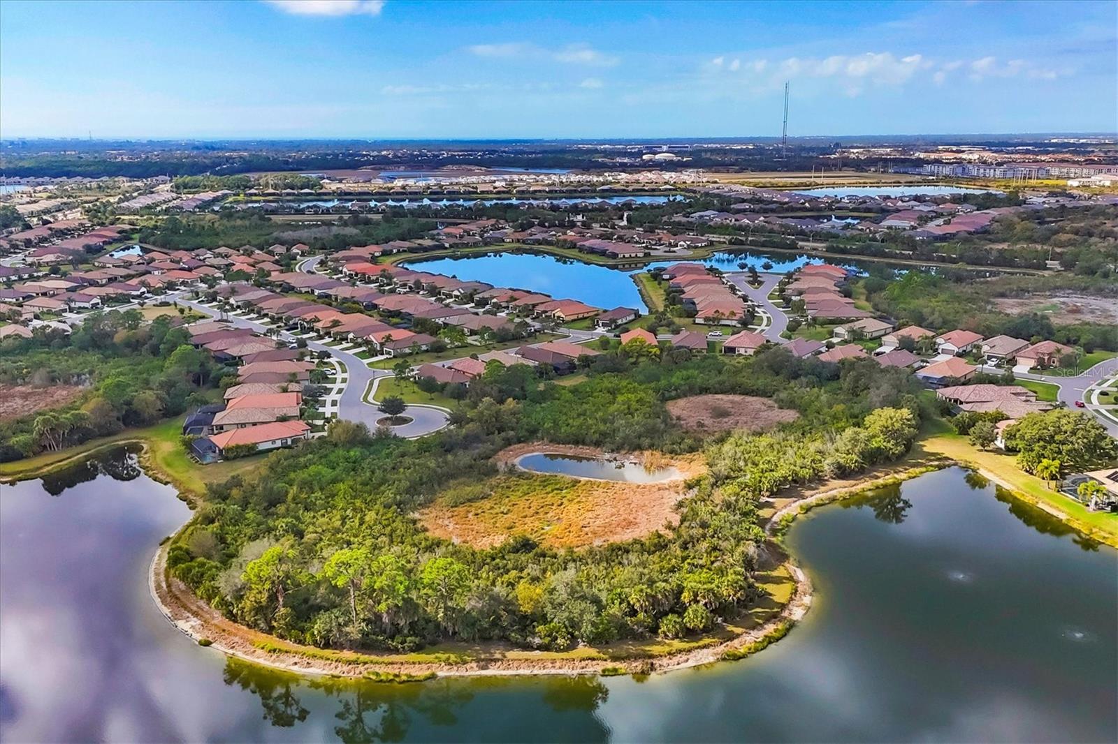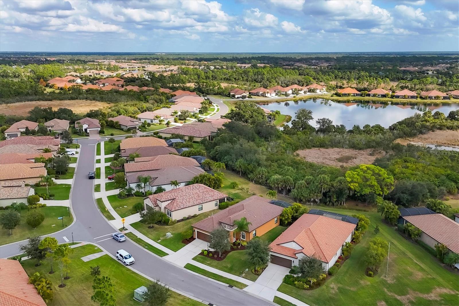 THIS BEAUTIFUL HOME IS LEAST EXPENSIVE "WHITE STAR" MODEL IN MILANO. Welcome to this Tuscan-themed exquisite 2065 sq ft, 3 Bedroom, 2 1/2 Bath, 2-car home. Situated on a greenbelt conservation lot in Milano, a very desirable restore-style neighborhood in Nokomis. This is a very active community, with a life style director who works very hard to offer a plethora of activities to those who are interested. Regardless of your interest, it's pretty certain that at least one or more of the offerings will arouse your interest. While you're visiting Milano, stop at the clubhouse to peruse the monthly schedule. From the day the current sellers moved in to this beautiful home, pride of ownership has been quite evident. As you enter this " White Star" home by Neal Communities, you will see and understand. The beautiful hurricane glass front entry door has an electronic keyless lock. The impressive long entry foyer leads your focus to the paver lanai with the wooded conservation area in the back. The first room on the right passed the double doors in the private den/study that features a beautiful wood floor. This room has crown molding and plantation shutters on the 3 windows. In fact, every room in the house has crown molding and every window has plantation shutters. When you go a little further down the entryway, you'll come to the island Kitchen with granite counters. Across from the island you'll see granite counters, 42' white cabinets, custom backsplash going right into the Butler's Pantry. The 5-burner GE self-clean gas range has an over the range microwave. All bottom cabinets in the Kitchen, Butlers' Pantry and the Master Bath has convenient pull-out drawers. The island has 2 pendant lights. There is a 1-year new LG Stainless Steel French Door Refrigerator in Kitchen and a GE side x side in the garage. The 1st thing you see in the dining room is the brand new crystal chandelier. You'll also notice that the entire house has 5 1/4" base-boards. The entire house has 9'4" ceilings and tray ceiling in the Family Room. When you enter the 16 x 14 Master Bedroom En suite, you'll find carpeting and plenty of light with the 3 windows. The attached bath has a double sink vanity and a large glass-enclosed shower. Adjacent the shower is private water closet and linen closet. At the end of the en suite is a 6 x 11 carpets closet, that's setup with hanging on one side and shelving on the other. The other two carpeted bedrooms are 12 X11. At the end of the hallway is the Laundry, featuring a large vanity an sink, four large wall cabinets over a Whirlpool washer and gas remote control that operated the 3 transparent screens separately. This means that if the screens are down during a storm, The interior of the house won't be dark during the day. The two-car a garage has 2 ceiling mounted steel 4 X8 storage bins that are great for sorting XMAS decorations, suite cases, ice chests, fishing rods, pool noodles and the like. As you know, when you live in Florida, storage space is always at a premium. There are also six ceiling fans. This and neighborhood offer a wonderful opportunity to live "the good life". This home fills many folks wants and needs list. Does it fill yours?