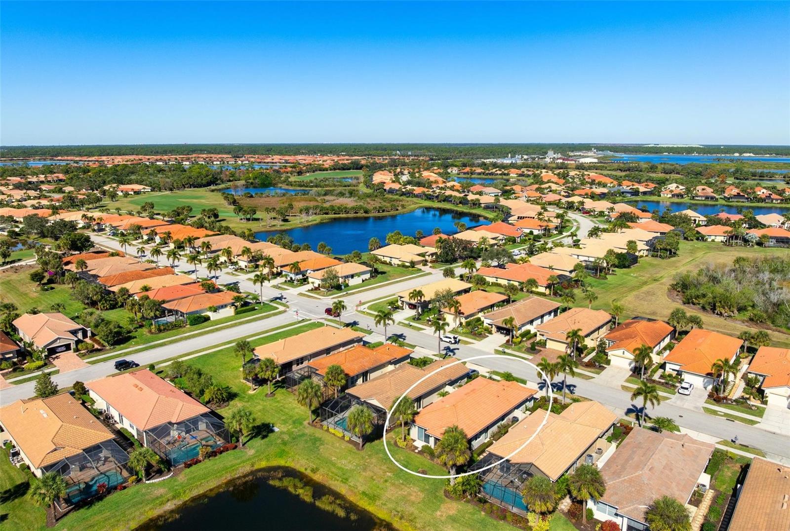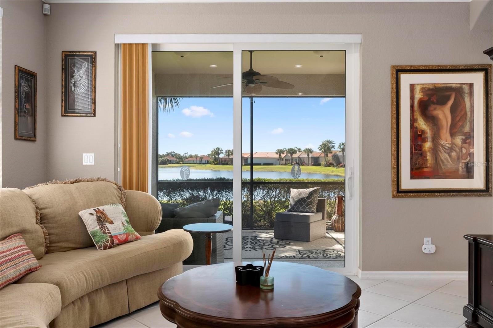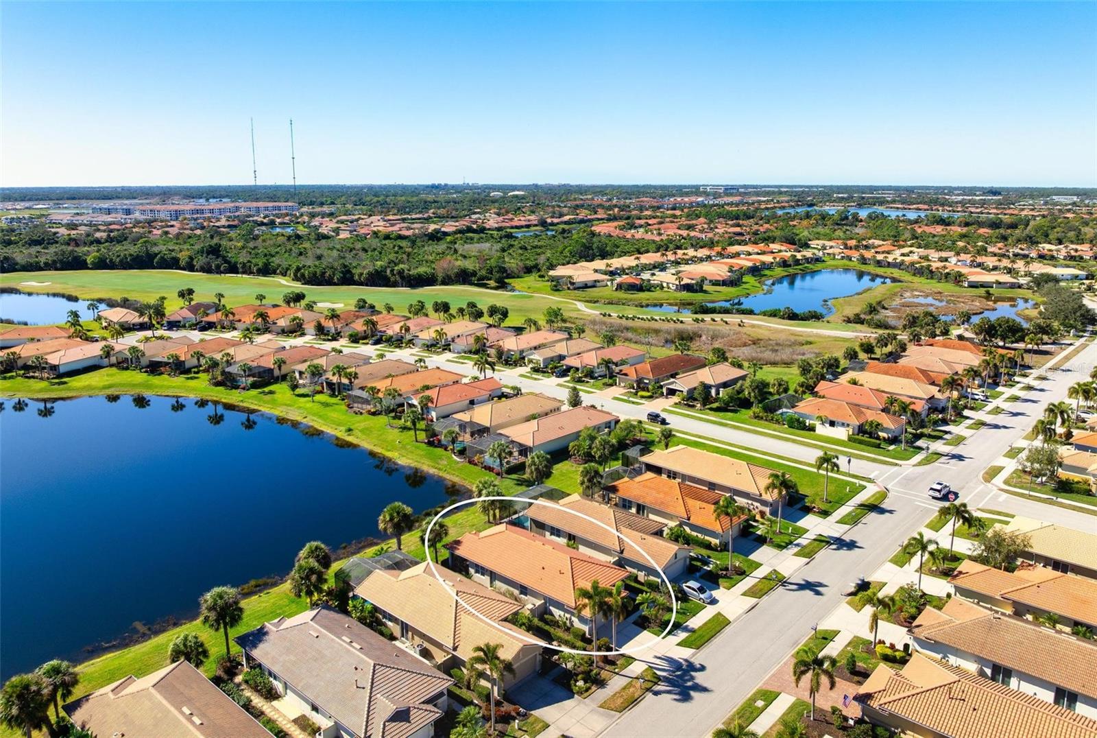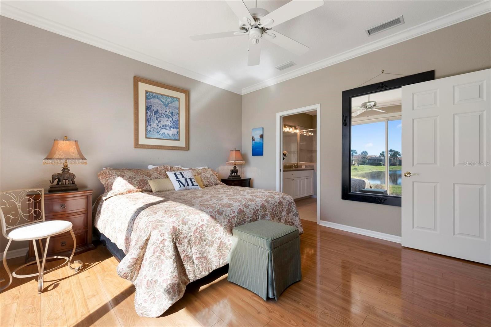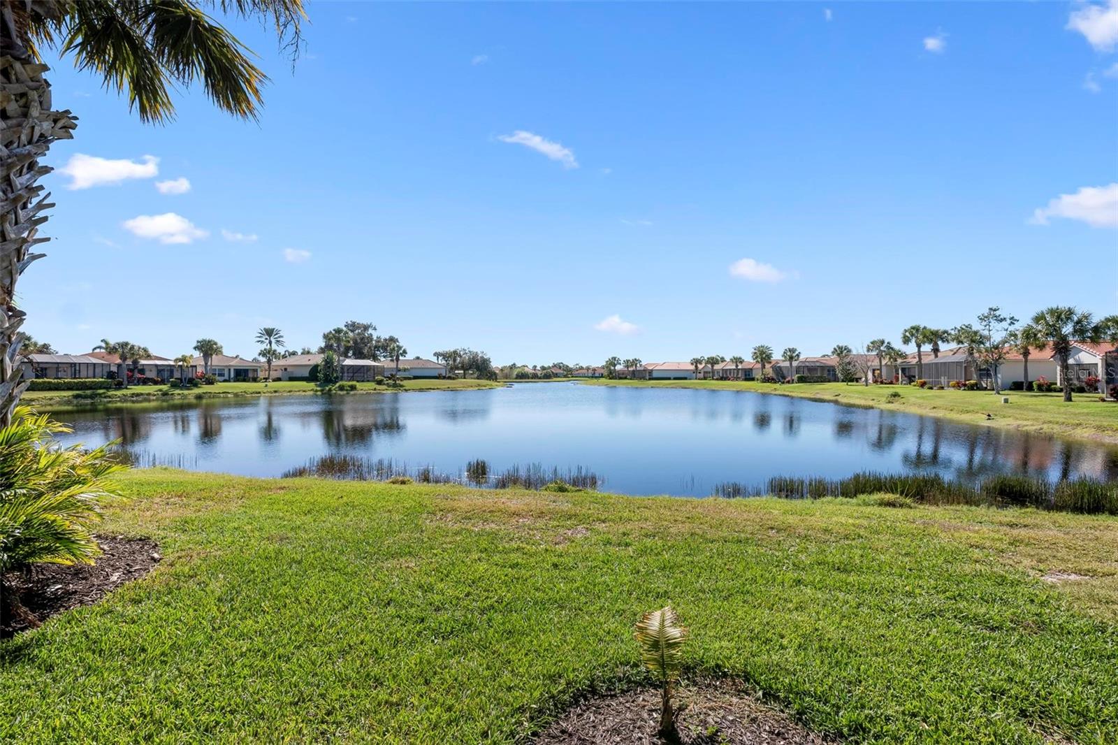 Step into this stunning, impeccably maintained home featuring an elegant open floor plan that seamlessly blends comfort and sophistication. The bright, airy interior flows effortlessly from the spacious great room and kitchen to a screened lanai with breathtaking, private deep lake views—inviting pure serenity. The great room boasts soaring coffered ceilings with rich 6-inch crown molding and abundant natural light through expansive windows, accentuating beautiful diagonal-laid tile flooring throughout the main areas. Bedrooms feature warm, newer engineered hardwood floors. Ceiling fans in living spaces, bedrooms, and lanai ensure year-round comfort. The inviting kitchen offers sleek Corian countertops, premium appliances (including a brand-new refrigerator and natural gas range), and overlooks the living area and peaceful lake. The oversized primary suite provides a peaceful retreat with generous proportions, a large walk-in closet, and large windows framing tranquil lake vistas like a living painting. Huge walk-in closets in the main bedrooms and a flexible den/office (with its own ample closet) that can serve as a third bedroom add versatility and abundant storage. Heavy duty garage door, overhead storage rack in garage, newer water heater, newer refrigerator. Every detail reflects meticulous pride of ownership. Nestled in the gated, resort-style Venetian Golf & River Club, this home delivers relaxed luxury daily. Enjoy a sparkling resort-style pool, dedicated lap pool, poolside Tiki Bar, well-equipped fitness center with classes, six Har-Tru tennis courts, dedicated pickleball areas (with lessons and group play), and a peaceful 74-acre nature park with scenic walking trails and a Myakka River boardwalk perfect for birdwatching and quiet strolls. The elegant Mediterranean-inspired River Club clubhouse offers casual lunches to fine dining with preserve and river views, plus vibrant year-round events, holiday celebrations, mixers, and a popular Sunday brunch with fresh omelets, mimosas, and abundant offerings. Optional membership is available for the championship 18-hole golf course with manicured fairways and challenging greens. Conveniently located minutes from charming downtown Venice’s historic district (boutiques, galleries, cafés, restaurants, community theater, festivals, bike paths), world-class beaches with soft sands, stunning sunsets, and fossilized shark teeth hunting, plus 24-hour guarded gate security and maintenance-free yard care—this community lets you relax and live like every day is a vacation!