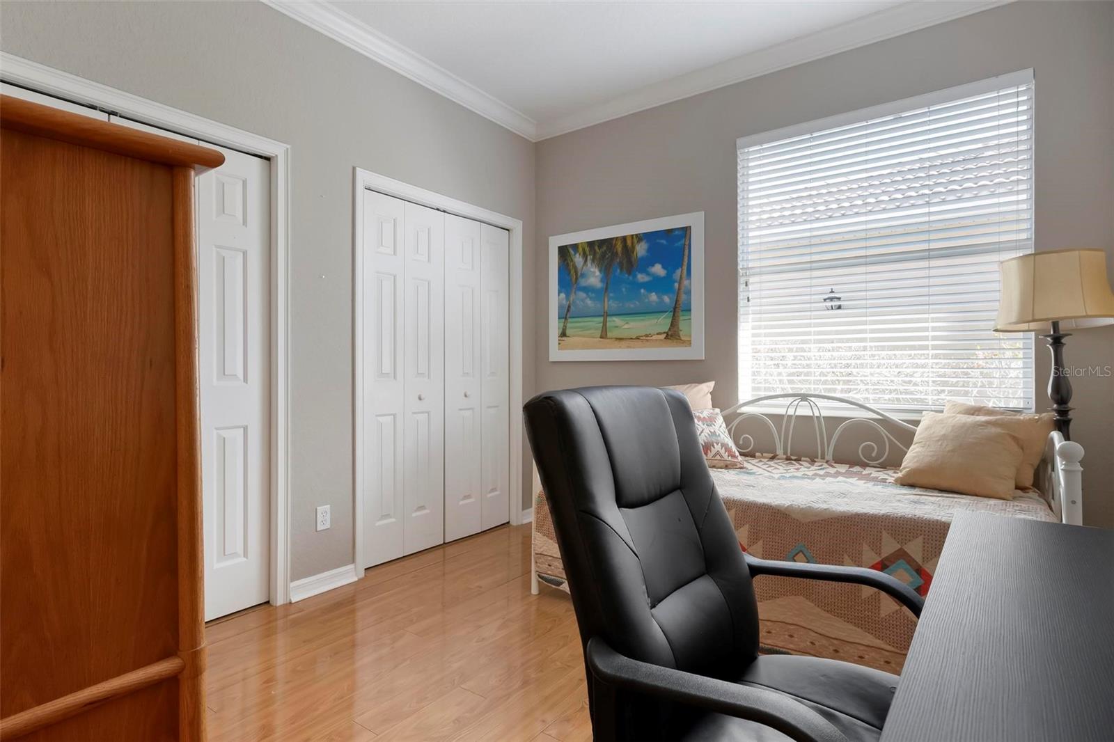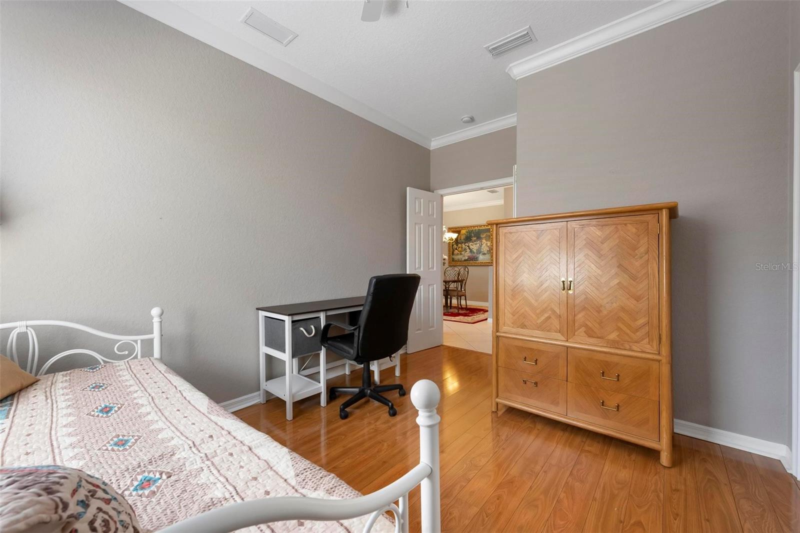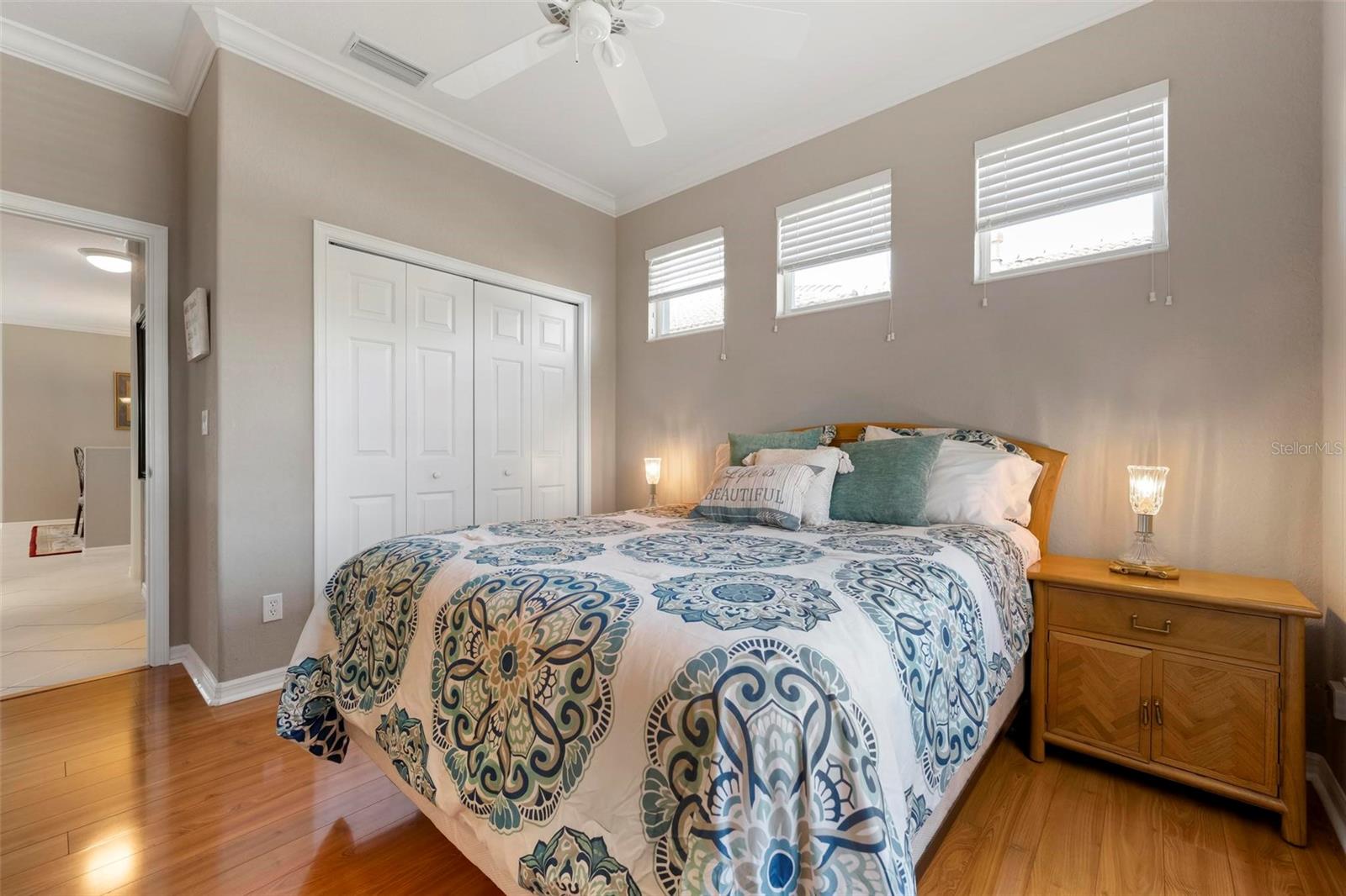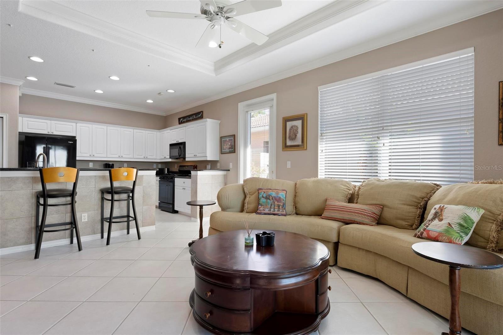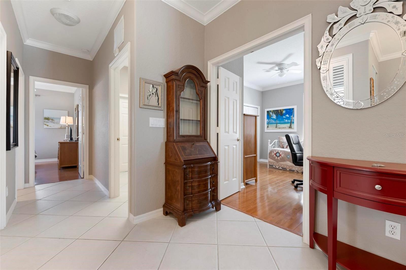 Step into this stunning, impeccably maintained home featuring an elegant open floor plan that seamlessly blends comfort and sophistication. The bright, airy interior flows effortlessly from the spacious great room and kitchen to a screened lanai with breathtaking, private deep lake views—inviting pure serenity. The great room boasts soaring coffered ceilings with rich 6-inch crown molding and abundant natural light through expansive windows, accentuating beautiful diagonal-laid tile flooring throughout the main areas. Bedrooms feature warm, newer engineered hardwood floors. Ceiling fans in living spaces, bedrooms, and lanai ensure year-round comfort. The inviting kitchen offers sleek Corian countertops, premium appliances (including a brand-new refrigerator and natural gas range), and overlooks the living area and peaceful lake. The oversized primary suite provides a peaceful retreat with generous proportions, a large walk-in closet, and large windows framing tranquil lake vistas like a living painting. Huge walk-in closets in the main bedrooms and a flexible den/office (with its own ample closet) that can serve as a third bedroom add versatility and abundant storage. Heavy duty garage door, overhead storage rack in garage, newer water heater, newer refrigerator. Every detail reflects meticulous pride of ownership. Nestled in the gated, resort-style Venetian Golf & River Club, this home delivers relaxed luxury daily. Enjoy a sparkling resort-style pool, dedicated lap pool, poolside Tiki Bar, well-equipped fitness center with classes, six Har-Tru tennis courts, dedicated pickleball areas (with lessons and group play), and a peaceful 74-acre nature park with scenic walking trails and a Myakka River boardwalk perfect for birdwatching and quiet strolls. The elegant Mediterranean-inspired River Club clubhouse offers casual lunches to fine dining with preserve and river views, plus vibrant year-round events, holiday celebrations, mixers, and a popular Sunday brunch with fresh omelets, mimosas, and abundant offerings. Optional membership is available for the championship 18-hole golf course with manicured fairways and challenging greens. Conveniently located minutes from charming downtown Venice’s historic district (boutiques, galleries, cafés, restaurants, community theater, festivals, bike paths), world-class beaches with soft sands, stunning sunsets, and fossilized shark teeth hunting, plus 24-hour guarded gate security and maintenance-free yard care—this community lets you relax and live like every day is a vacation!