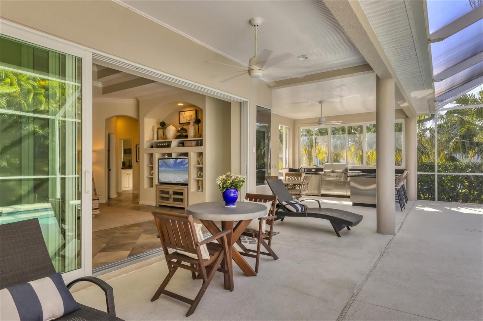 4 BED + DEN / 3.5 BATH / 3 CAR w/ POOL on an OVERSIZED 100' x 170' lot on a SALTWATER CANAL w/ GULF ACCESS. Located on a cul-de-sac street in the gated and deed restricted enclave of SHORE OAKS just 1.5 miles to Nokomis Beach. Big recent improvements include new HURRICANE IMPACT WINDOWS AND SLIDERS, TILE ROOF, and PEBBLE-TEC POOL RESURFACE. This 2002 MPS CUSTOM-BUILT HOME has a flexible split bedroom floor plan to maximize privacy and a SEPERATE DETACHED CASITA w/ private entrance which is the perfect space for guests / office / studio / multi-gen family arrangement. The main house has a COURTYARD feel with the living room, family room, kitchen, primary, and guest bedroom all opening to a HUGE COVERED LANAI with a LUXURIOUS OUTDOOR KITCHEN and private, heavily landscaped POOL and SPA area that will have you living the Florida Dream! Swimmers will appreciate access to a pool bath and outdoor shower. Back inside, the kitchen is the true heart of this home and offers 42" MAPLE CABINTERY, Modern STAINLESS-STEEL APPLIANCES, and stone counters along with a LARGE WALK-IN PANTRY and breakfast bar. The breakfast nook has a mitered-glass window which connects this whole space visually to the outdoors and helps make this home so light and bright. The primary suite offers tray ceiling, sliding door access to the pool, and his and hers closets. Bedroom #2 has sliders to the pool and windows overlooking the CANAL and 10'x 4' PRIVATE DOCK and BOAT LIFT. Bedroom #3 is 21' x 13' and offers a huge closet for tons of extra storage. Bedroom #4 is in the Casita along with an ensuite bath. The motor court area in front of the 3-car garage adds privacy as well as additional off-street parking for extra vehicles. Close to Nokomis Village shops and restaurants, A RATED SCHOOLS, Legacy Bike Trail, Oscar Scherer State Park, Historic Venice Mainstreet and Gulf Beaches. This home is an ABSOLUTE MUST SEE!