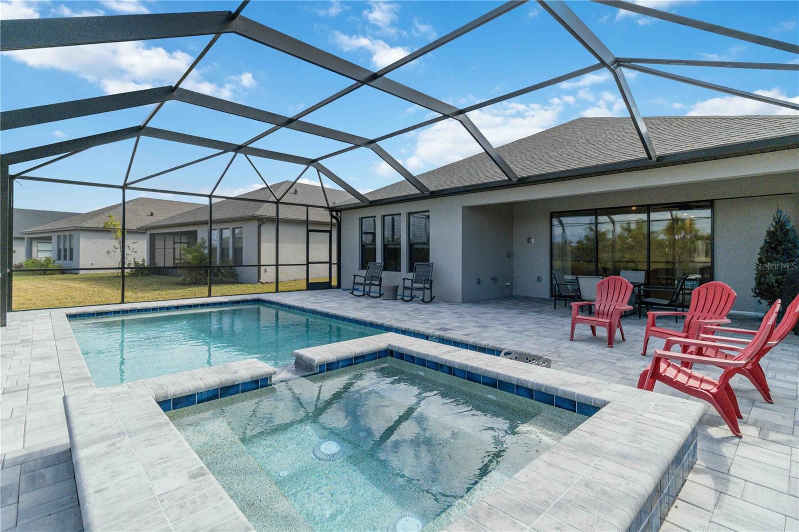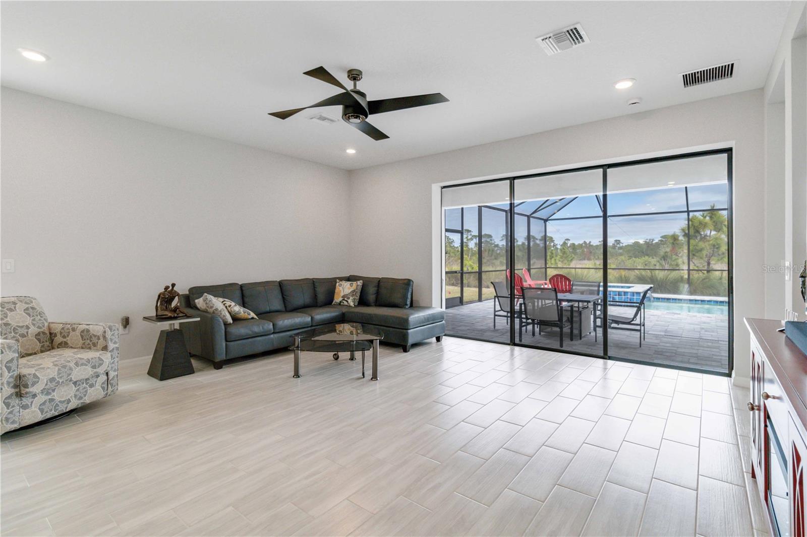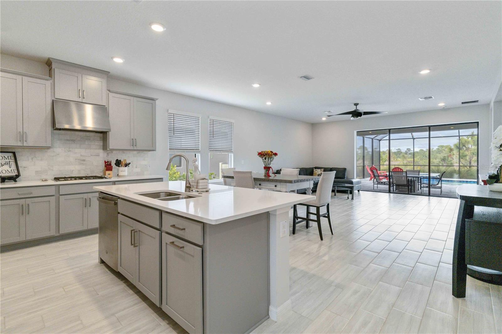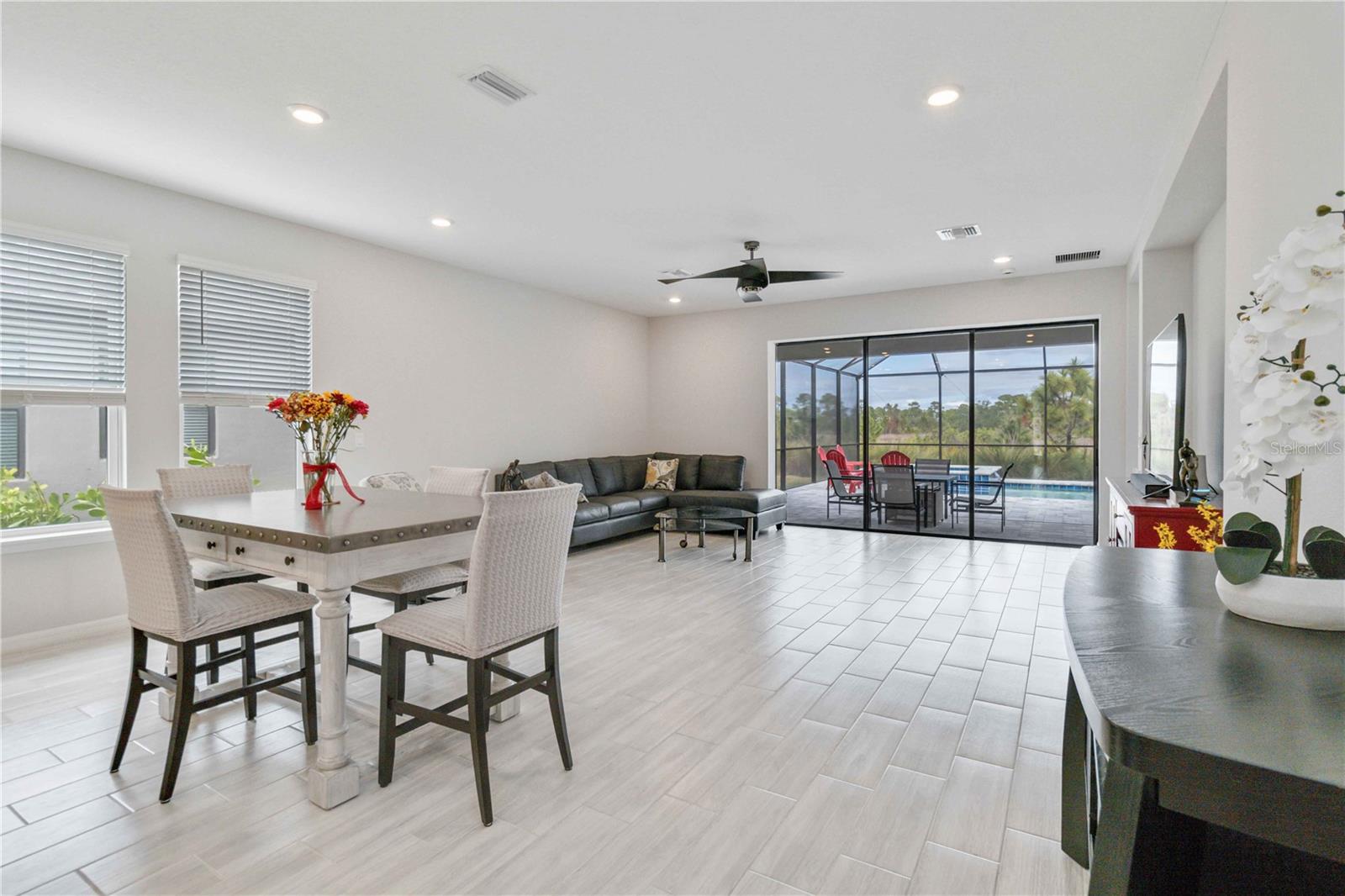 PRESERVE VIEW! HEATED CUSTOM SALT WATER POOL! 4 MILES TO THE BEACH. This stunning Antigua model by Taylor Morrison is located in the gated community of Palmero offering 2,400 sq. ft. of living space and 3,090 sq. ft. of total of luxury living with 4 bedrooms and 3 full bathrooms. The highlight of this home is the outdoor entertainment area custom designed by the seller with no expense spared. This piece of paradise features a custom 14x28 heated saltwater pool and spa, surrounded by a 28' x 40' caged paver deck and a natural preserve surrounded by Oscar Scherer Park for ultimate privacy. The pool and spa also feature a remote control system for easy control and for added enjoyment the lanai has the connections in place for an outdoor kitchen. Inside the home you will find an exceptional open floor plan accented with eight-foot doors and crown molding. A gourmet kitchen with gas stove, vent hood, upgraded refrigerator and center island. The chef in the family will love the additional coffee bar and oversized pantry room. This home also offers a flex room with French doors that is currently used as an office but also could be a wonderful hobby room or den. There are 4 bedrooms designed to promote privacy for everyone. The front bedroom serves as an ensuite with a generous bedroom and full bath, while central in the home you will find two additional guest bedrooms that share a full bath. The Master Bedroom, located at the back of the home, provides serene views of the pool and wildlife. The Master Bathroom includes dual sinks, a walk-in shower, and a deep soaking tub, with access to a custom walk-in closet and the utility room for added convenience. Built to 2023 code standards and situated in a coveted FLOOD ZONE X, the home offers full hurricane protection and peace of mind. Although it is just minutes to the Gulf beaches, this 2023 new construction sits in a high and dry neighborhood with no flooding. Palmero offers a range of amenities, including a resort-style pool, spa, volleyball and basketball courts, a playground, and fire pit, all with a LOW HOA and NO CDD fee. The pet-friendly community also has its own dog park. Close to highly-rated schools like Pine View School for the Gifted and Laurel Nokomis School, as well as the new Sarasota Memorial Hospital of Venice, this home combines luxury and convenience.